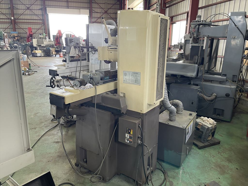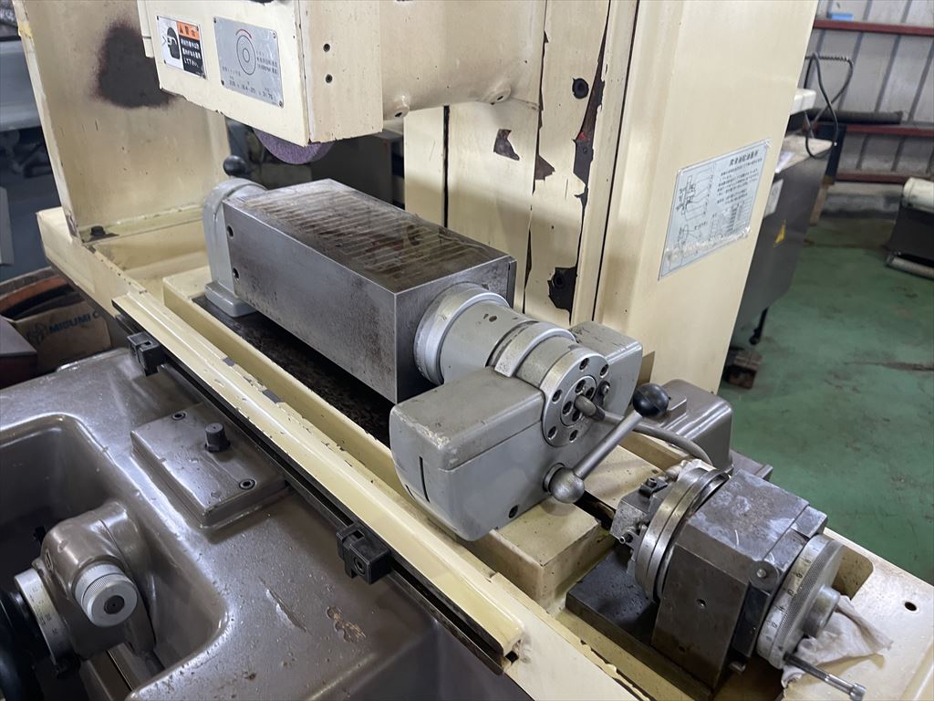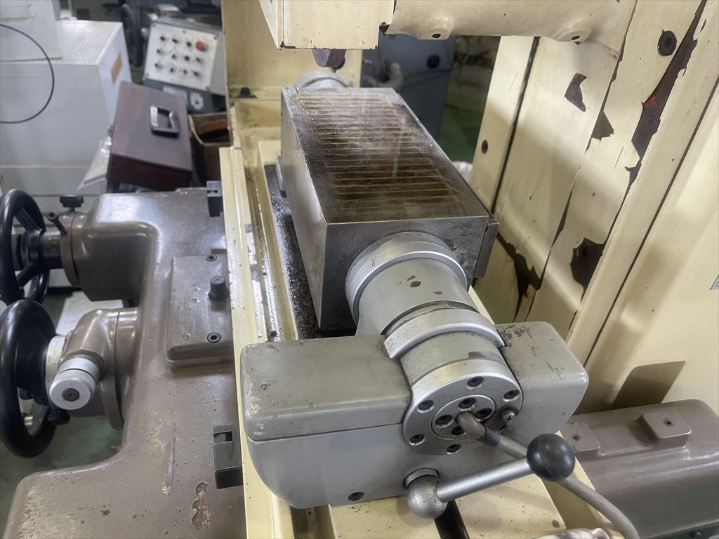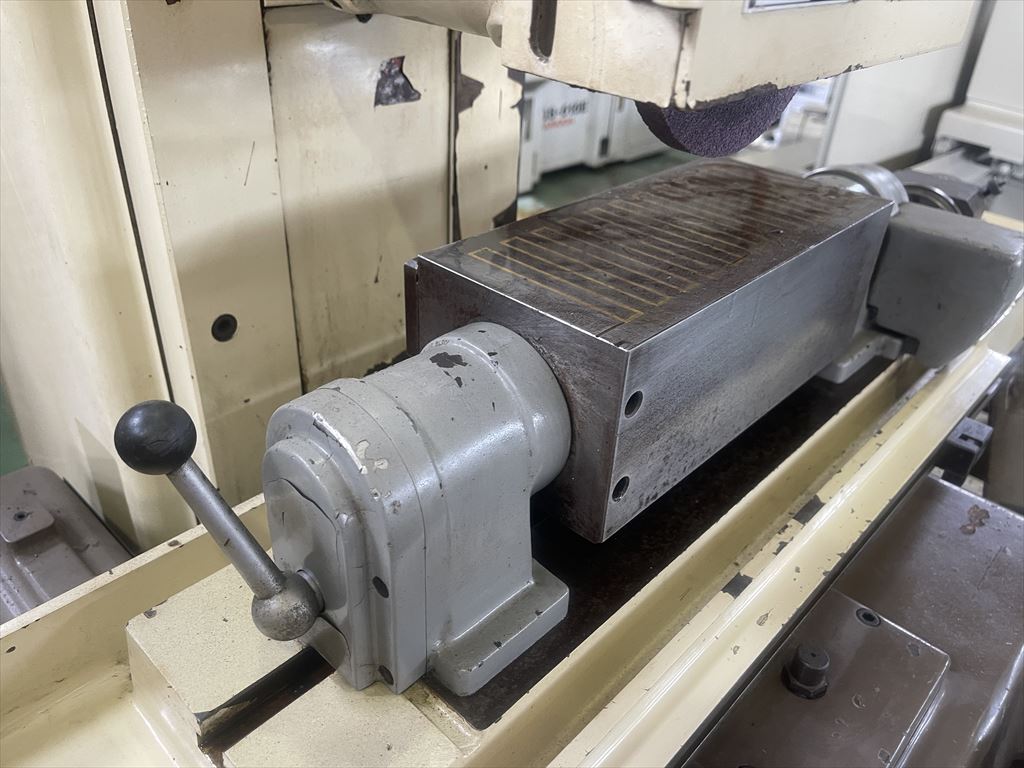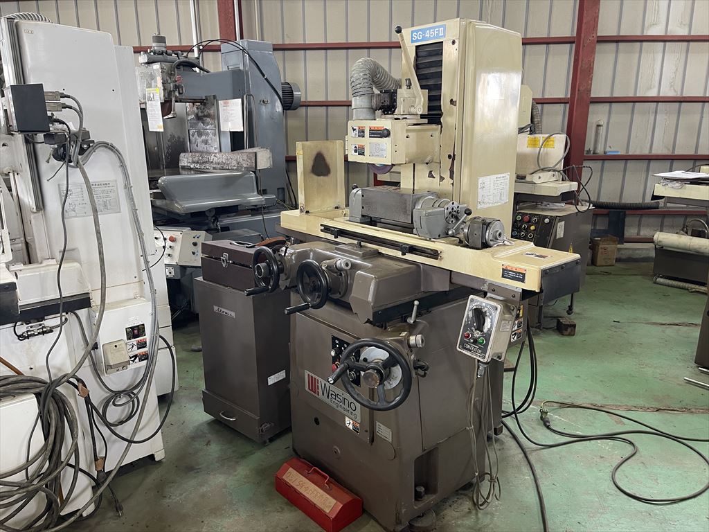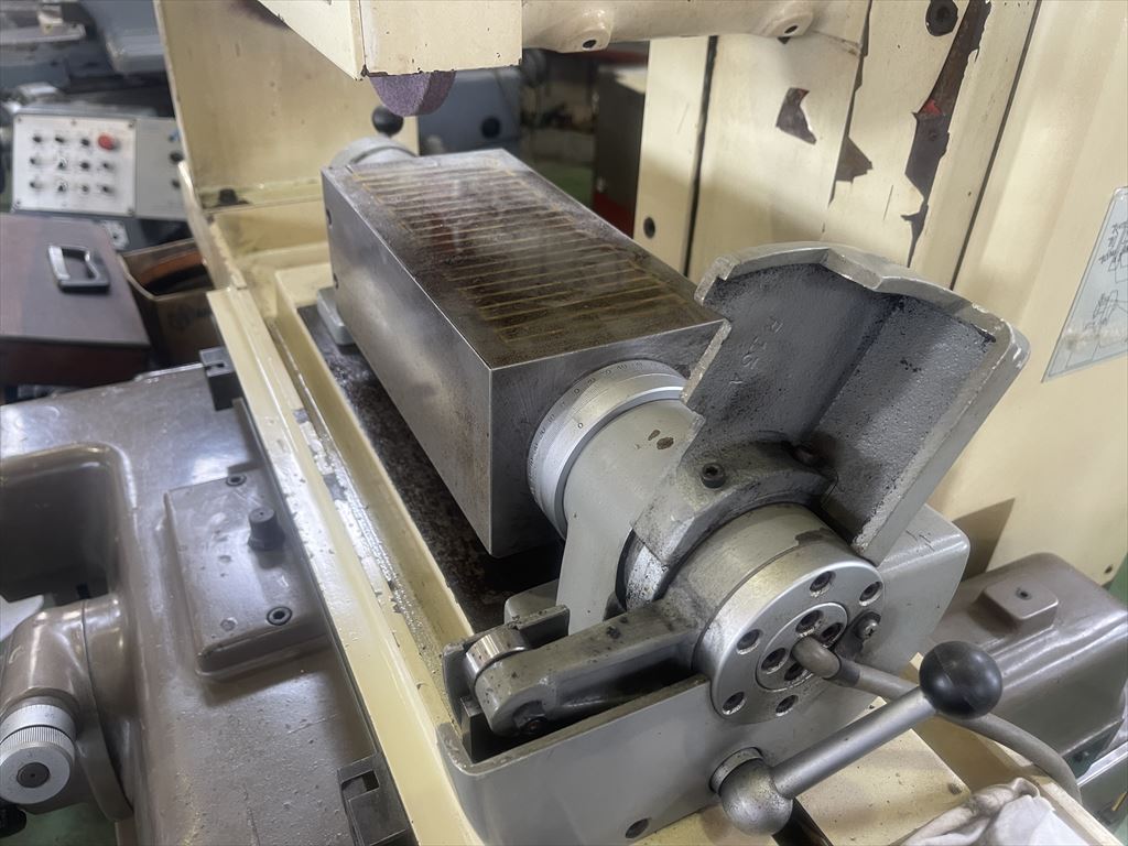 〇特徴  全手動式(上下は早送り付) 上下・前後微細送り装置  テーブル左右動きにワシノ独自の「ローラーウェイ方式」  ハンドル初動圧が極めて小さい軽快で安定したテーブル操作が可能 〇チャック  傾斜チャック(サインバー式):幅270×奥行125×高さ135mm 〇テーブル  作業面積450×150 T溝(幅)17×1本 〇移動量  左右:テーブル左右最大移動量480mm 前後:サドル前後最大移動量180mm  上下:テーブル上面から標準砥石面までの距離447mm 〇ハンドル送り量  左右:ハンドル送り1回転100mm  前後:ハンドル送り(1目盛/1回転):0.02/4 前後微動送り量0.001mm  上下ハンドル送り(1目盛り/1回転):0.005/1  上下:ハンドル送り微動送り量0.001mm  ※上下早送り機能付き(速度500mm/min) 〇砥石  寸法:外径φ205mm×幅6.4-25mm×φ31.75mm 回転数:2850rpm 〇モータ  砥石軸用:0.75kw-2P 上下早送り用:0.1kw-6P 〇機械寸法・重量  幅1820mm×奥行1278mm×高さ1775mm 機械質量1000㎏ 〇付属品  集塵機付