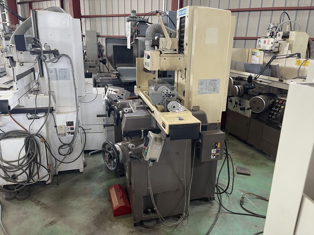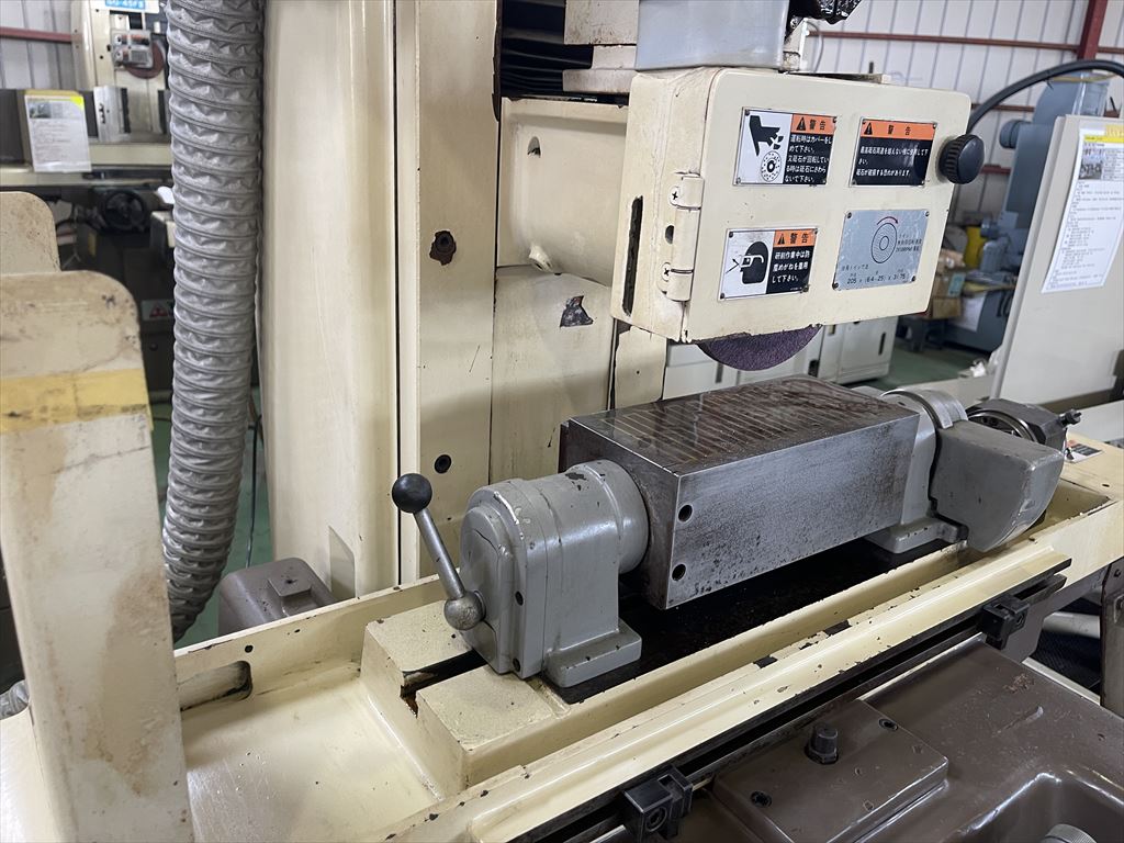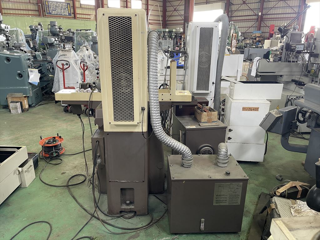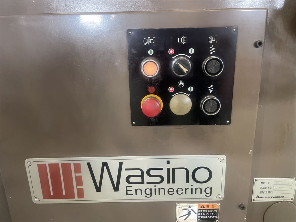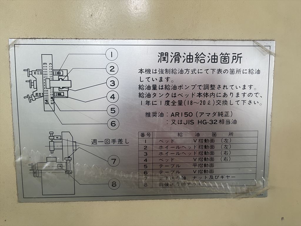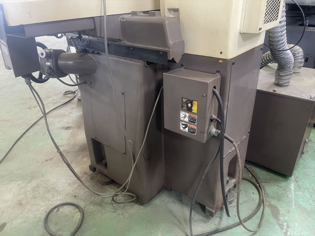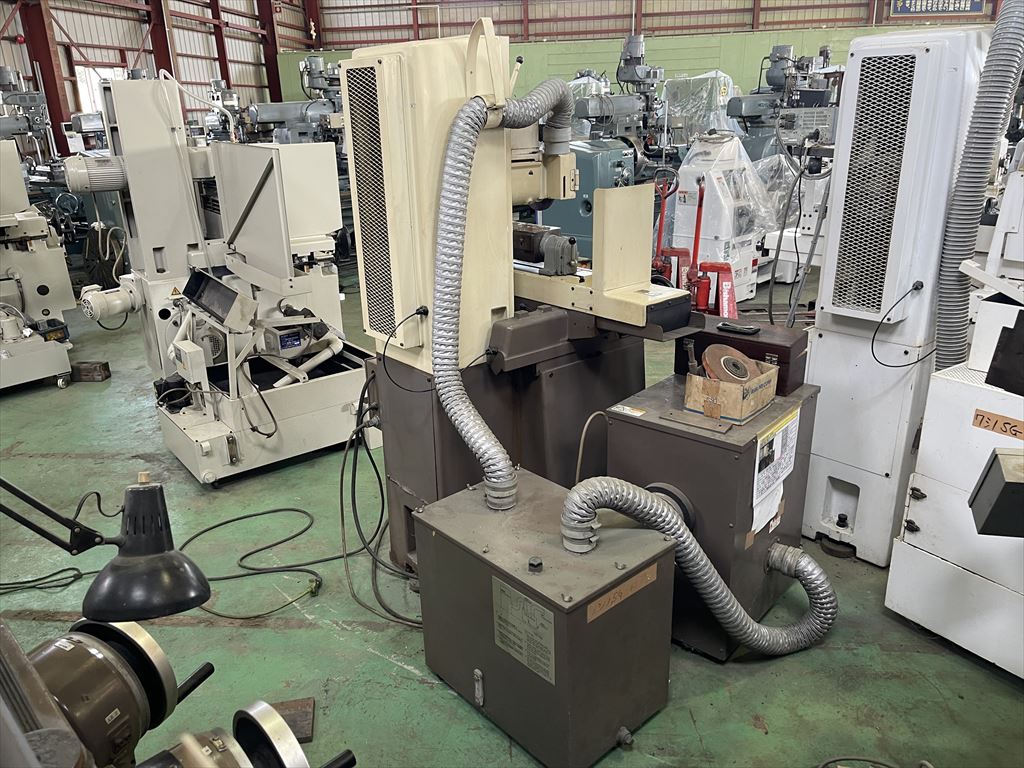 〇特徴  全手動式(上下は早送り付) 上下・前後微細送り装置  テーブル左右動きにワシノ独自の「ローラーウェイ方式」  ハンドル初動圧が極めて小さい軽快で安定したテーブル操作が可能 〇チャック  傾斜チャック(サインバー式):幅270×奥行125×高さ135mm 〇テーブル  作業面積450×150 T溝(幅)17×1本 〇移動量  左右:テーブル左右最大移動量480mm 前後:サドル前後最大移動量180mm  上下:テーブル上面から標準砥石面までの距離447mm 〇ハンドル送り量  左右:ハンドル送り1回転100mm  前後:ハンドル送り(1目盛/1回転):0.02/4 前後微動送り量0.001mm  上下ハンドル送り(1目盛り/1回転):0.005/1  上下:ハンドル送り微動送り量0.001mm  ※上下早送り機能付き(速度500mm/min) 〇砥石  寸法:外径φ205mm×幅6.4-25mm×φ31.75mm 回転数:2850rpm 〇モータ  砥石軸用:0.75kw-2P 上下早送り用:0.1kw-6P 〇機械寸法・重量  幅1820mm×奥行1278mm×高さ1775mm 機械質量1000㎏ 〇付属品  集塵機付