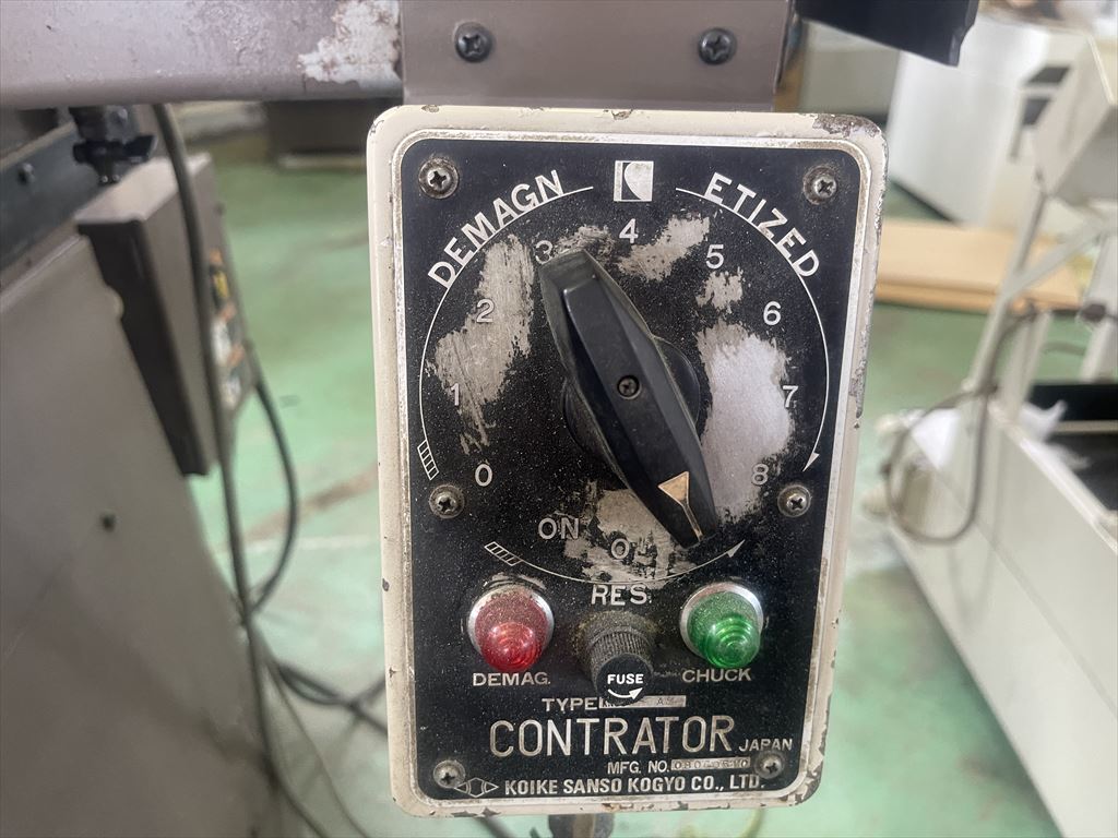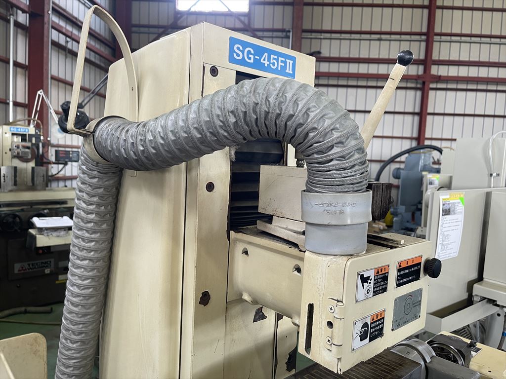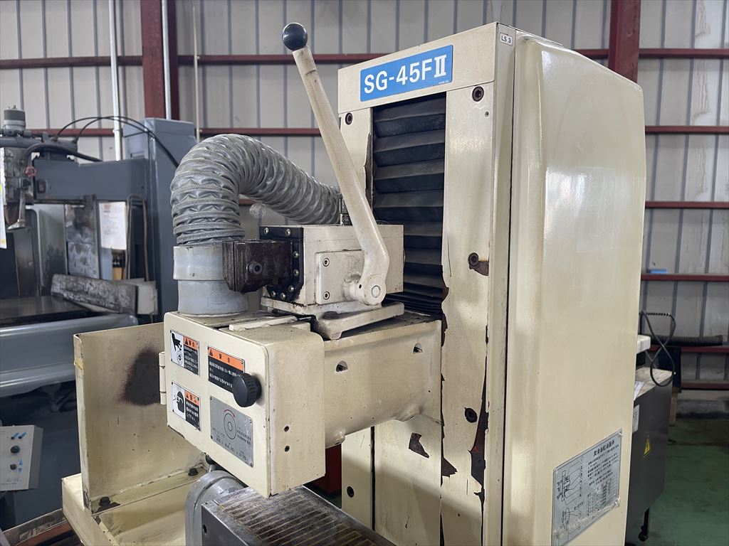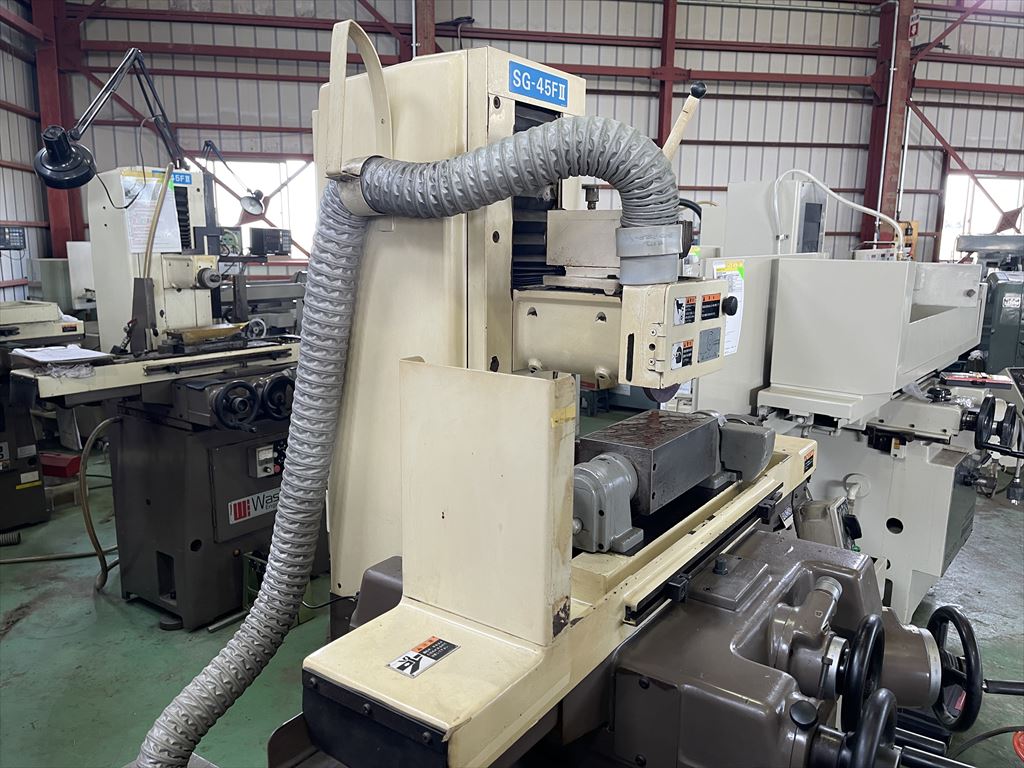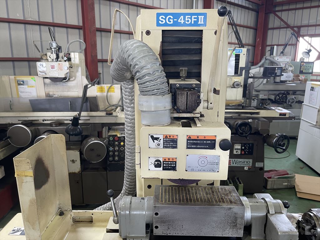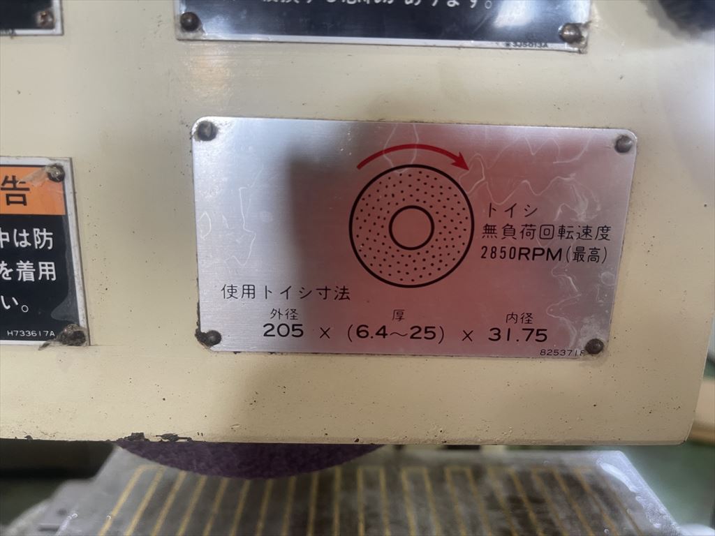 〇特徴  全手動式(上下は早送り付) 上下・前後微細送り装置  テーブル左右動きにワシノ独自の「ローラーウェイ方式」  ハンドル初動圧が極めて小さい軽快で安定したテーブル操作が可能 〇チャック  傾斜チャック(サインバー式):幅270×奥行125×高さ135mm 〇テーブル  作業面積450×150 T溝(幅)17×1本 〇移動量  左右:テーブル左右最大移動量480mm 前後:サドル前後最大移動量180mm  上下:テーブル上面から標準砥石面までの距離447mm 〇ハンドル送り量  左右:ハンドル送り1回転100mm  前後:ハンドル送り(1目盛/1回転):0.02/4 前後微動送り量0.001mm  上下ハンドル送り(1目盛り/1回転):0.005/1  上下:ハンドル送り微動送り量0.001mm  ※上下早送り機能付き(速度500mm/min) 〇砥石  寸法:外径φ205mm×幅6.4-25mm×φ31.75mm 回転数:2850rpm 〇モータ  砥石軸用:0.75kw-2P 上下早送り用:0.1kw-6P 〇機械寸法・重量  幅1820mm×奥行1278mm×高さ1775mm 機械質量1000㎏ 〇付属品  集塵機付