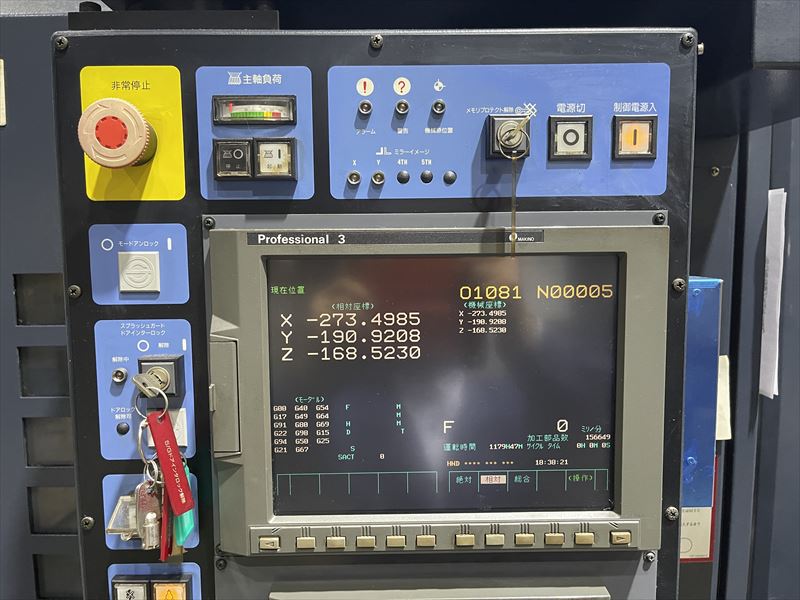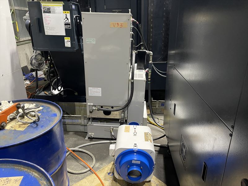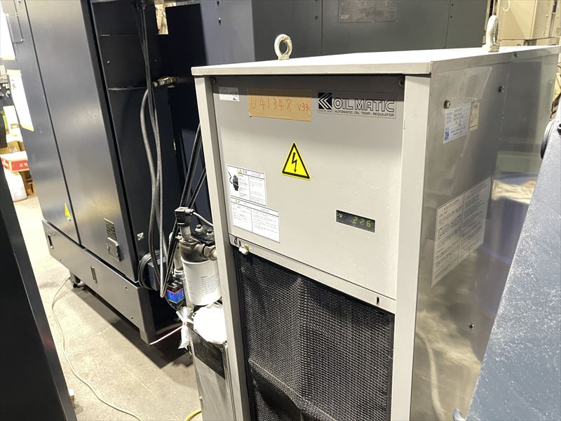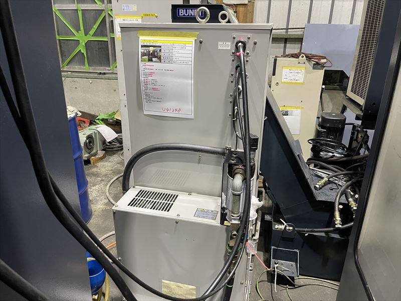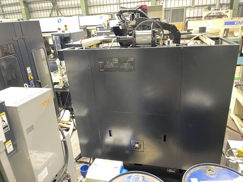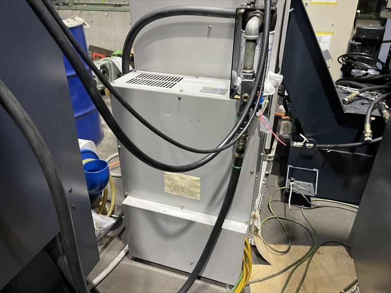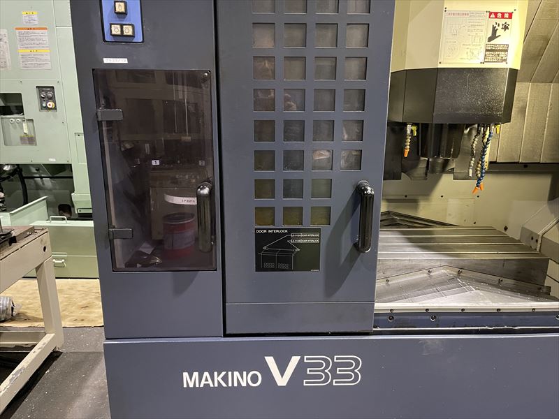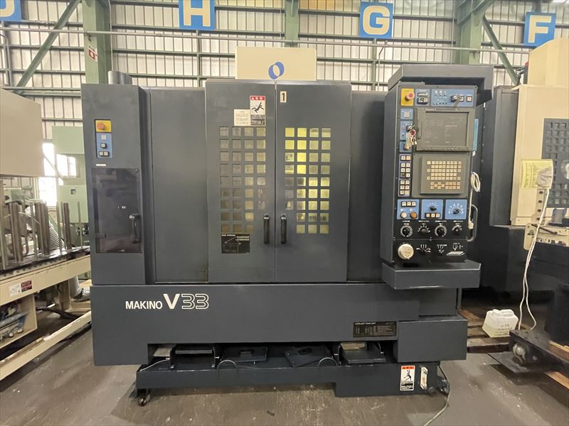〇NC装置  MAKINO-Professiona3 〇テーブル  作業面積:750×400mm(T溝18H8×4本)  最大積載質量:300 kg 〇主軸  ホルダシャンク:HSK-A63  最高主軸回転速度:20,000rpm 〇ATC  格納本数 15本 〇各軸移動量  X軸(主軸頭左右)600mm×Y軸(テーブル前後)400mm×Z軸(主軸頭上下)350mm    主軸端面~テーブル上面まで:150~500 mm 〇送り速度   早送速度:XYZ軸20000mm/min  切削送り:XYZ軸1~20000mm/min 〇タンク   切削タンク 130 L 〇所要動力源   総電源容量:33KVA  エアー圧源:0.5~0.8MPa 600NL/min  〇機械の大きさ   寸法:幅2280×奥2040×高2400mm  重量:7300Kg