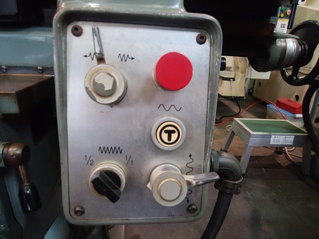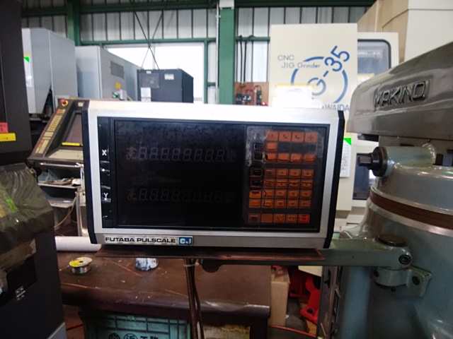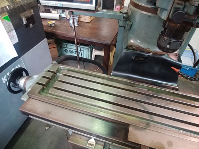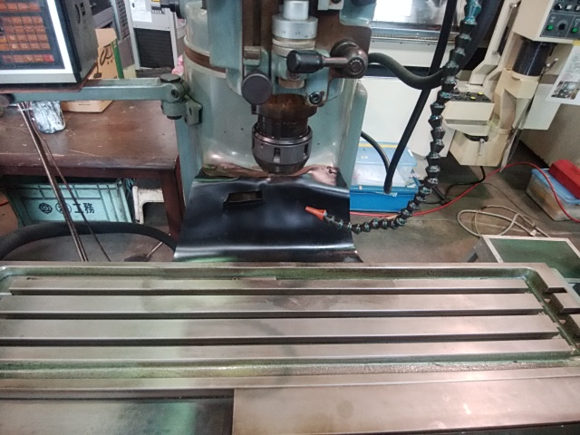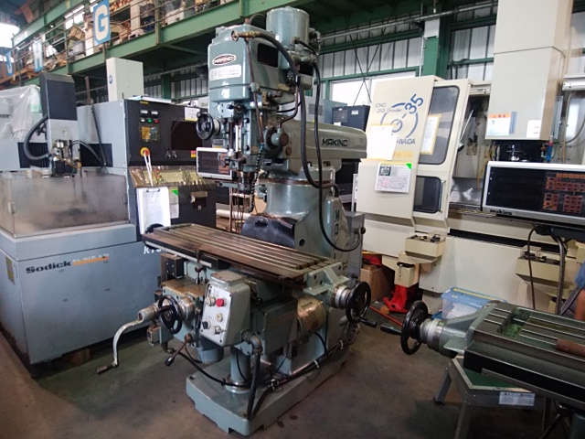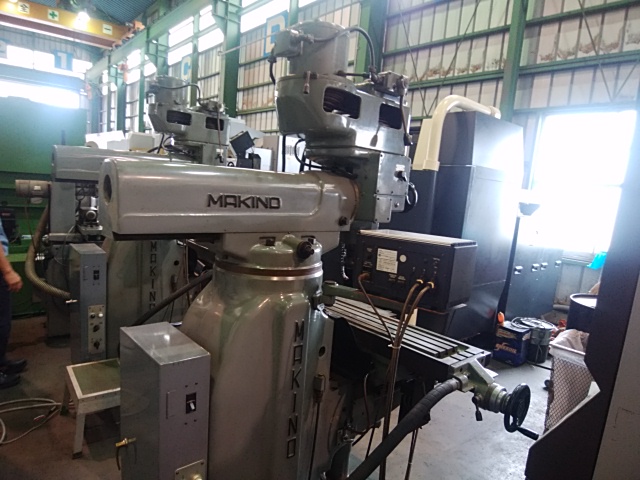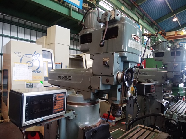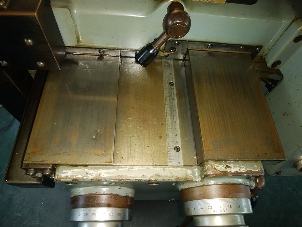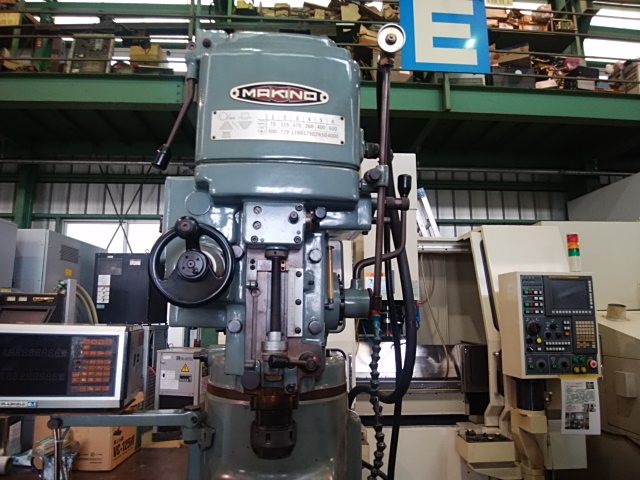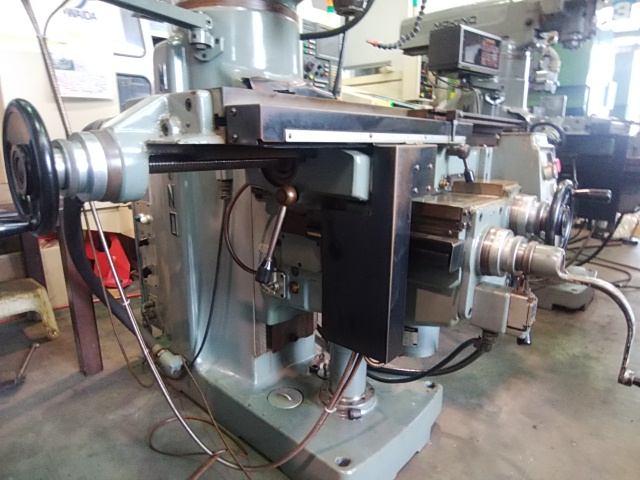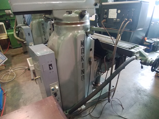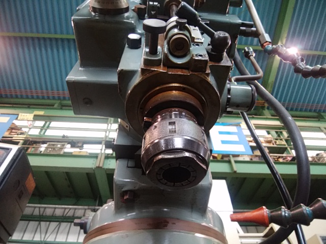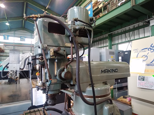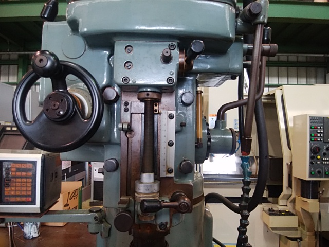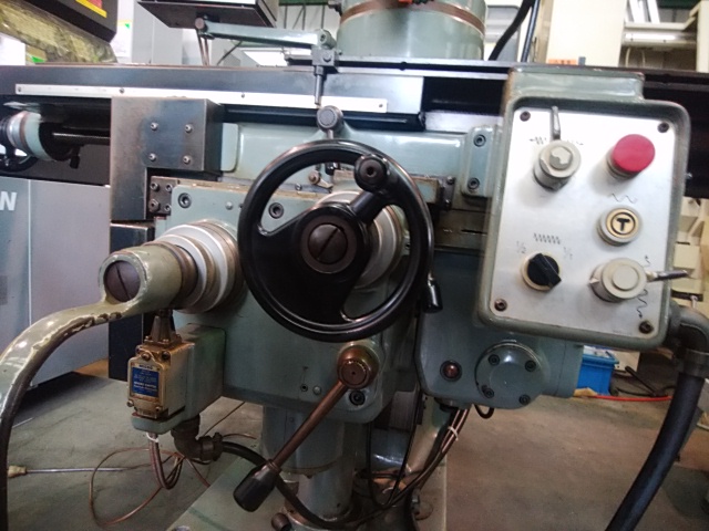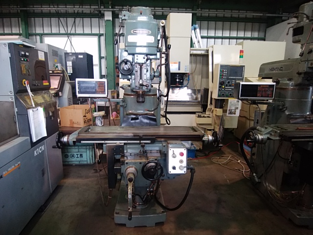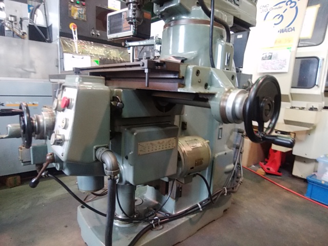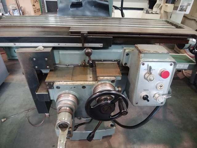 ○テーブル  作業面積 1100mm×250mm (T溝幅14mm×3本) ○主軸  主軸穴のテーパ:№40 主軸回転数:75~4000rpm(ベルト掛け替え12段) 主軸頭旋回角度:左右±45° ○ストローク  テーブル:左右550×前後250mm×上下350mm 主軸クイル送り量:100mm オーバーアーム前後動き:300mm ○干渉距離  主軸端面からテーブル上面までの距離:5~455mm 主軸中心からコラム前面までの距離:125~425mm ○送り速度  テーブル左右自動送り速度:22~832mm/min(16段変速)  テーブル左右早送り速度:2900mm/min  クイル自動送り:0.04-0.08-0.16mm/rev ○モータ  主軸用:1.5kw 送り駆動用:0.45kw 所要電力:3.9KVA ○機械寸法・重量  幅2190mm×奥行1815mm×高さ2080mm 機械重量1550Kg ○テーブル上下早送り無し デジタル故障