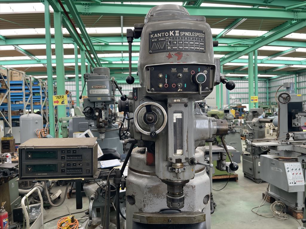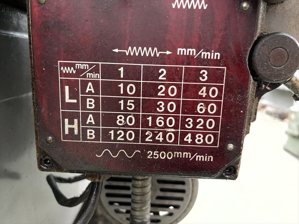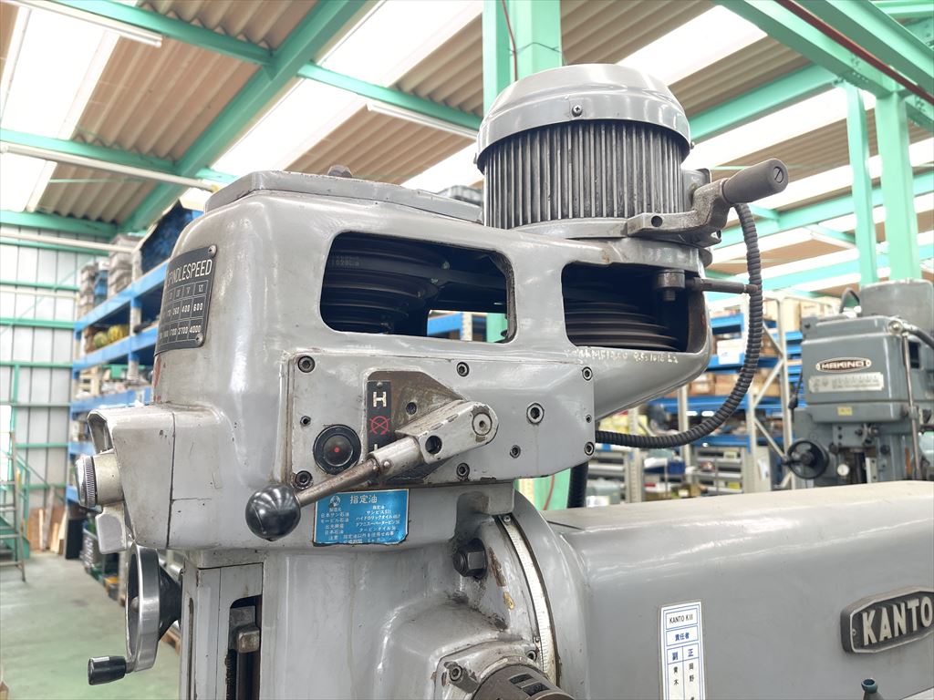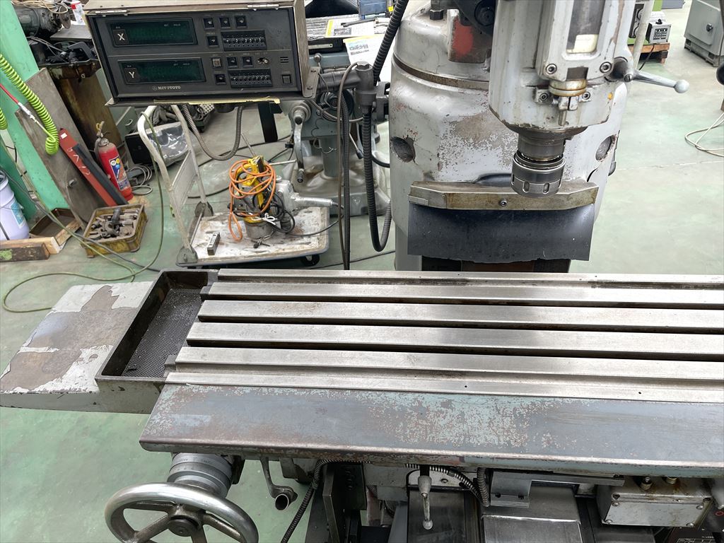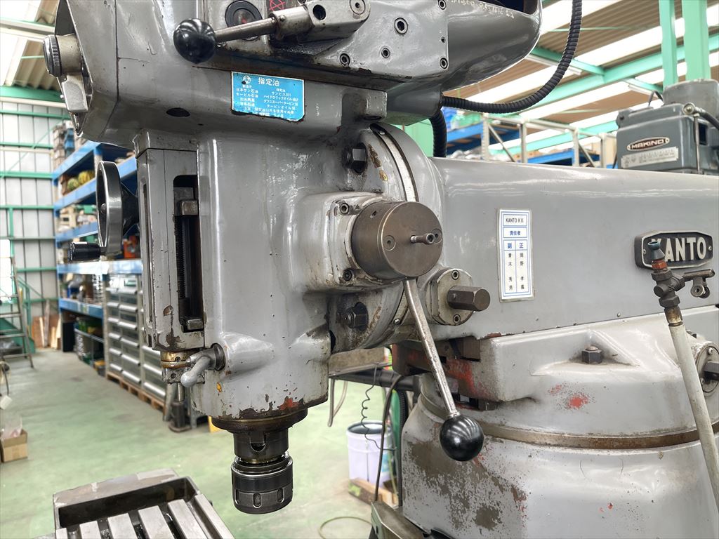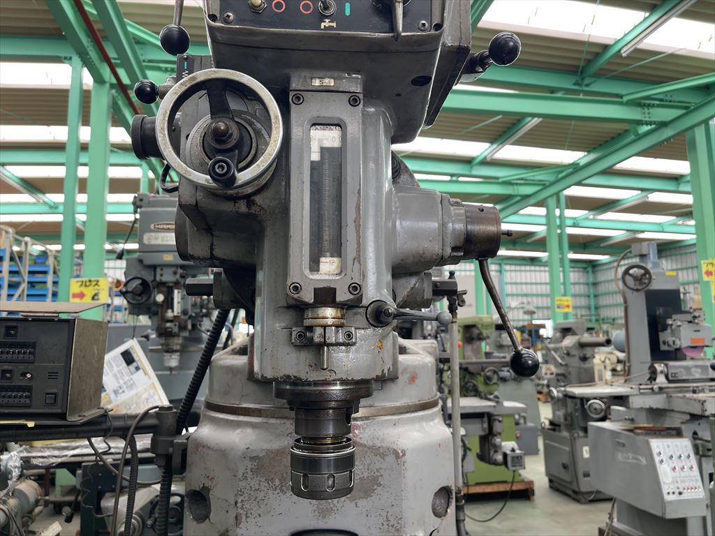 ○テーブル作業面積  1100×270(T溝の幅16mm×3本) ○テーブルの移動量  (左右)700×(前後)400×(上下)400 ○ラム前後動き  400 ○オーバーラム旋回  (左右)180° ○主軸端とテーブル上面までの距離  90~490 ○テーブル左右送り速度  切削10~480mm/min(12段変速) 早送り速度2500mm/min ○テーブル上下早送り速度  830mm/min ○主軸  端形状JIS №40 回転数75~4000rpm(12段変速) クイル上下ストローク120  自動送り0.025-0.05-0.1mm/rev ○主軸頭左右傾斜角度  (各)45° ○モータ  主軸用1.5kw4P テーブル左右自動送り用0.4kw4P  上下早送り用0.75kw4P 切削油ポンプ用50W ○機械の大きさ  寸法:幅1710×奥行2160×高さ2100 機械重量1610Kg