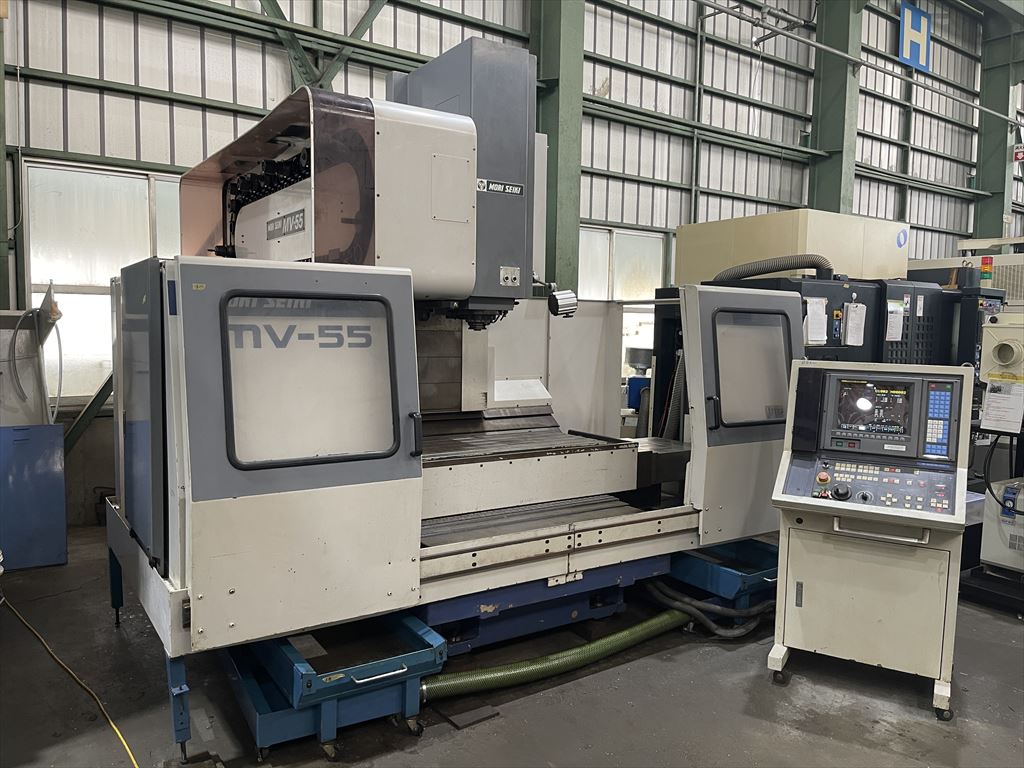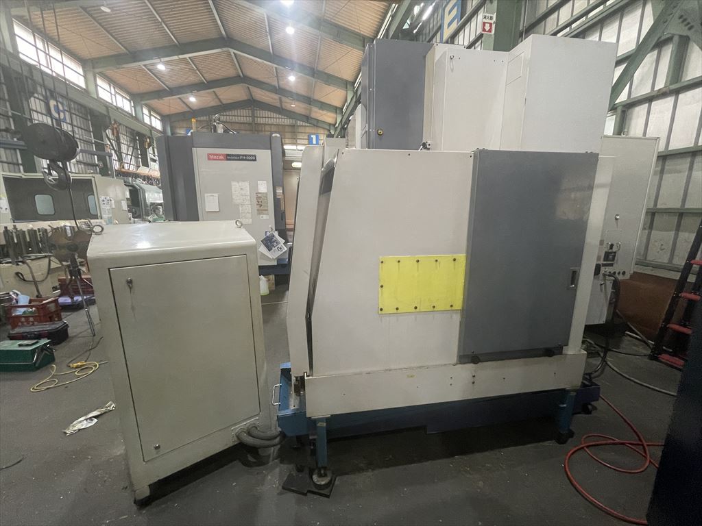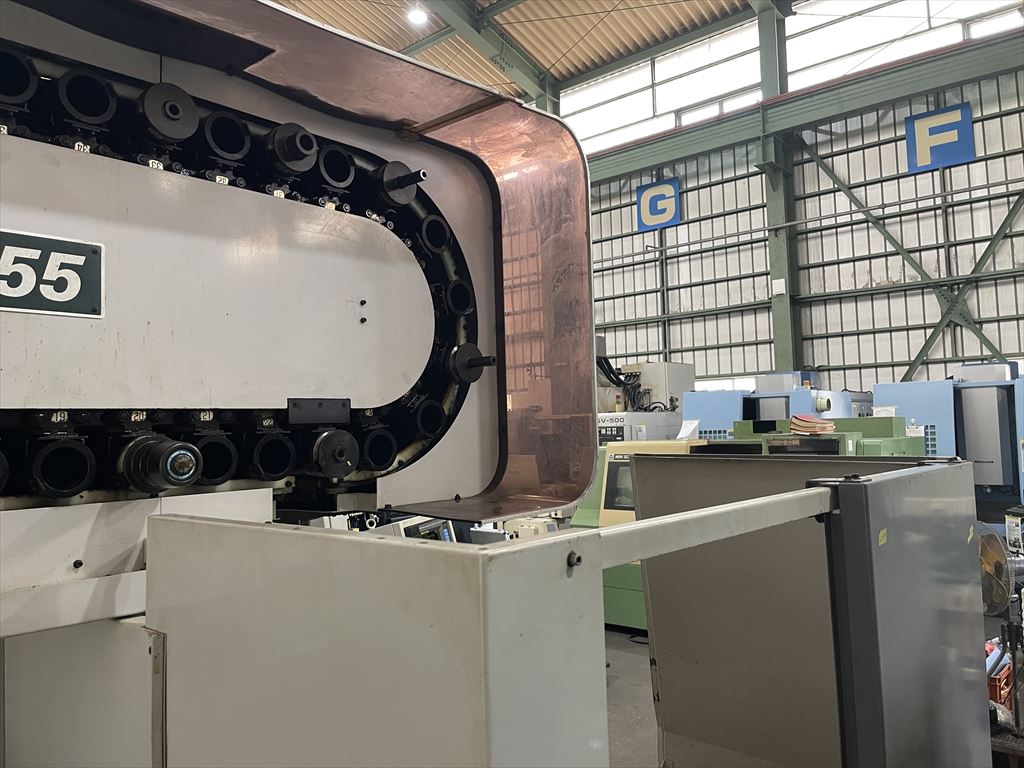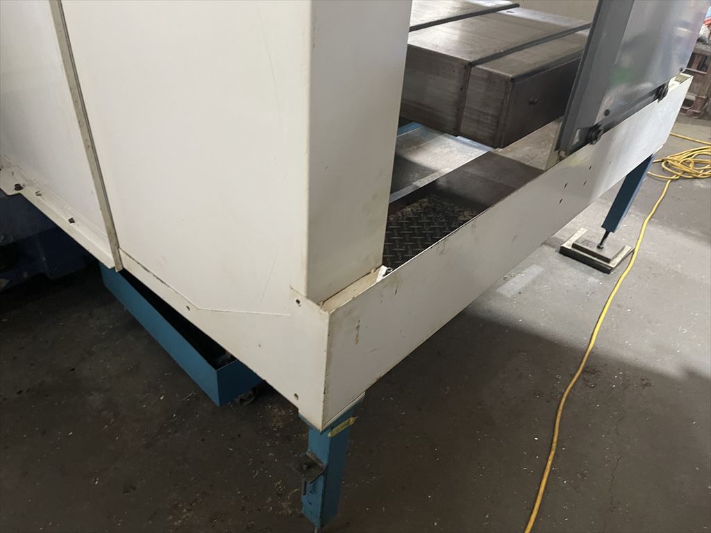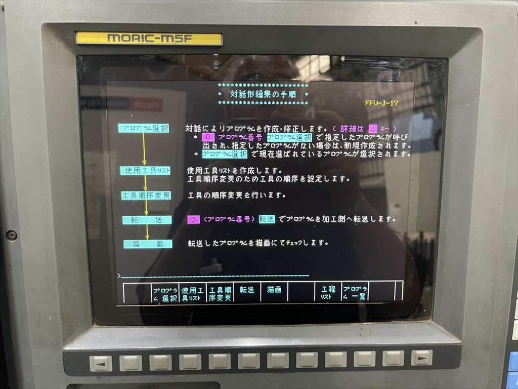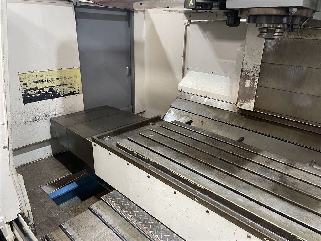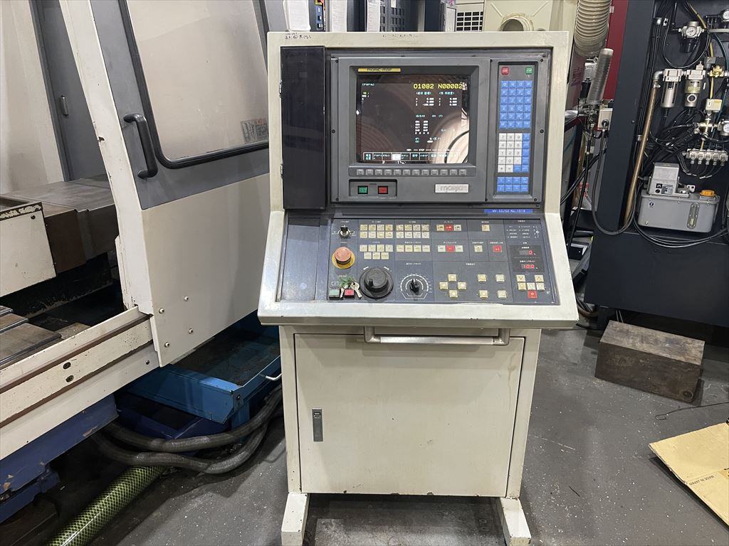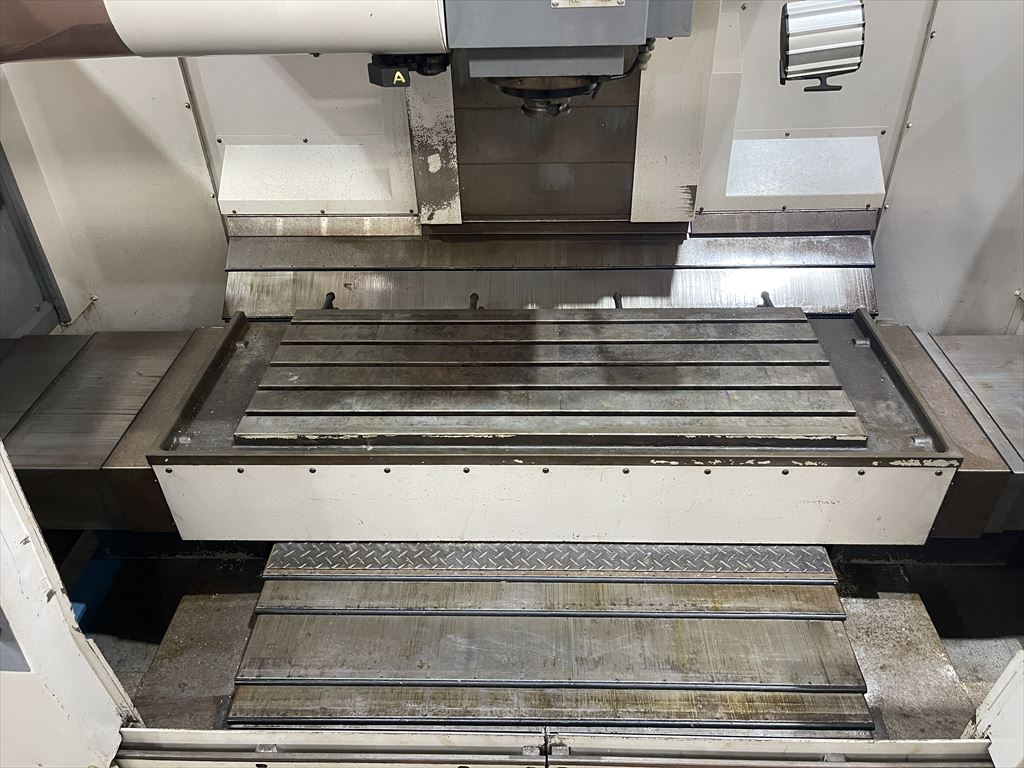 ○NC装置  MORIC M5F(FANUC15MF 対話) ○移動量  X軸(テーブル左右):1050 Y軸(サドル前後):550 Z軸(主軸頭上下):560  テーブル上面から主軸端面までの距離:200~760  コラム前面から主軸中心までの距離:600 ○テーブル  作業面:1400×550(T溝18mm×5本×100mmピッチ)  最大積載質量:1500㎏ ○主軸  回転速度:4000rpm(無段)  テーパ穴と主軸軸受内径:№50/φ100 ○送り速度  早送り速度:(X・Y)15000 (Z)12000mm/min  切削送り速度:0.001~5000mm/min  ジョグ送り速度:0~2000mm/min(20段) ○ATC  40本 ○モータ  主軸用(30分/連続):AC11/7.5kw  送り軸用:X・Y軸用AC1.8kw Z軸用AC2.8kw ○電源・空気圧減  32KVA 0.5MPa 100L/min ○機械の大きさ  幅3400×奥行3615×高さ2990(※搬入時は2667) 機械質量10000㎏ ○その他  操作盤別置タイプ
