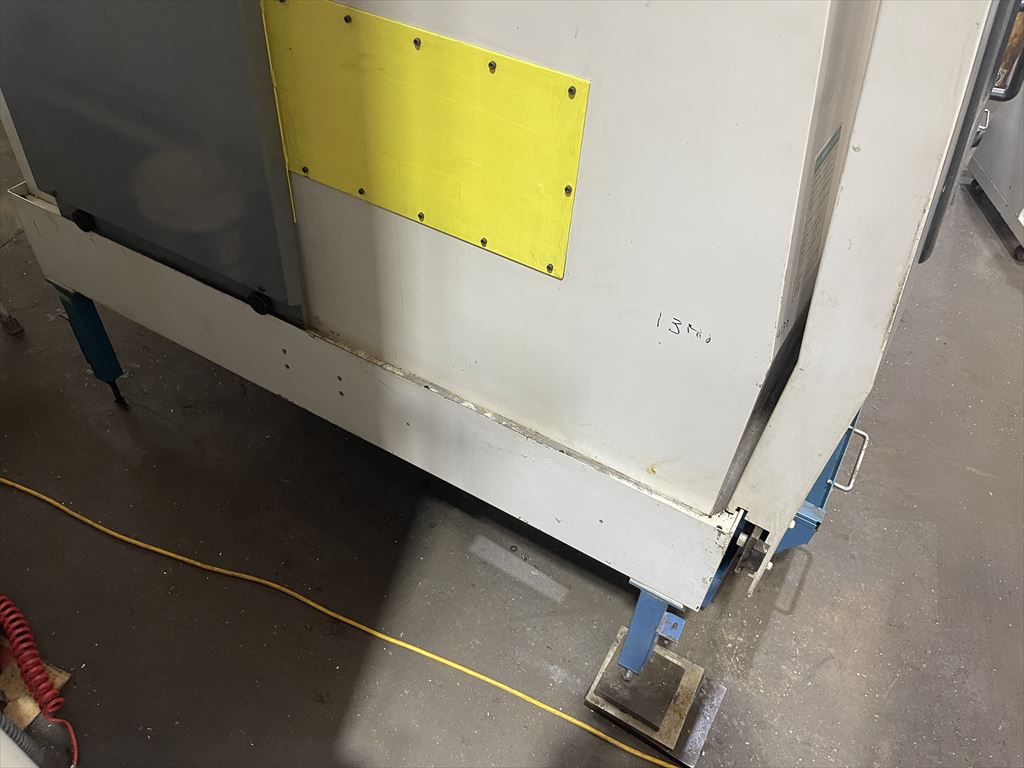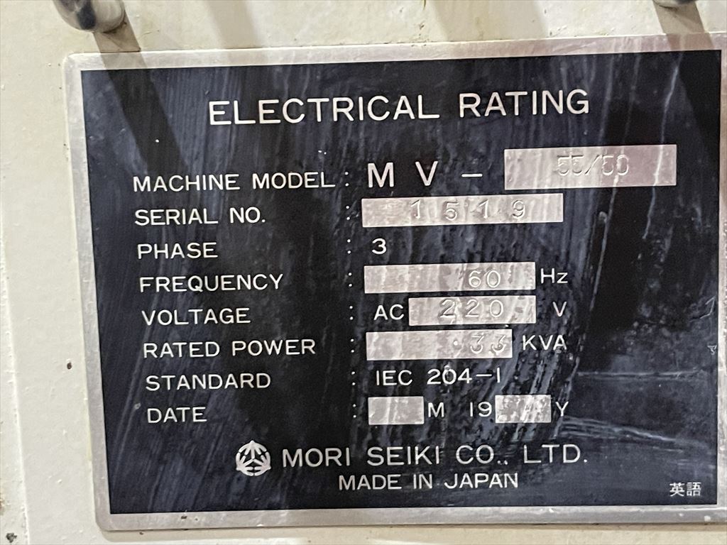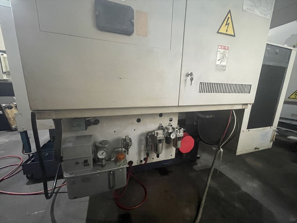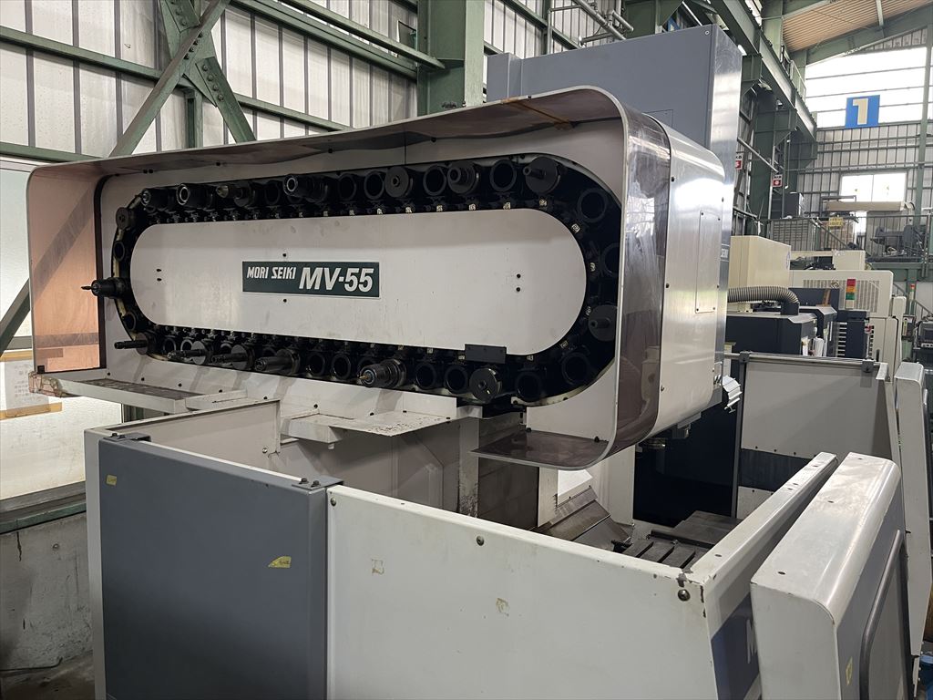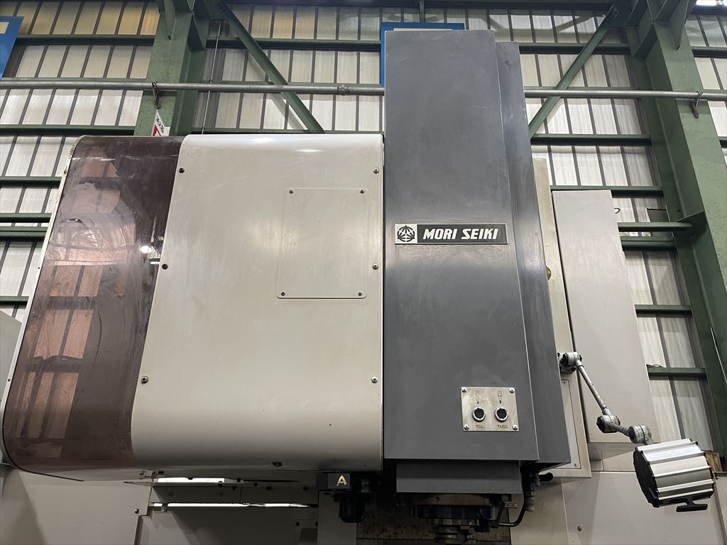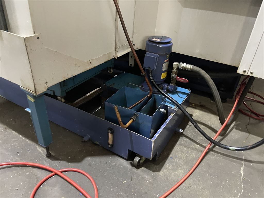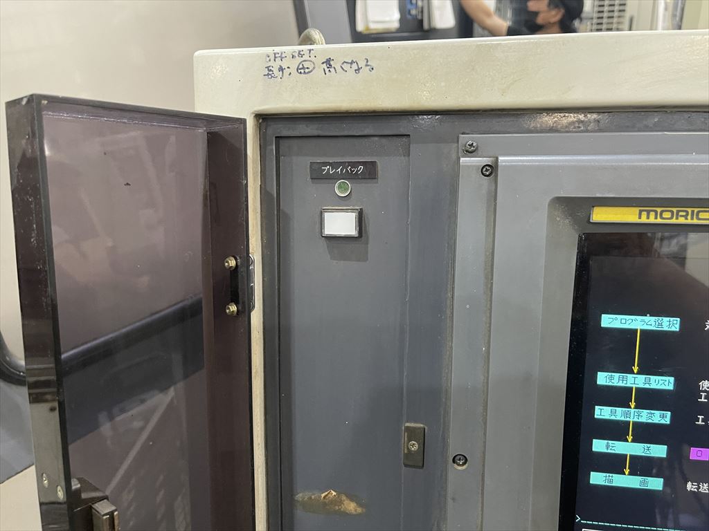 ○NC装置  MORIC M5F(FANUC15MF 対話) ○移動量  X軸(テーブル左右):1050 Y軸(サドル前後):550 Z軸(主軸頭上下):560  テーブル上面から主軸端面までの距離:200~760  コラム前面から主軸中心までの距離:600 ○テーブル  作業面:1400×550(T溝18mm×5本×100mmピッチ)  最大積載質量:1500㎏ ○主軸  回転速度:4000rpm(無段)  テーパ穴と主軸軸受内径:№50/φ100 ○送り速度  早送り速度:(X・Y)15000 (Z)12000mm/min  切削送り速度:0.001~5000mm/min  ジョグ送り速度:0~2000mm/min(20段) ○ATC  40本 ○モータ  主軸用(30分/連続):AC11/7.5kw  送り軸用:X・Y軸用AC1.8kw Z軸用AC2.8kw ○電源・空気圧減  32KVA 0.5MPa 100L/min ○機械の大きさ  幅3400×奥行3615×高さ2990(※搬入時は2667) 機械質量10000㎏ ○その他  操作盤別置タイプ