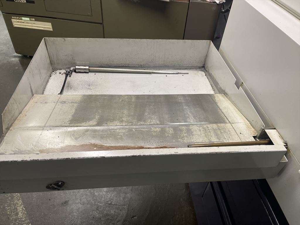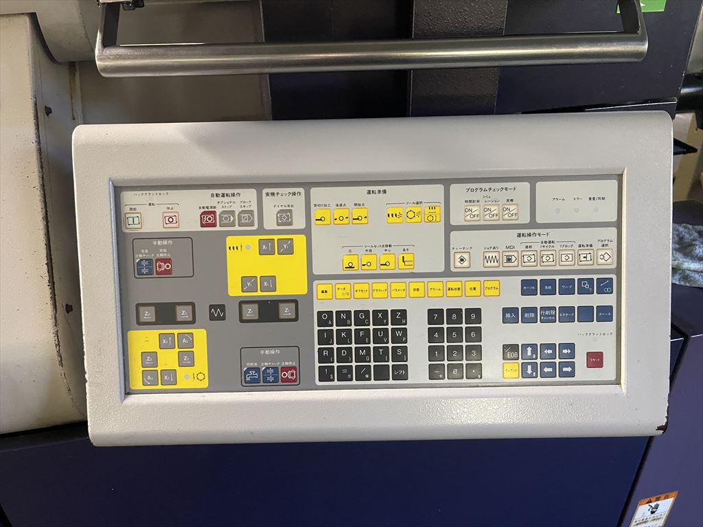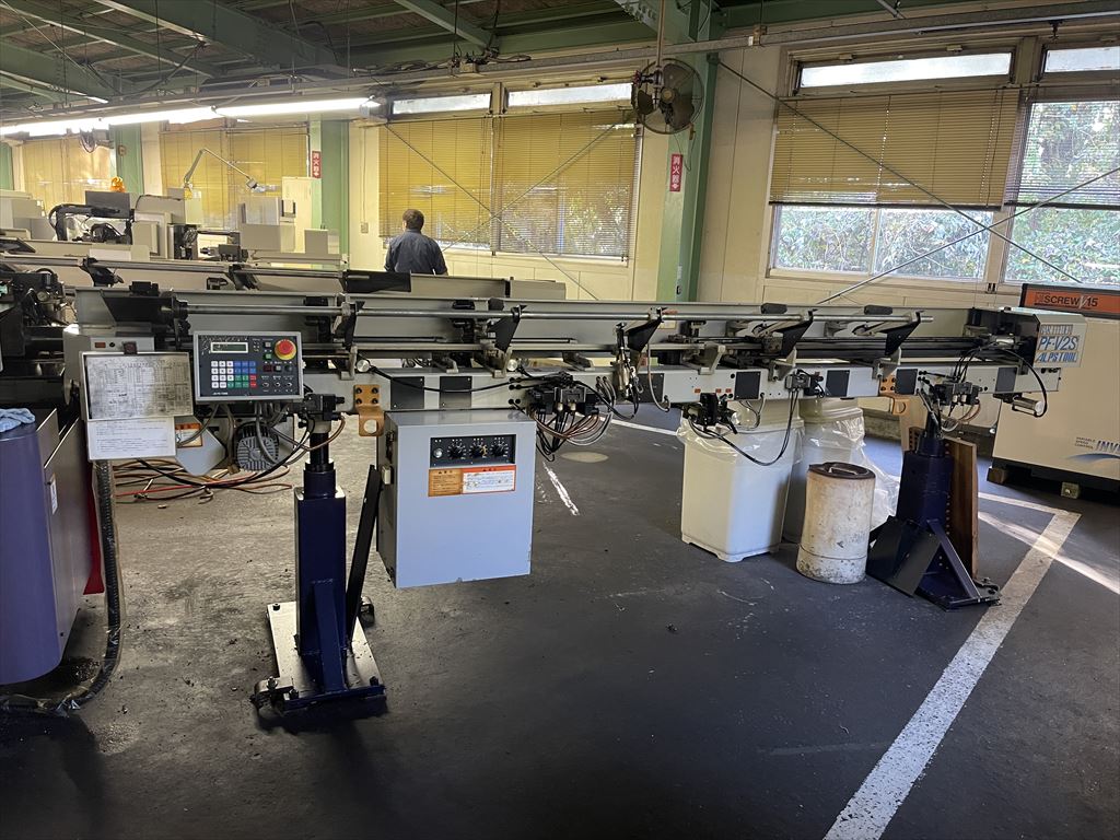 ○特徴 タレット刃物台付 ○最少設定範囲: X1・X2・Y1軸:0.001mm(直径) Z1・Z2・Z3軸:0.001mm A2軸:0.001° 主軸割出:15° ○モーター 主軸用2.2/3.7kw(インバータ) 背面主軸用:0.75/1.5kw(スピンドルモータ) 工具主軸用:(くし刃)0.4kw(インバータ) (タレット)0.4kw(インバータ) Y1・A2軸用:0.3kw×2(ACサーボモータ) X2・Y1・Z1・Z2・Z3軸用:0.5kw×5 油圧用:0.4kw 切削油用:0.25kw 潤滑油用:0.004kw 入力電源容量:14KVA ○機械の大きさ 幅2380×奥行1100×高さ1700mm 重量2400kg ○付属品 アルプスツール PF-V2S(3m) 1997年9月 944007 長物装置 |