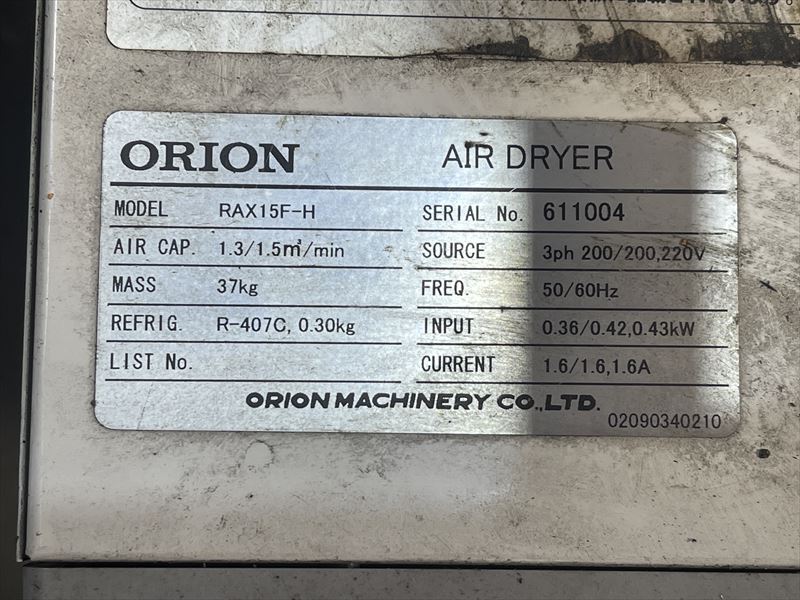 AIR CAP 1.3/1.5m3/min MASS 37㎏ REFRIG、0.30㎏ SOURCE 3ph 200/200,220V