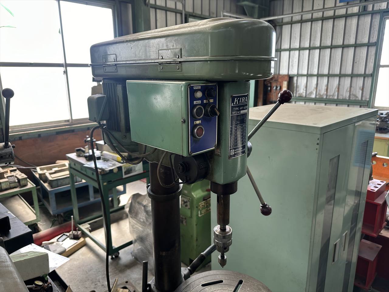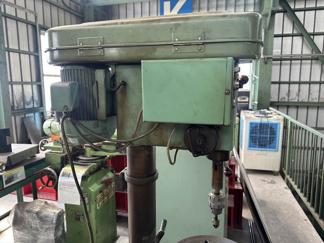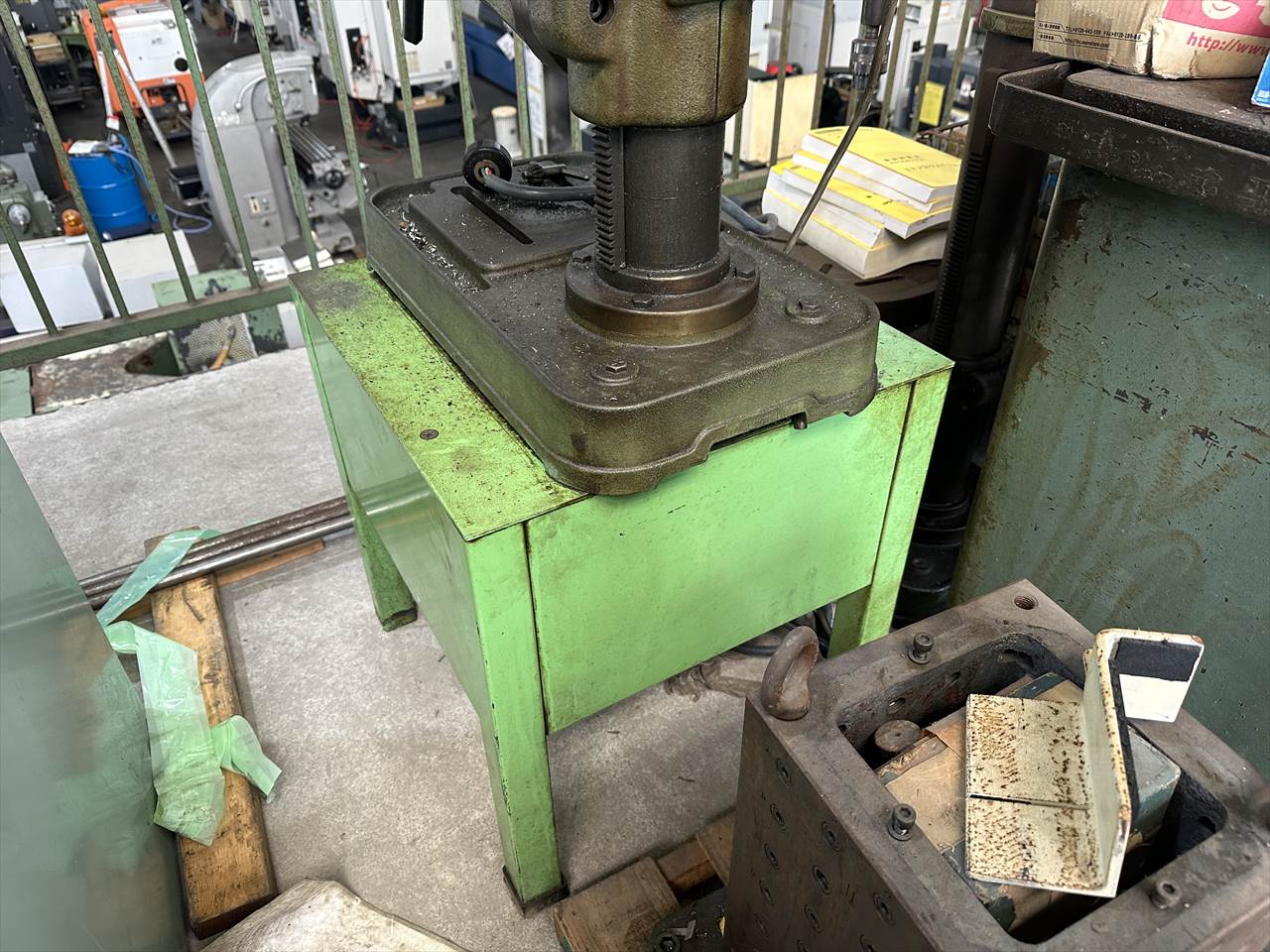 ○主な仕様   φ20mm 卓上ボール盤 ○容量・キャパシティ   振りφ420mm   主軸とテーブルとの最大距離 470mm(角テーブル)   主軸とベースとの最大距離 660mm ○能力   穴あけ能力(鋼)φ4-φ16(鋳物)φ4-φ20   コラムの直径φ100mm ○テーブル   テーブルの大きさ□300mm   テーブルの上下動425mm ○主軸   主軸の最大上下動130mm   主軸端のテーパM.T.No,2   主軸回転数250-370-620-1400-1650-2500rpm   主軸モータ0.4kw.4P ○機械の大きさ   寸法:高さ1275 ベース寸法600×340mm   重量:130Kg
