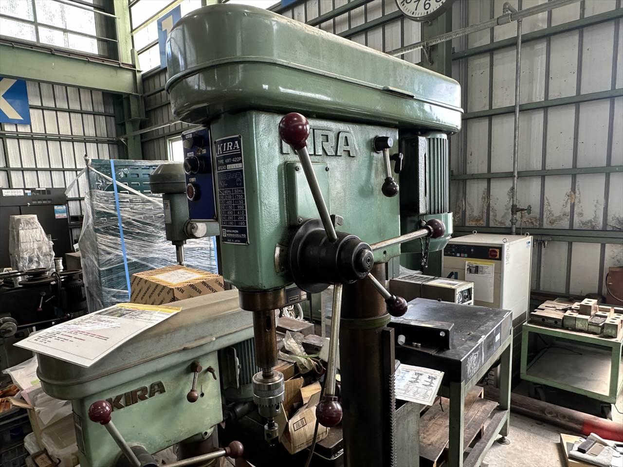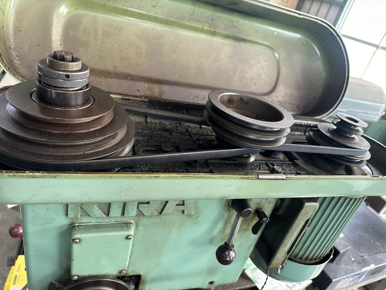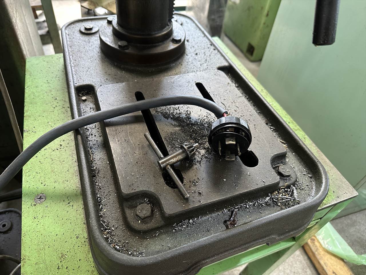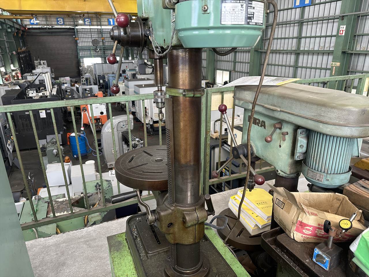 ○主な仕様   φ20mm 卓上ボール盤 ○容量・キャパシティ   振りφ420mm   主軸とテーブルとの最大距離 470mm(角テーブル)   主軸とベースとの最大距離 660mm ○能力   穴あけ能力(鋼)φ4-φ16(鋳物)φ4-φ20   コラムの直径φ100mm ○テーブル   テーブルの大きさ□300mm   テーブルの上下動425mm ○主軸   主軸の最大上下動130mm   主軸端のテーパM.T.No,2   主軸回転数250-370-620-1400-1650-2500rpm   主軸モータ0.4kw.4P ○機械の大きさ   寸法:高さ1275 ベース寸法600×340mm   重量:130Kg