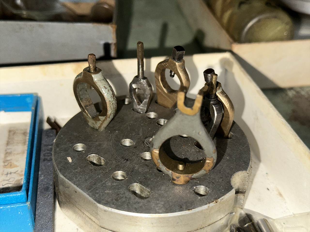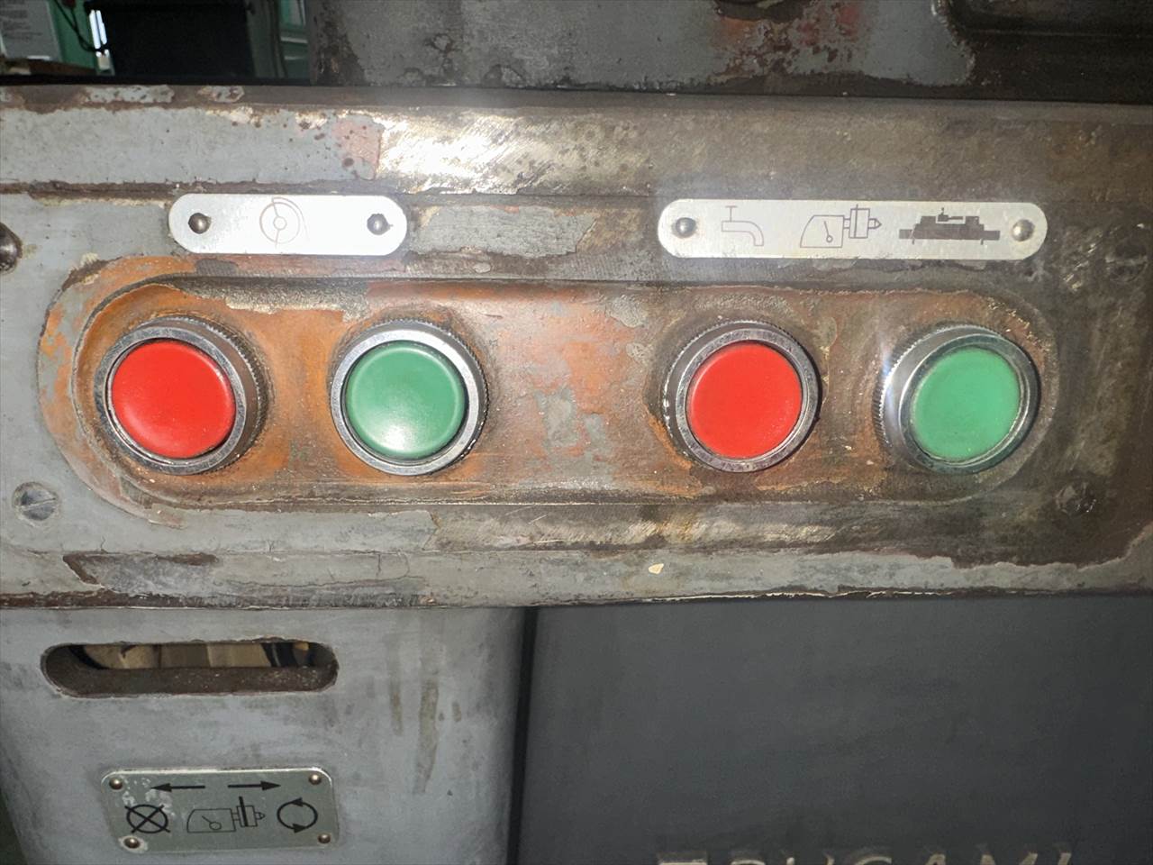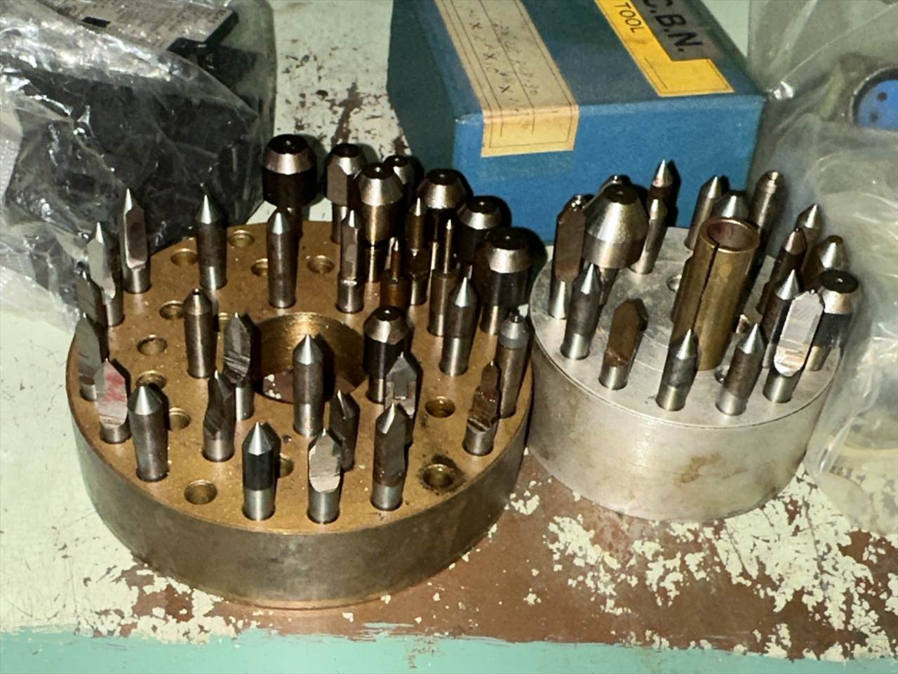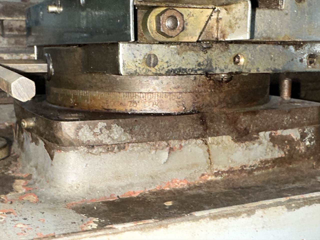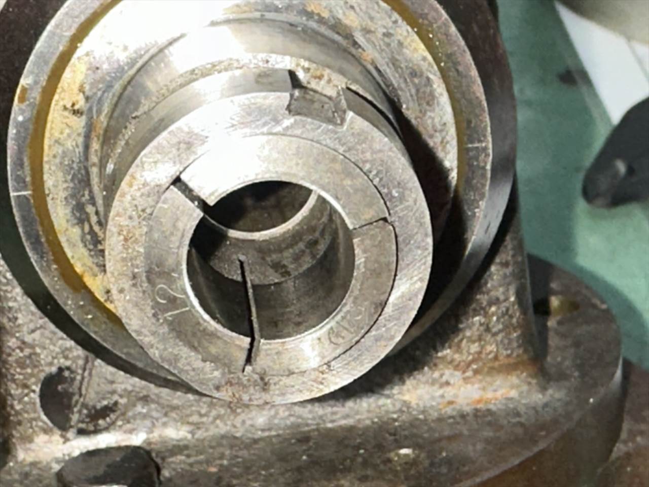 ○特徴  付属品多数(キャビネット付)  特に旋廻主軸台付きのため加工範囲が広い ○研削できる工作物  最大外径:φ35mm 最少外径:φ0.8mm  最大長さ:手動150mm 自動80mm ○機械の能力  センタ間の最大距離:150mm テーブル上の振り:φ105mm  コレットチャックの最大径:φ12mm(オプション旋廻主軸台) ○回転数  外径砥石車(50/60Hz):5000、6000rpm  主軸(5段):190、310、515、850、1400rpm ○砥石車  外径φ125×幅MAX13×内径φ19.5mm ○砥石台  前後方向の移動量:30mm 旋廻できる角度:±90°  ダイヤルの1目盛の読み:0.002mm ○テーブル  旋廻できる角度:±4.5°  左右方向の最大移動量:手動150 自動80mm  送り速度(3段):50~1120mm/min ○モータ  砥石車用:回転数3000/3600rpm(50/60Hz) 出力0.2kw2P  テーブル駆動用:回転数1500/1800rpm(50/60Hz) 出力0.2kw4P ○機械の大きさ  所要床面積:間口830×奥行710×高さ1520mm  床面から主軸中心までの高さ:1100mm 重量480㎏  工具キャビネット:間口500×奥行450×高さ1000mm