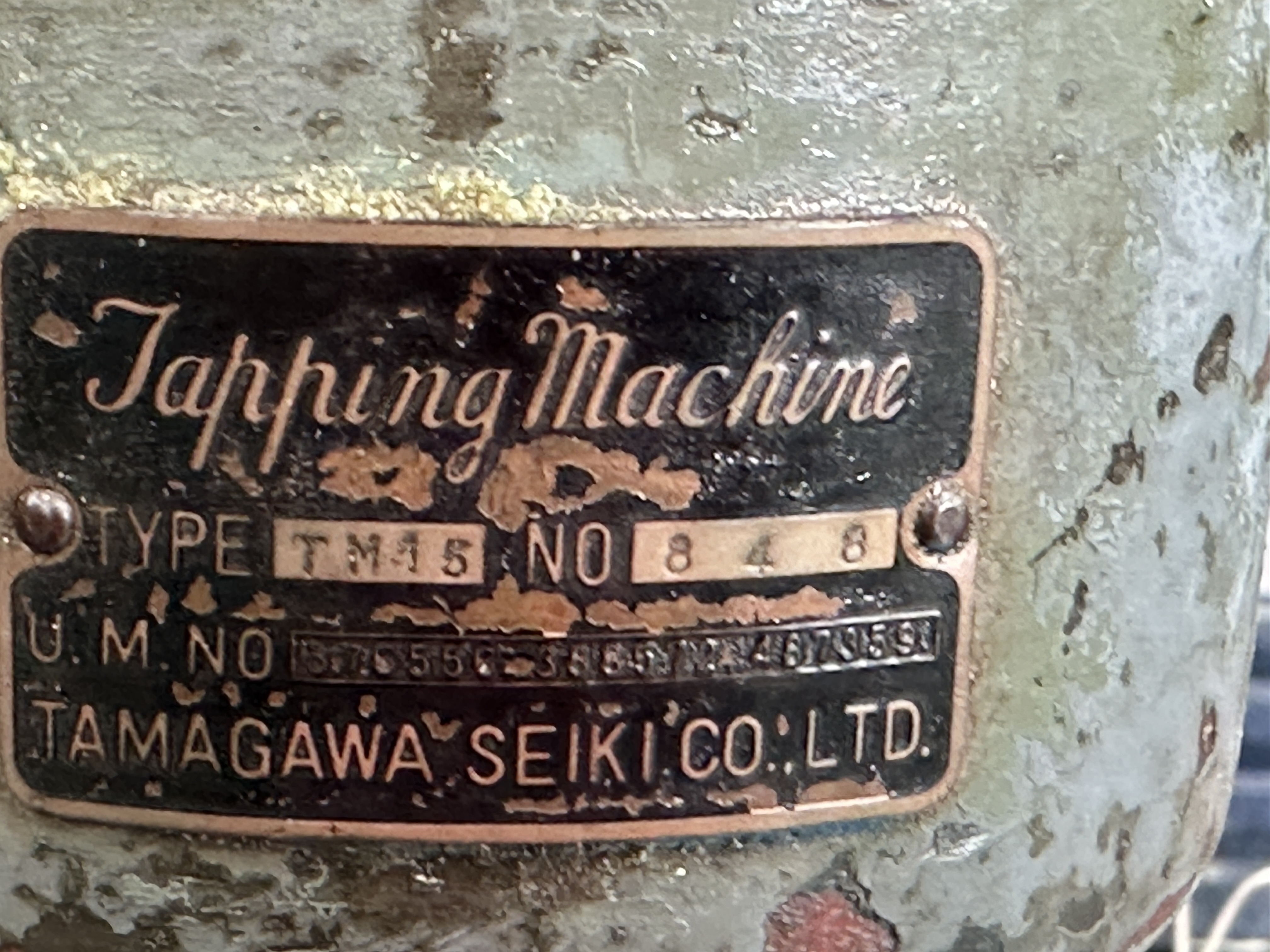 ○ネジ立能力  2~6mm ○モータ  単相 100V 200W ○チャックテーパ  JT#2 ○スピンドル回転数  切削:900rpm 帰り:1100rpm ○テーブル作業面積(前後×左右)  450×290mm ○スピンドルストローク  35mm ○スピンドルと支柱の距離  325mm ○テーブルトチャックの最大距離  285mm ○ベルト寸法(上下)  1330 1320mm ○機械の大きさ  幅370×奥行835~810×高さ705~470mm