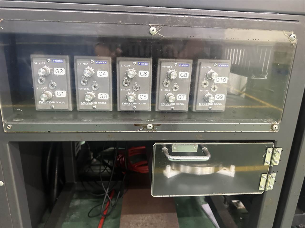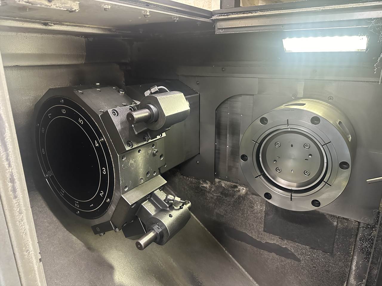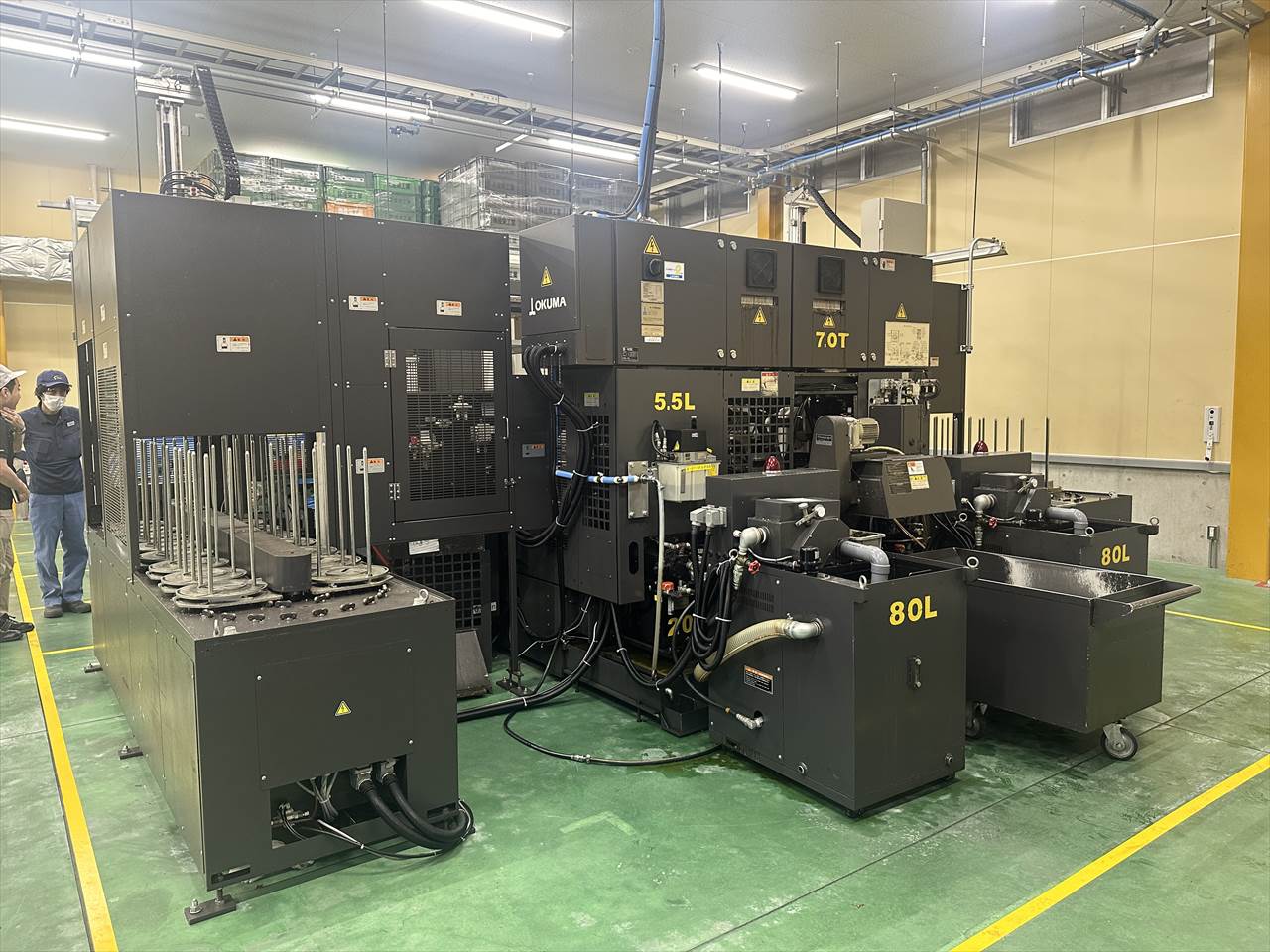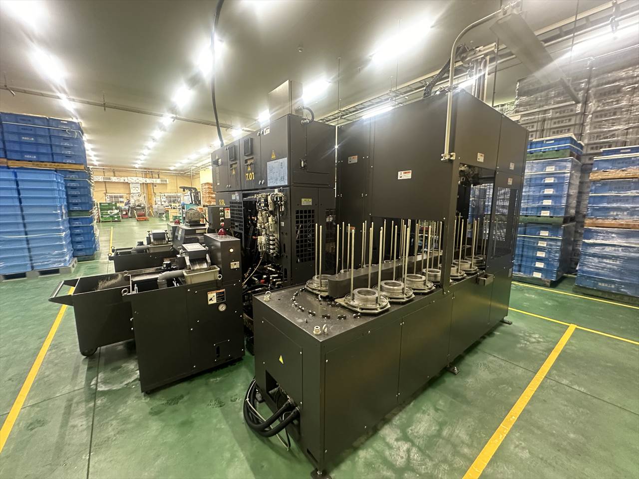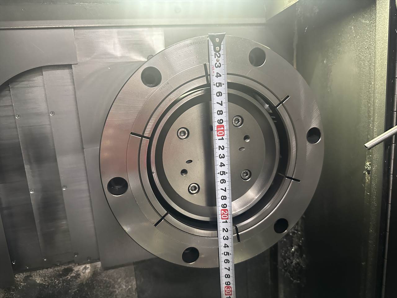 ○特徴  NC装置:OSP P300LA チャック:帝国製コレット 回転シリンダ:北川製F0933  左ストッカ→仮置きNGシュータ→本体→機外計測→NGシュータ→右ストッカ  ○能力・容量  主軸間距離:450mm 標準チャック:8インチ(※現在は特殊チャック)  最大加工径φ250×長さ60mm(本機能力φ350×200mm) 制御軸数:4軸 ○移動量  X軸:200mm Z軸:200mm 早送り速度:X・Z軸24m/min(スベリガイド) ○主軸  回転速度:32~3200rpm(無段) 主軸端:JIS A2-6  軸受内径:φ100mm 貫通穴:φ62mm ○刃物台  形式:V12 工具取付本数:12本 外径バイト:□25mm 内径工具:φ40mm ○モータ  主軸用:18.5/15(30分/連続)×2 送り軸用:(X軸)BL3kw×2(Z軸)BL2.9kw×2 ○ローダ(反転装置付)  ワーク可搬サイズ:φ250×L60mm φ200×85mm 可搬質量:8㎏×2  駆動方式:3軸サーボ(X・Y・Z)  動作範囲:X軸4230mm(ビーム両側出しの場合) Y軸:645mm Z軸:290mm  早送り速度:X軸120 Y軸100 Z軸40m/min  ローダハンド(エアープッシャー付):3爪チャック 爪ストロークφ32mm  反転ハンド:3爪チャック 爪ストロークφ32mm ○ワークテーブル  ワークサイズ:φ40~φ250mm パレット数:16  段積み高さ:450mm ワーク積載質量:50㎏/パレット ○機械の大きさ(ローダ・ストッカー・計測装置・コンベア・高圧クーラントを含む)  幅5430×奥行4000×高さ3093mm(ローダー最大高さ) 重量:8000㎏