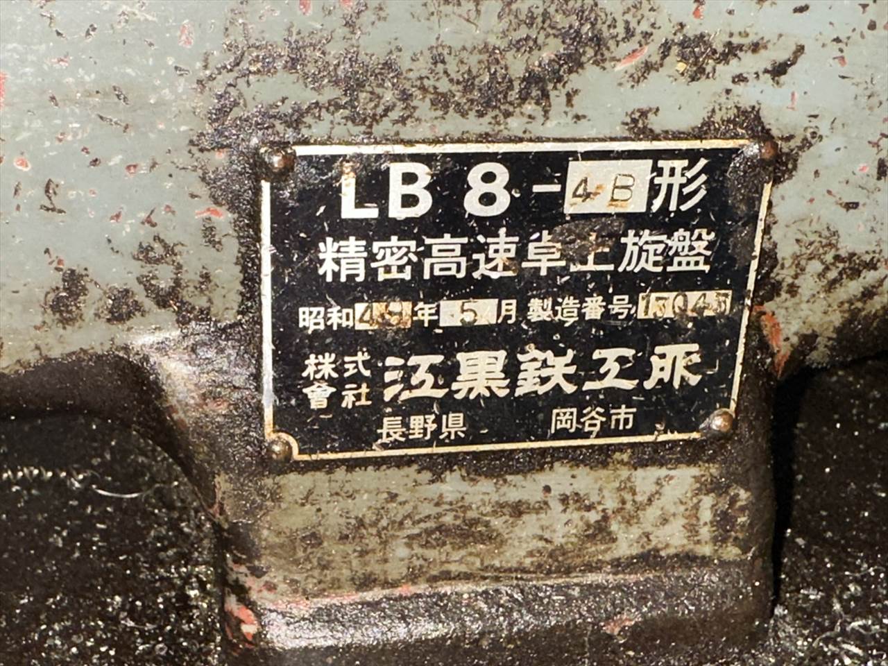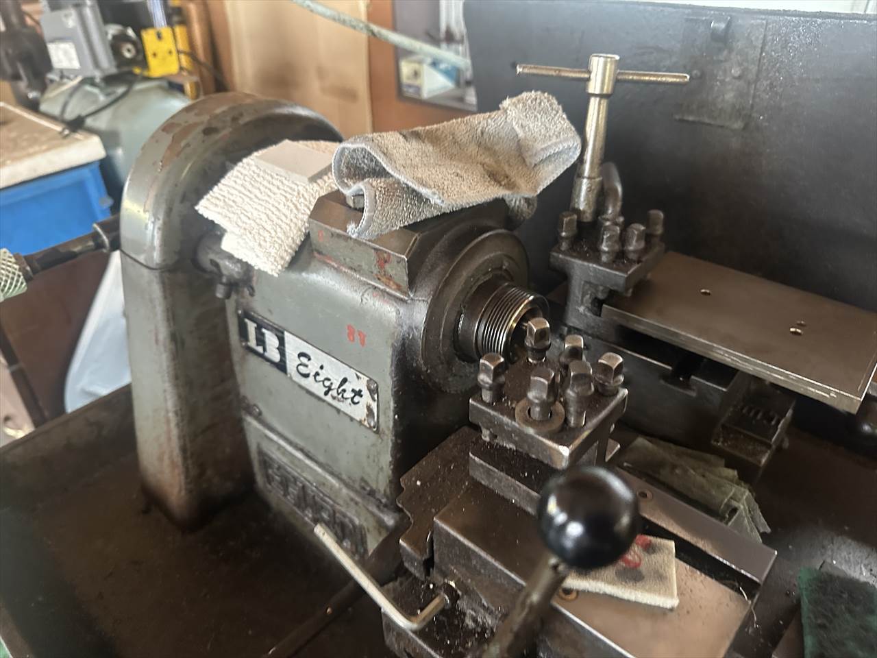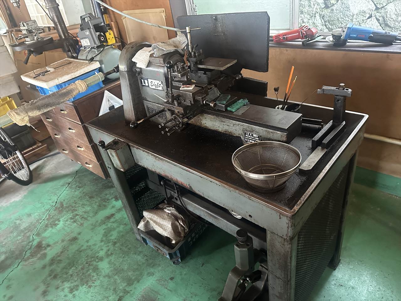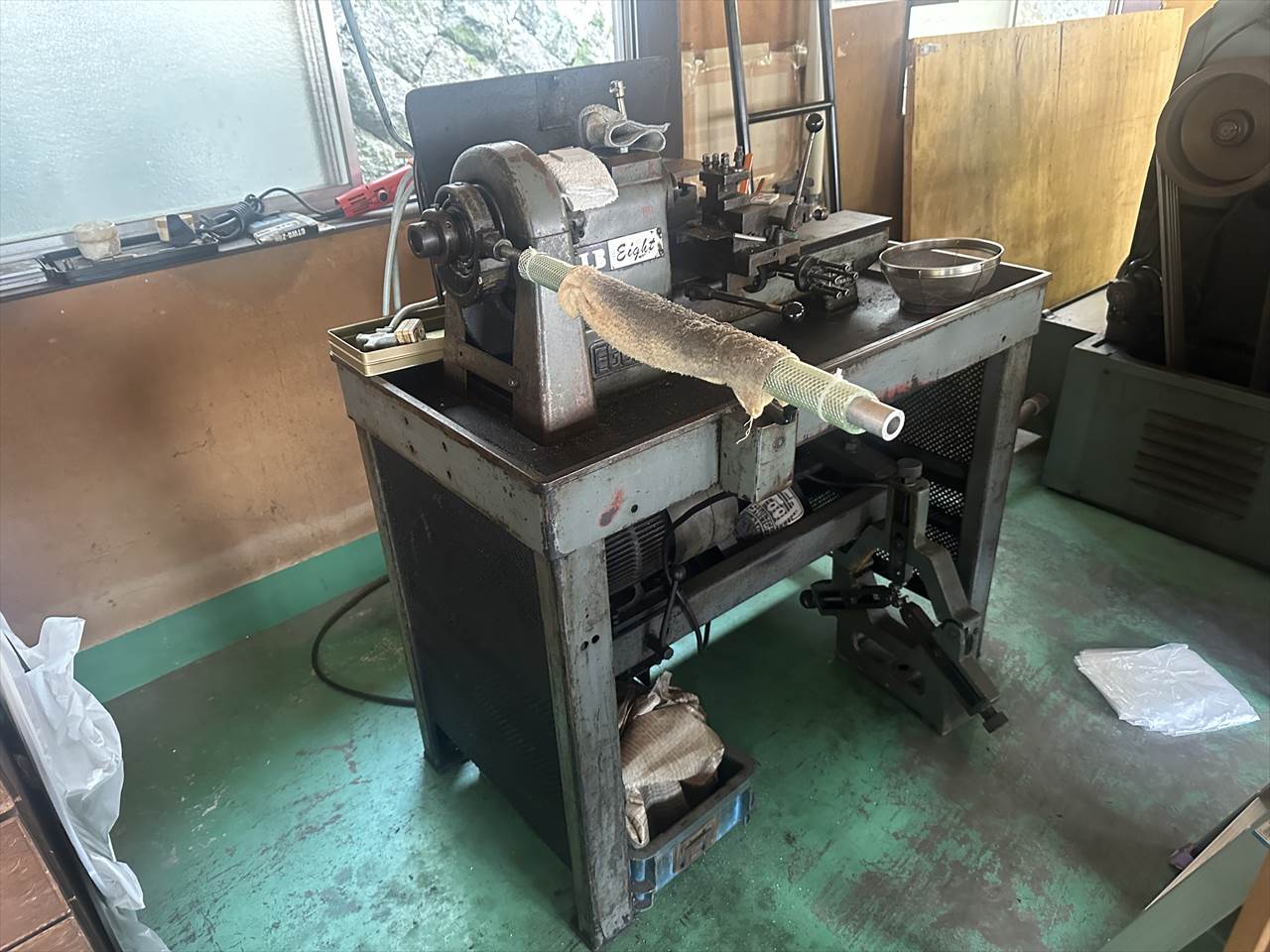 ○能力  ベッド上の振り:φ230mm 切削台上の振り:φ140mm センタ間距離:200mm ○コレット  形式・番号:EDAS 8号 口径:φ19mm 胴径:φ25mm ○主軸回転速度(3段 標準50Hz)  2120・1250・710rpm ○切削台  縦移動量:(前送り台)80(向送り台)72mm  横移動量:110mm ○心押軸  外径:φ20mm 内径:M.T..№1 移動量:90mm ○モータ  200V 0.75kw4P ○機械の大きさ  長1010×幅615×高さ1065mm 機械重量:170Kg