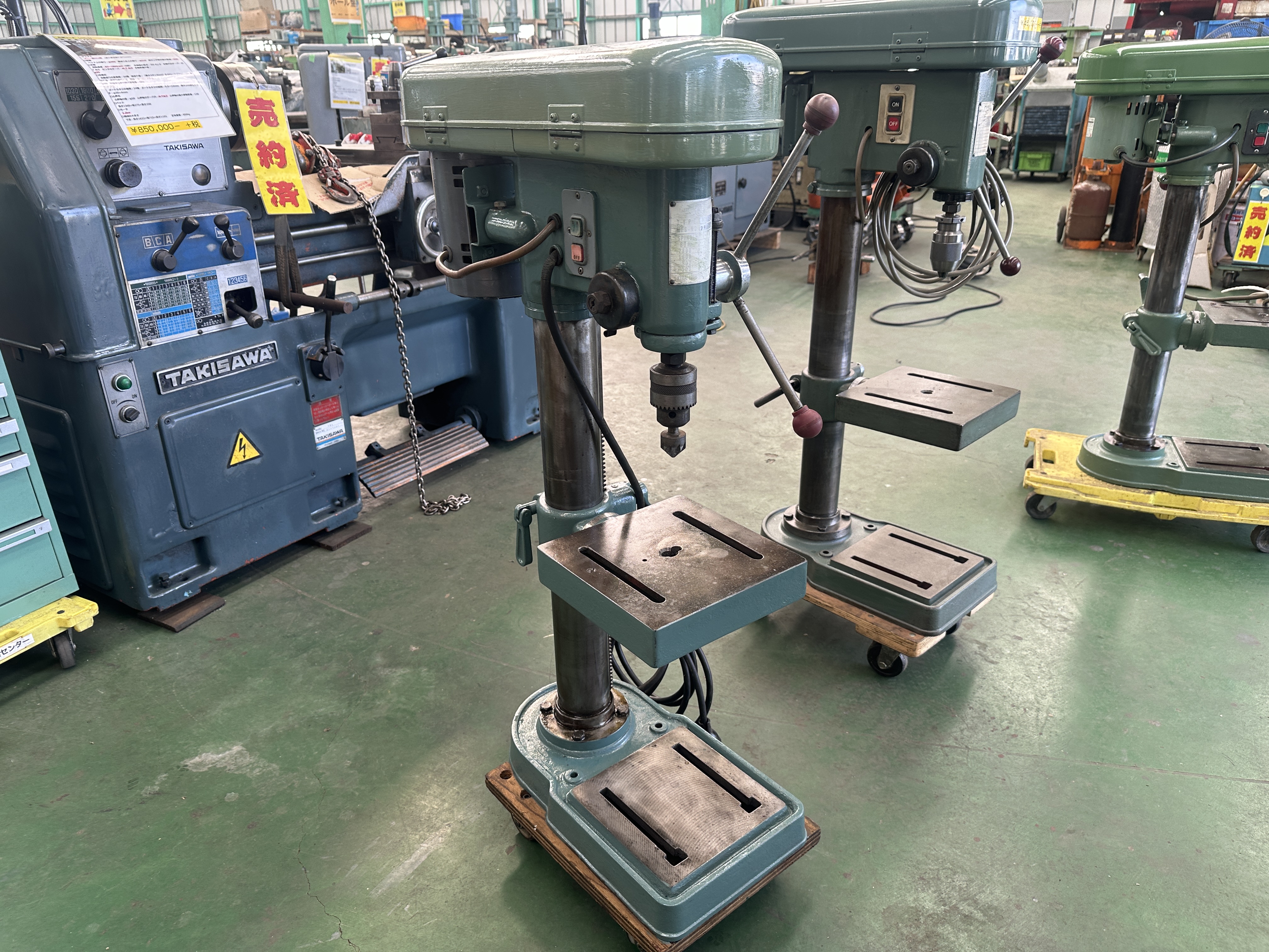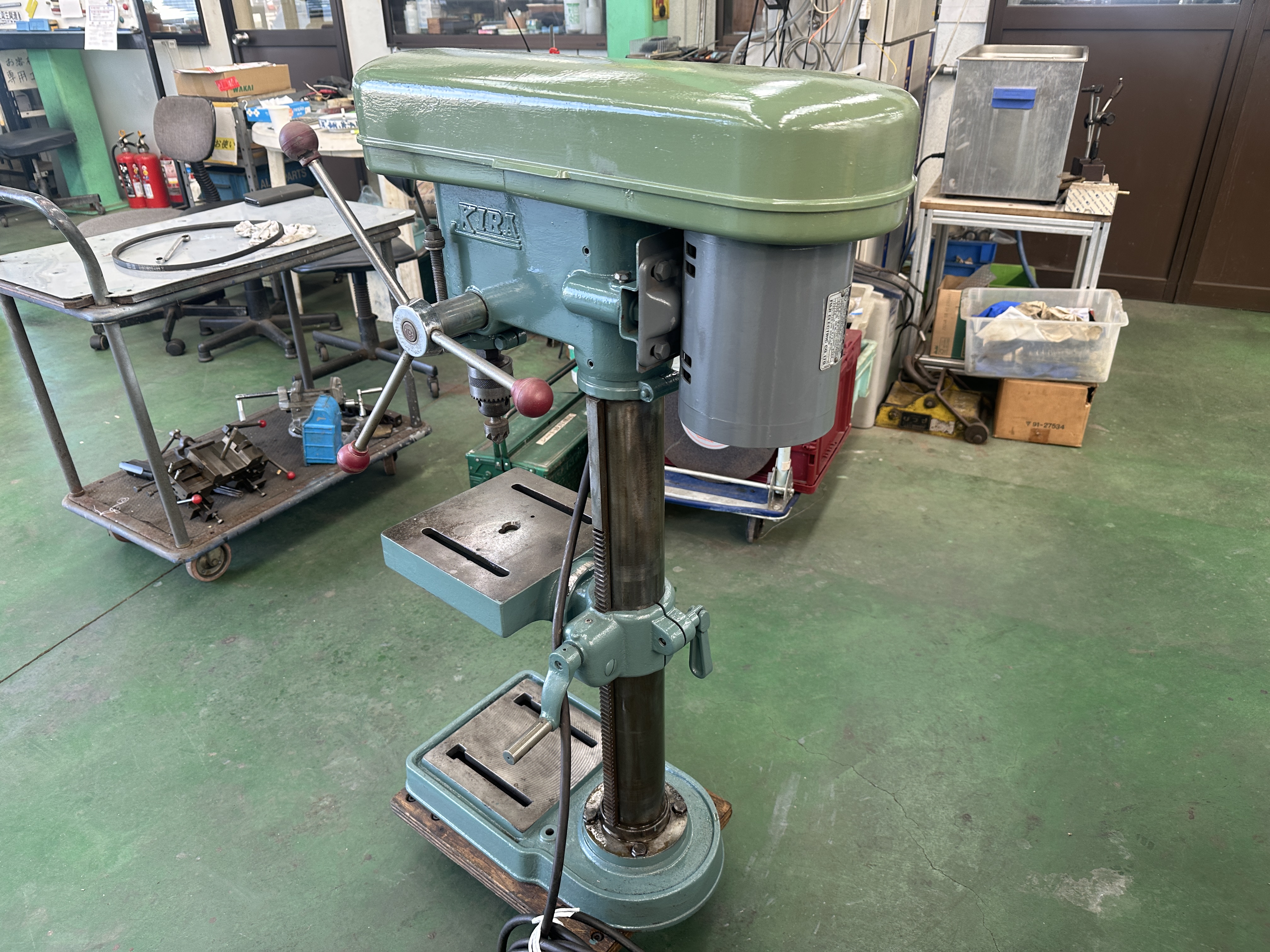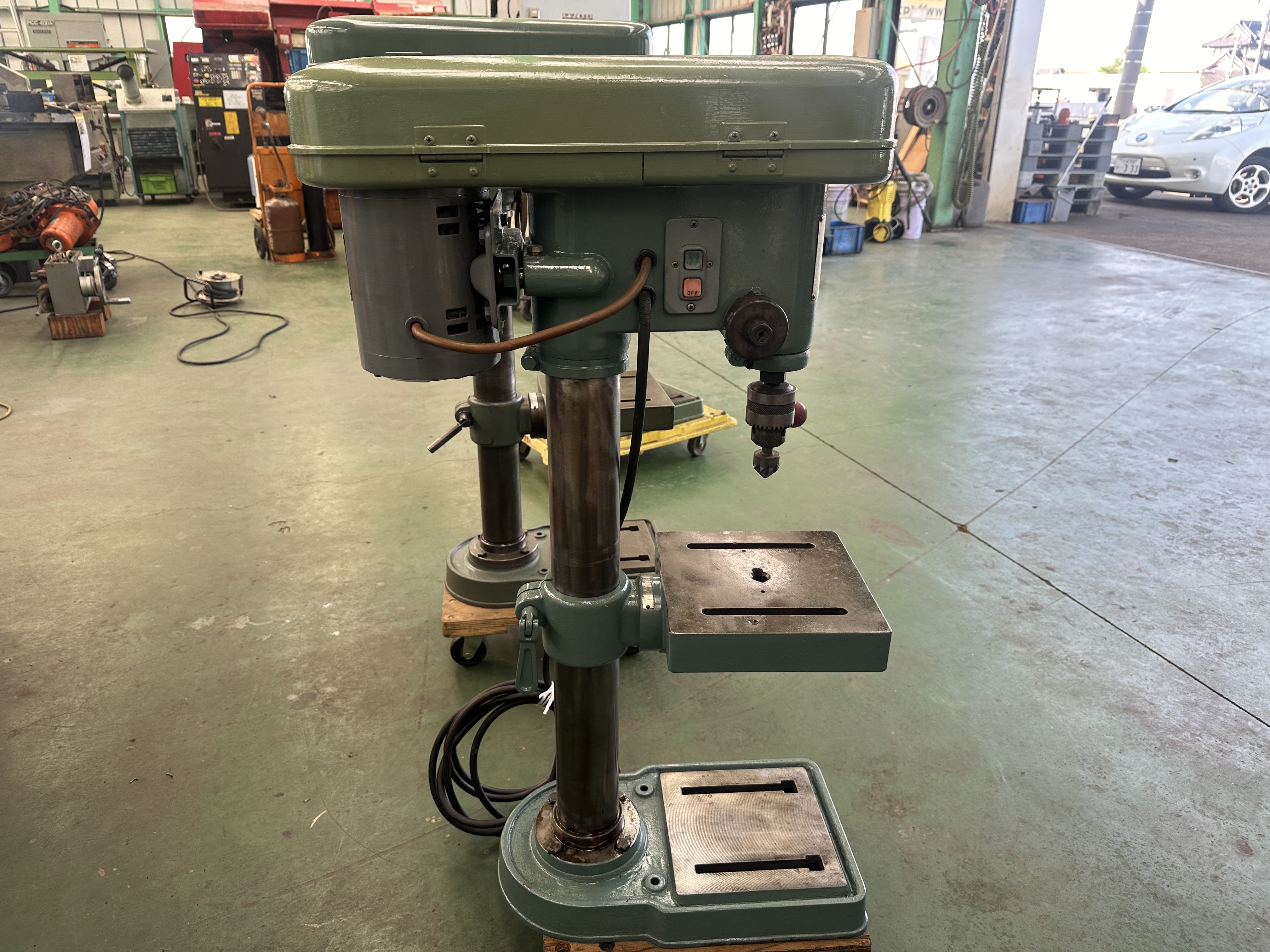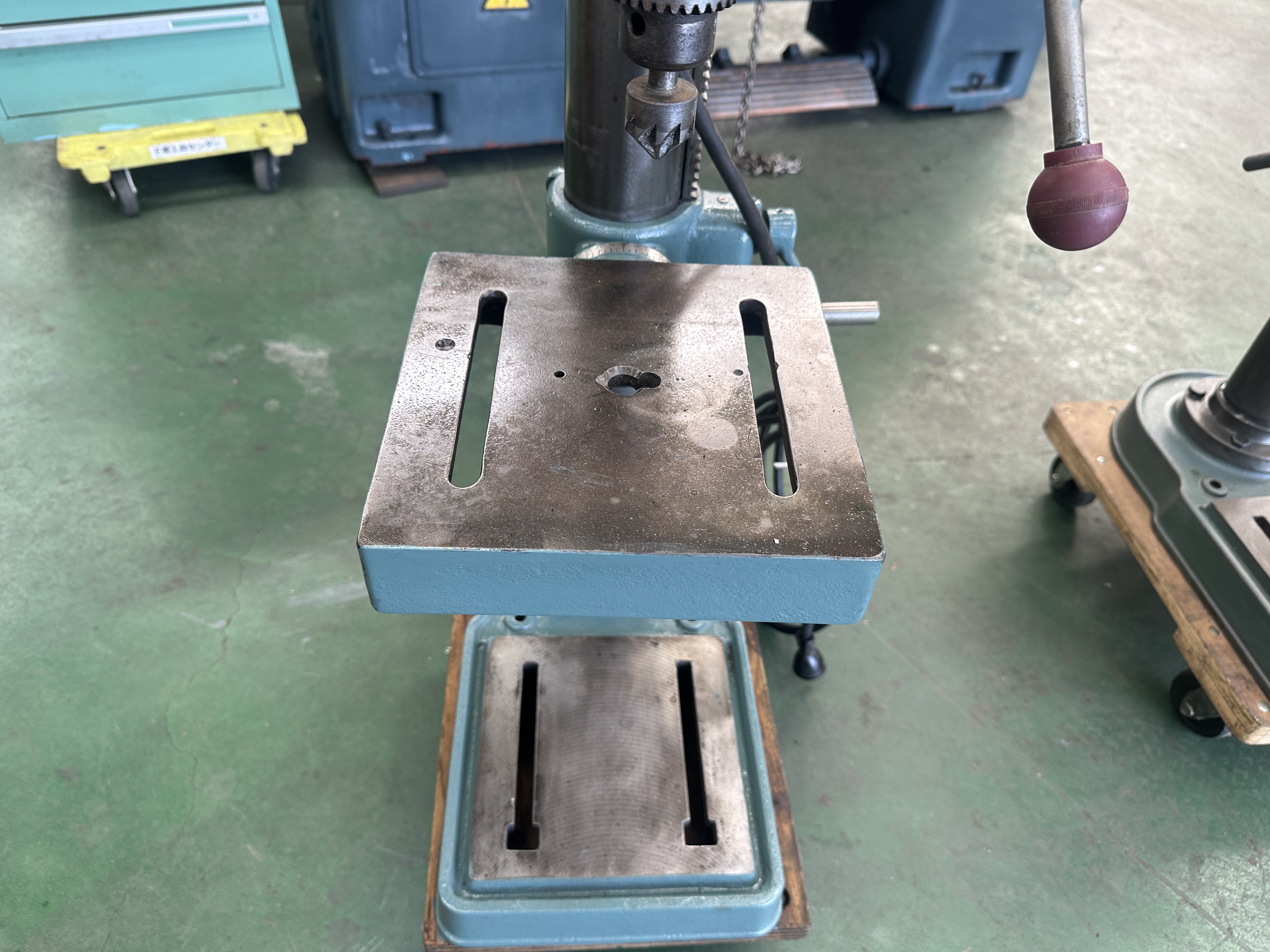 ○穴あけ能力  S45C 3~φ10 FC200 φ3~φ13   ○主軸  シャンク J.T.No.6  上下移動量 80mm  主軸回転数 50hz:415-475-1330-2300 60hz:500-900-1600-2800rpm ○容量・キャパシティ  振り回し φ330mm  テーブル上下動 410mm  主軸とテーブルの最大距離 丸テーブル:430 角テーブル:460mm  主軸とベース面の最大距離 590mm ○主要部の寸法  テーブル寸法 丸:φ285 角:□234mm  コラム直径 φ80mm  ベース面寸法 幅268×奥464mm ○モータ  単相100V 200w4P ○機械の大きさ  幅268×奥行464×高さ990mm 重量:67kg