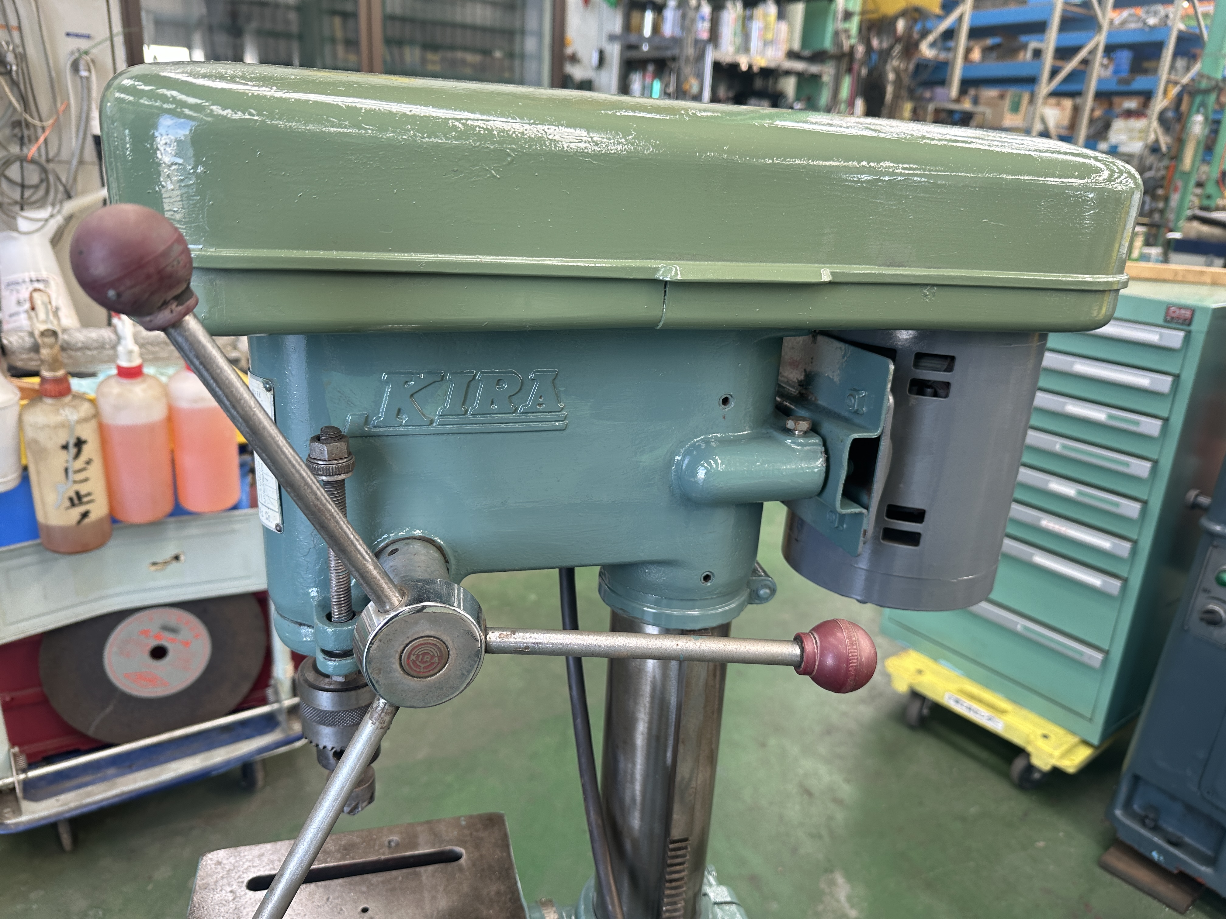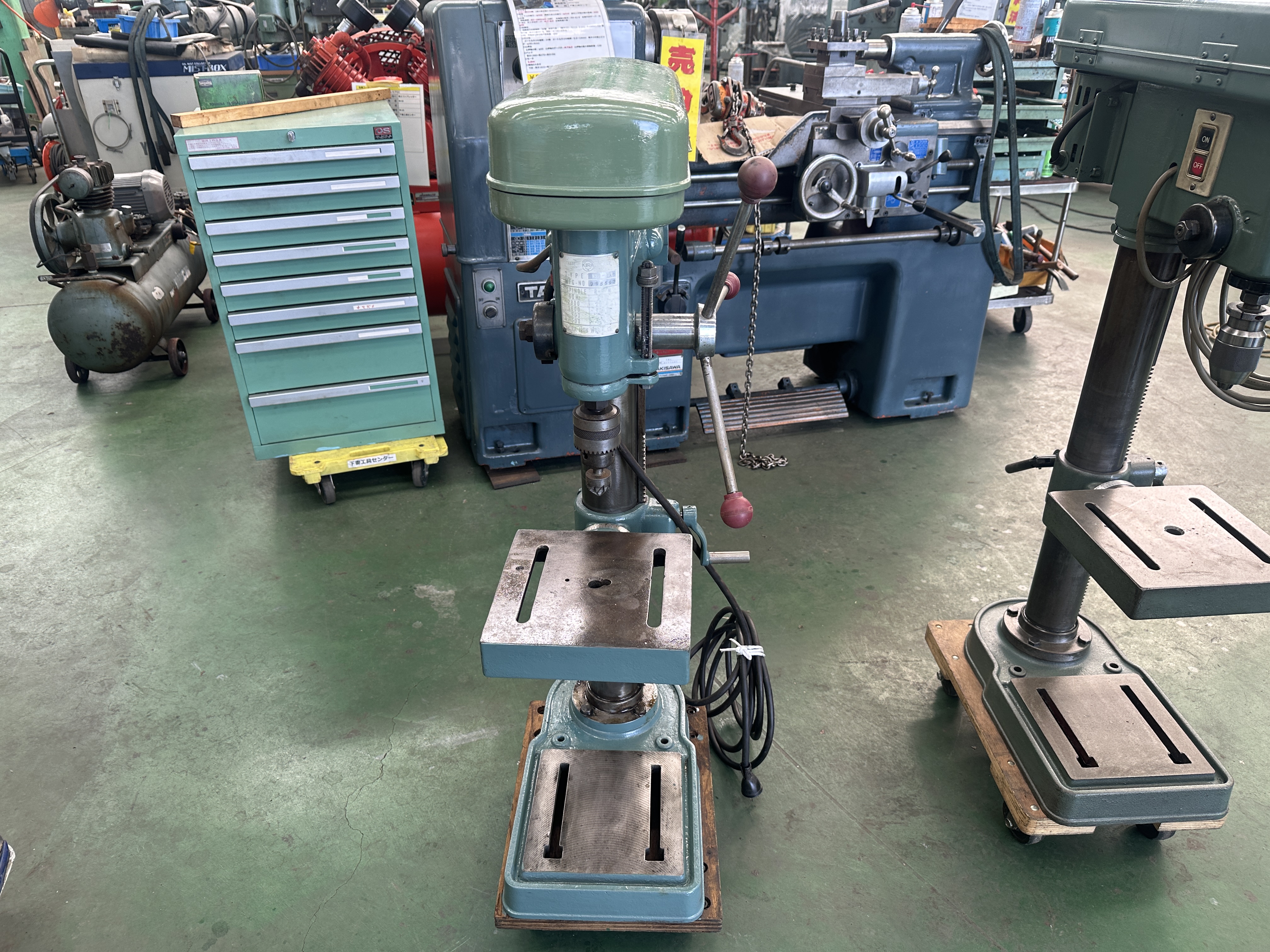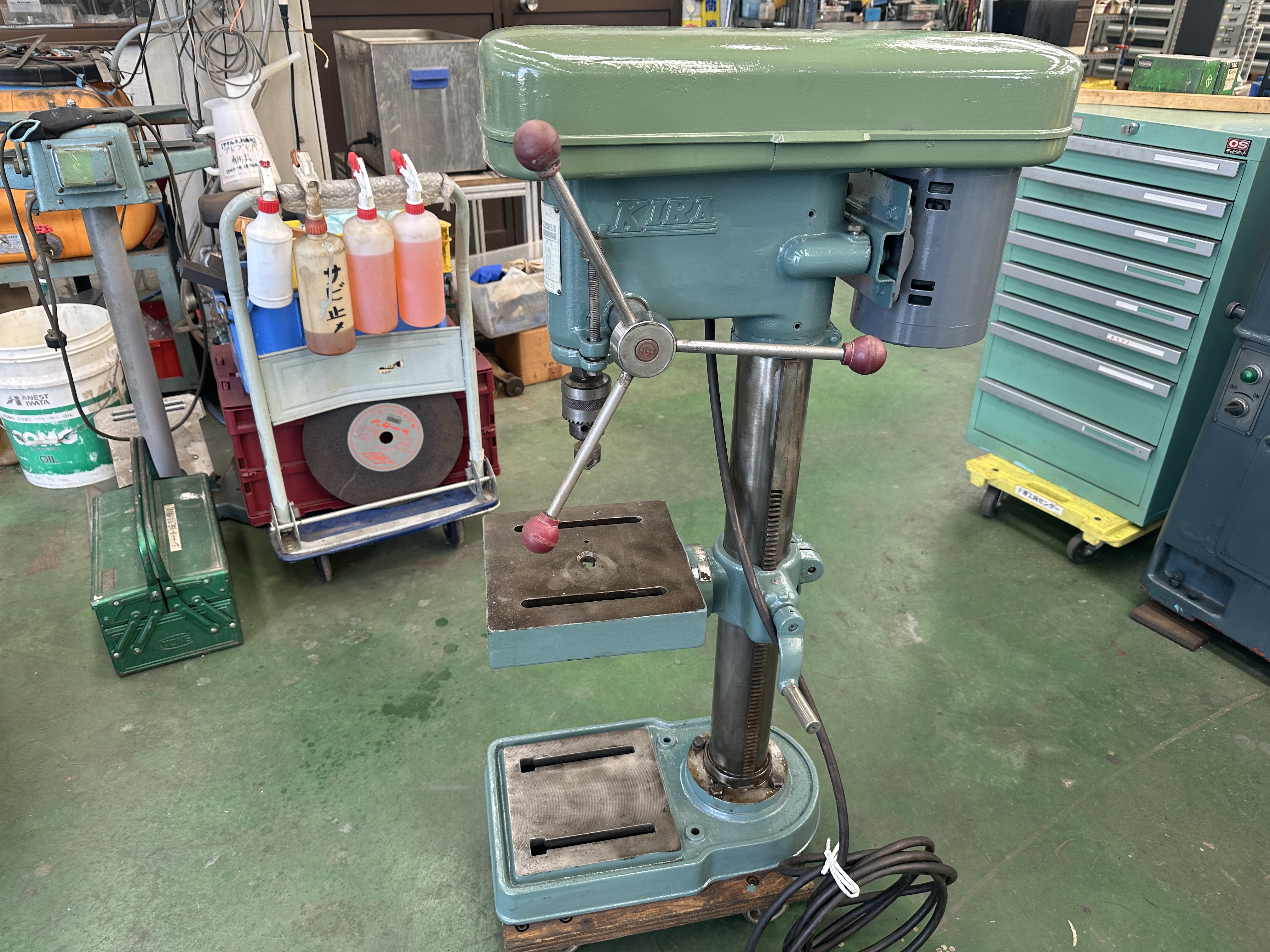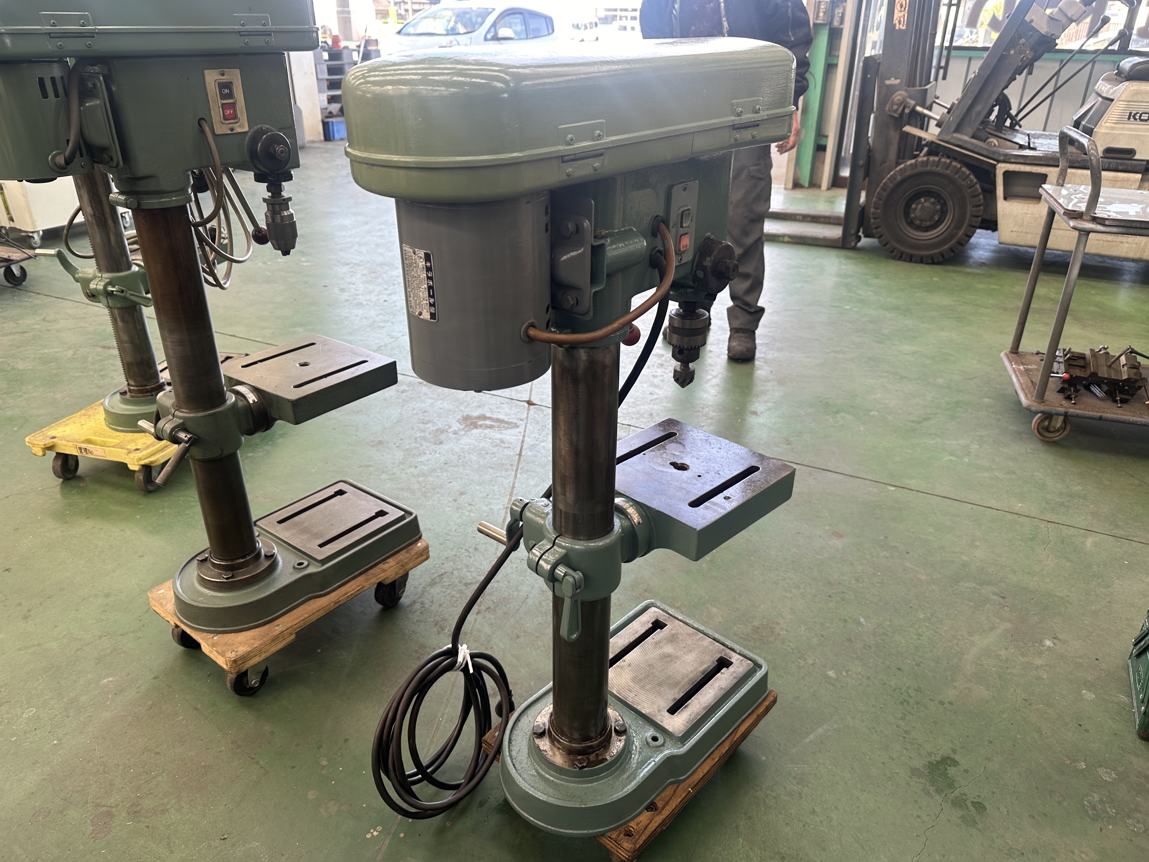 ○穴あけ能力  S45C 3~φ10 FC200 φ3~φ13   ○主軸  シャンク J.T.No.6  上下移動量 80mm  主軸回転数 50hz:415-475-1330-2300 60hz:500-900-1600-2800rpm ○容量・キャパシティ  振り回し φ330mm  テーブル上下動 410mm  主軸とテーブルの最大距離 丸テーブル:430 角テーブル:460mm  主軸とベース面の最大距離 590mm ○主要部の寸法  テーブル寸法 丸:φ285 角:□234mm  コラム直径 φ80mm  ベース面寸法 幅268×奥464mm ○モータ  単相100V 200w4P ○機械の大きさ  幅268×奥行464×高さ990mm 重量:67kg