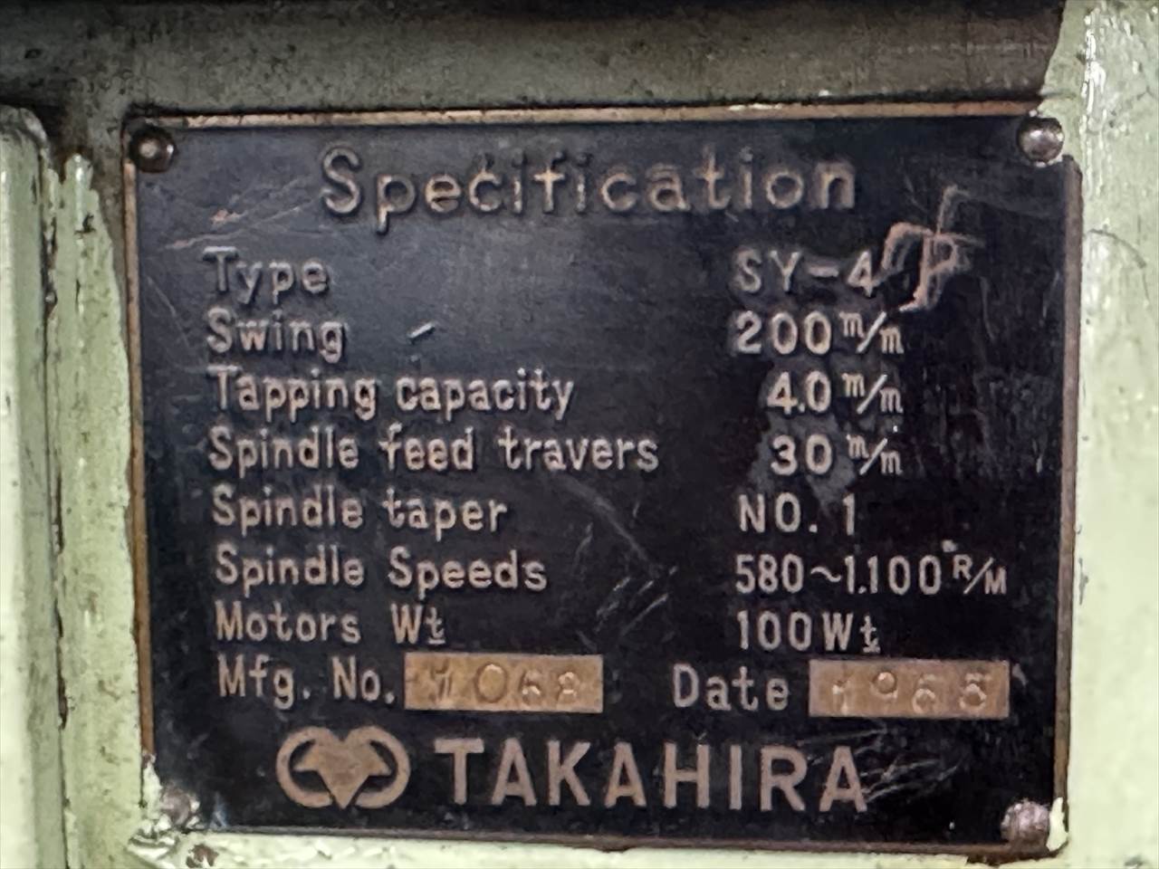 ○振り  φ200 ○タッピング網力  M4 ○主軸ストローク  30 ○主軸テーパ  №1 ○主軸回転数  580~1100rpm ○モータ  三相200V 100W