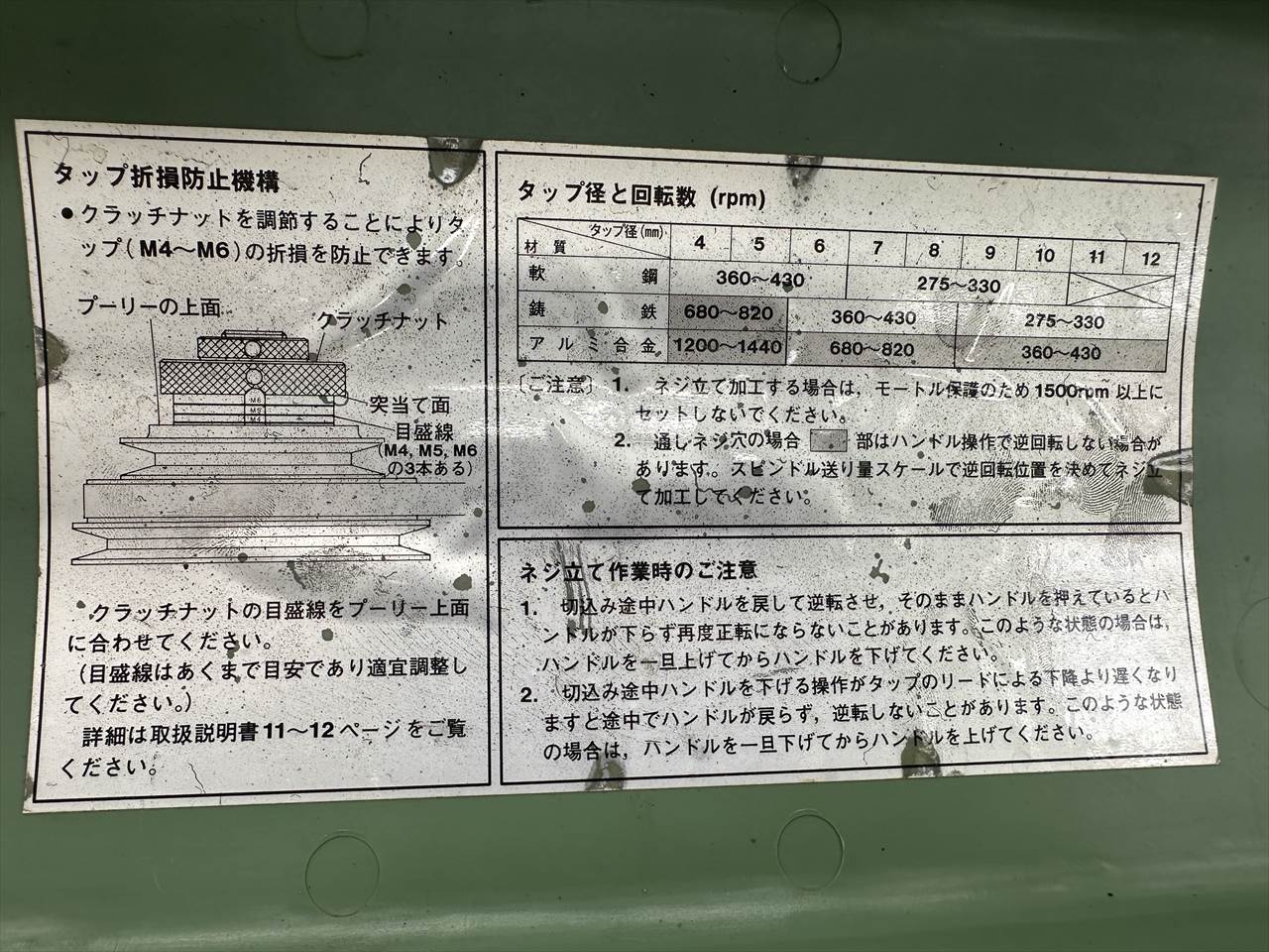 穴あけ:φ13mm ねじ立て:鋼材M4~M10 鋳鉄M4~M12 ステンレスM4~M8