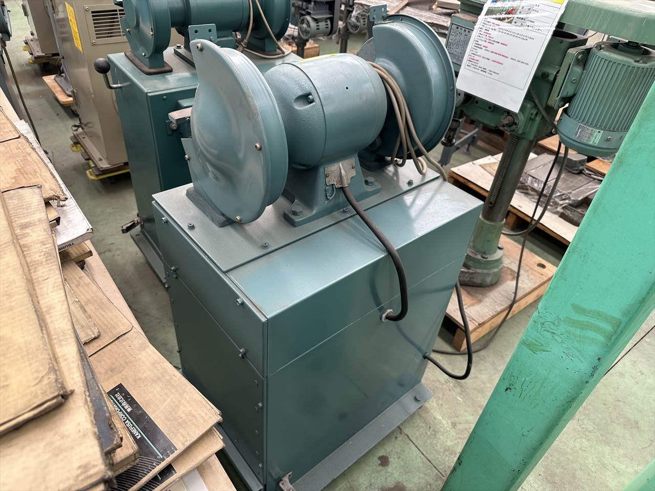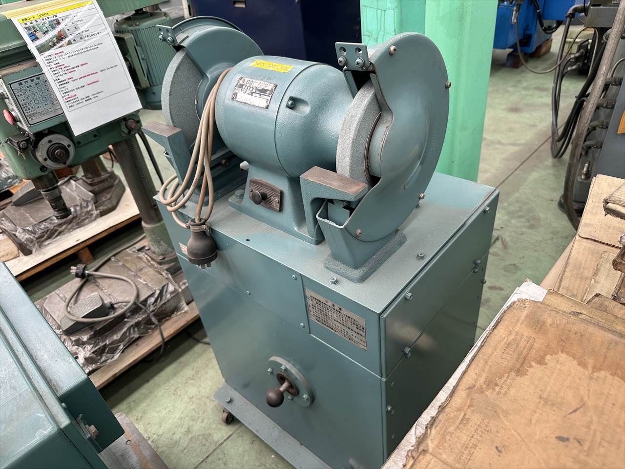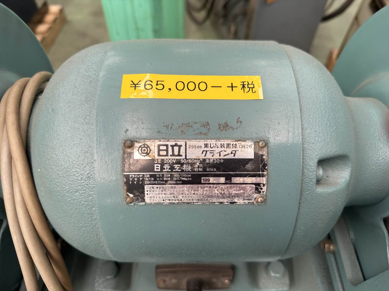 ○タイプ   集塵装置付両頭グラインダー ○グラインダ   3.5A  出力750W 1490/1790rpm ○ブロア   1.8/1.7A 出力400W 2910/3480rpm ○砥石   寸法φ255×25×φ09.05   研削速度 2000m/min