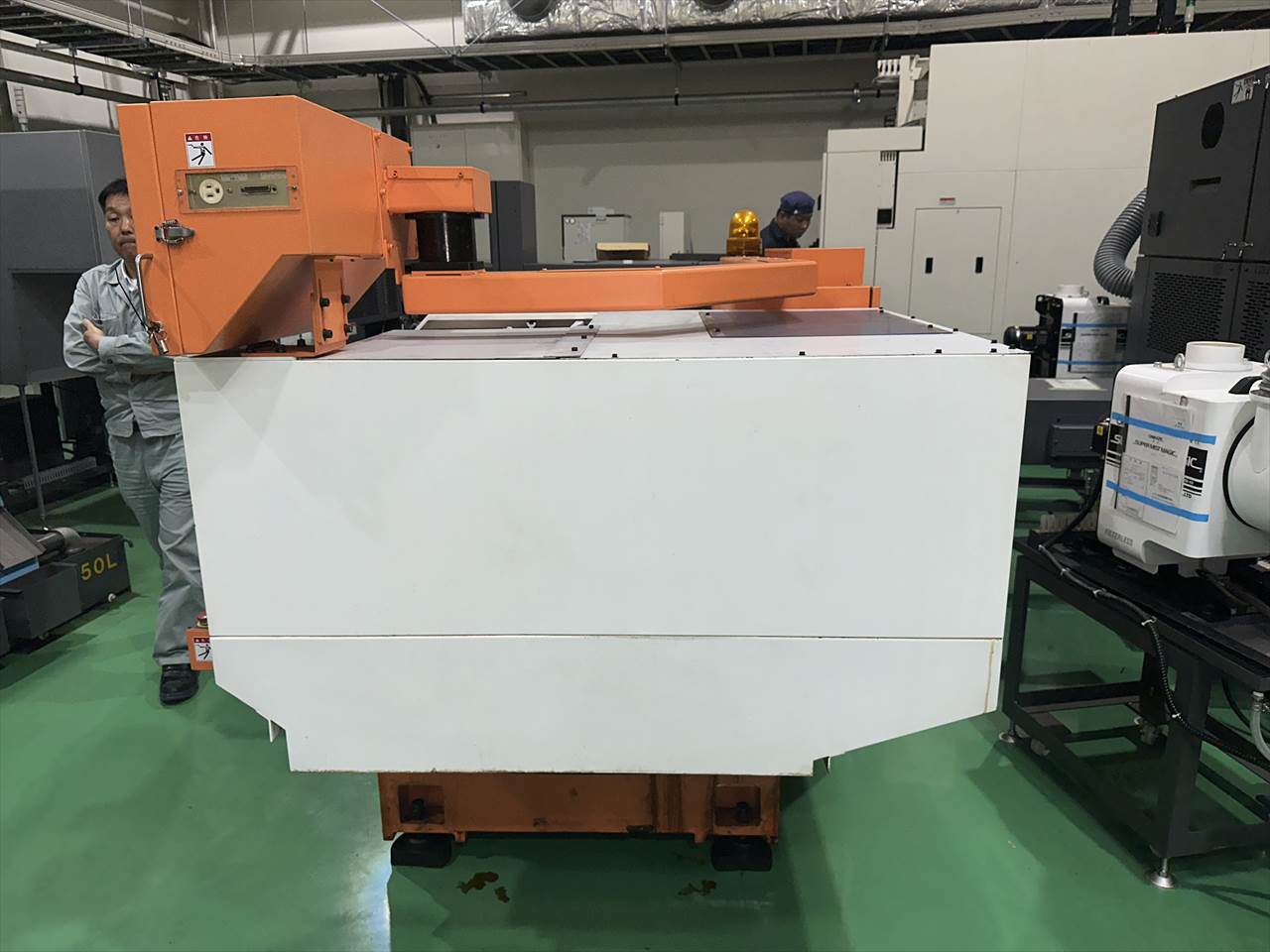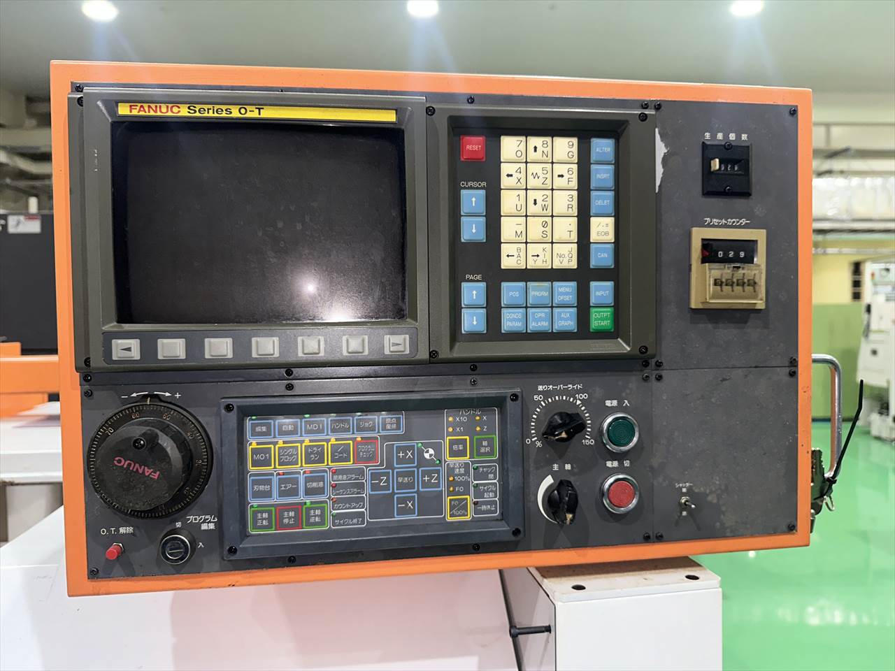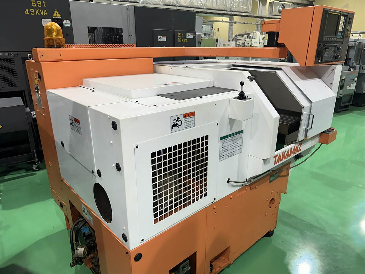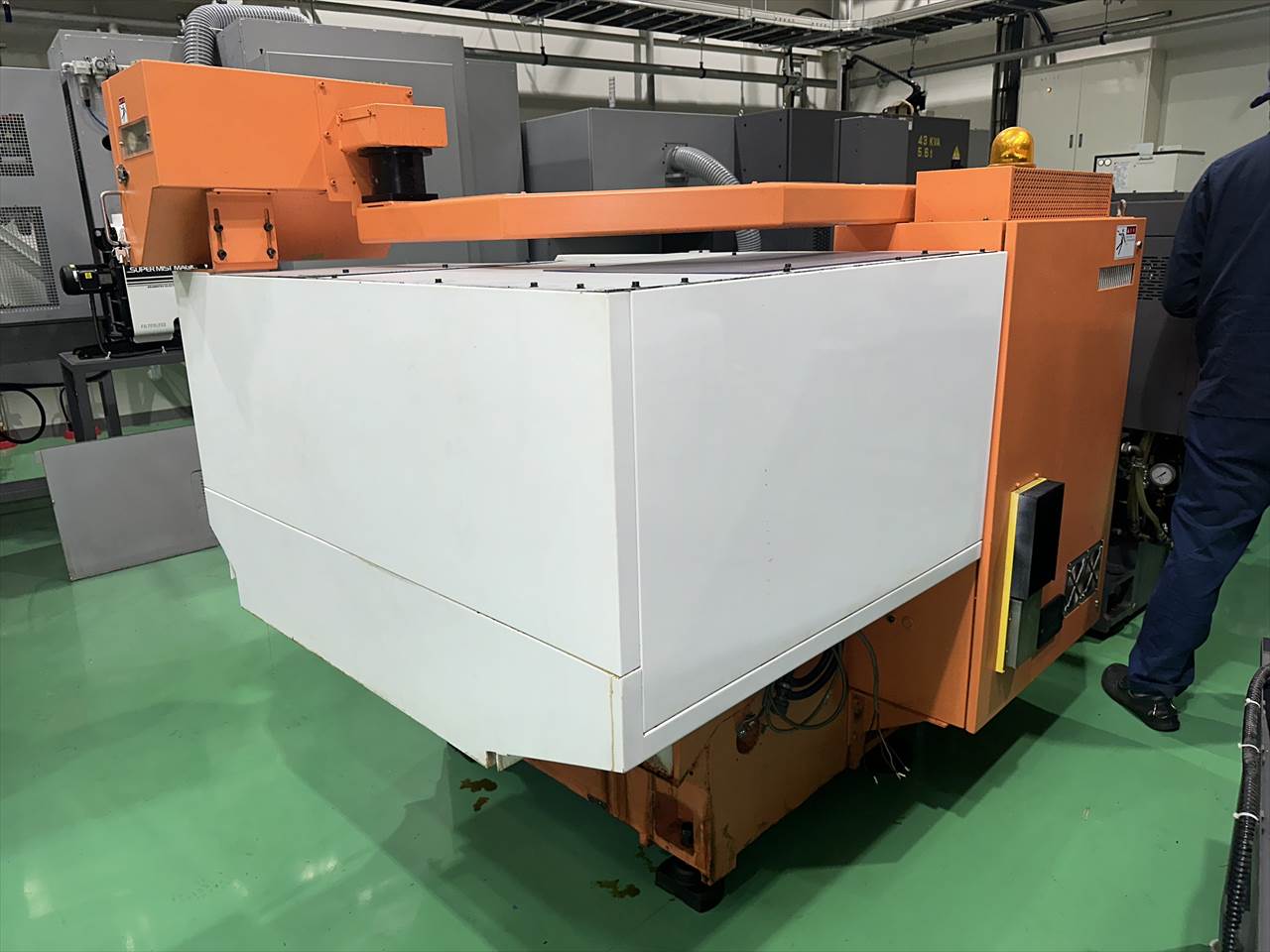 ○特徴  特大のクシ刃型NC旋盤 コレット多数とバイトホルダ付  稼働時間が少ないため程度良好 ○能力  最大振り:φ300 スライド上の振り:φ170  チャックサイズ:6インチ  (現在はコレットチャック) ○主軸  主軸端形状:フラットタイプ 主軸貫通穴径:φ36  主軸回転数:250~4500rpm ○刃物台(水平リニアタレット)  最大工具サイス゛:□20 φ25  最大移動量:X軸300 Z軸300mm  早送り速度:X軸12 Z軸18m/min ○モータ  主軸:AC3.7kw  送り:X軸AC0.6 Z軸AC0.6kw  油圧:AC0.75kw ○総電源容量  10KVA ○機械の大きさ  主軸芯高さ:1000mm  幅2065×奥行1590×高さ1615mm 重量:2000㎏