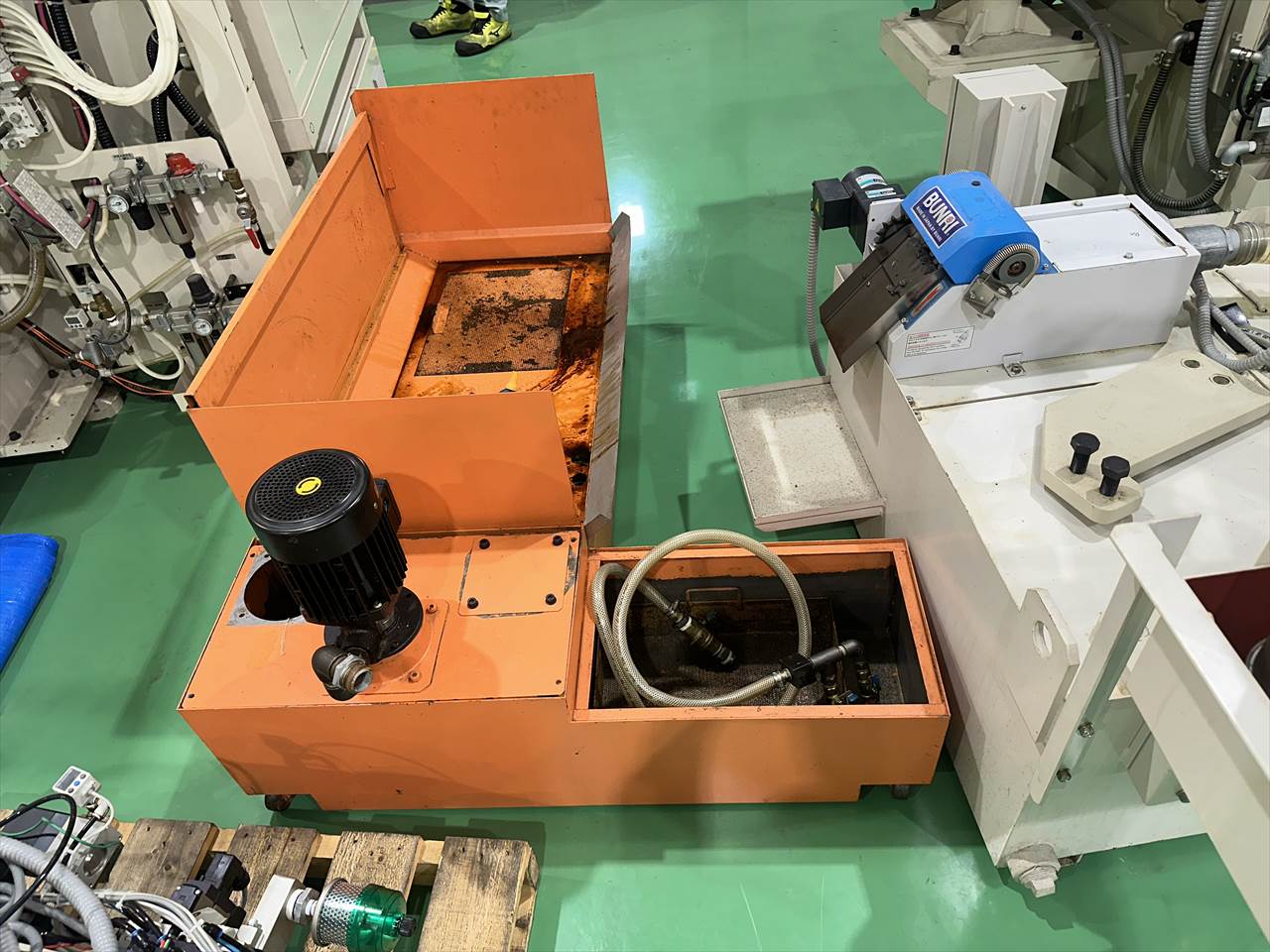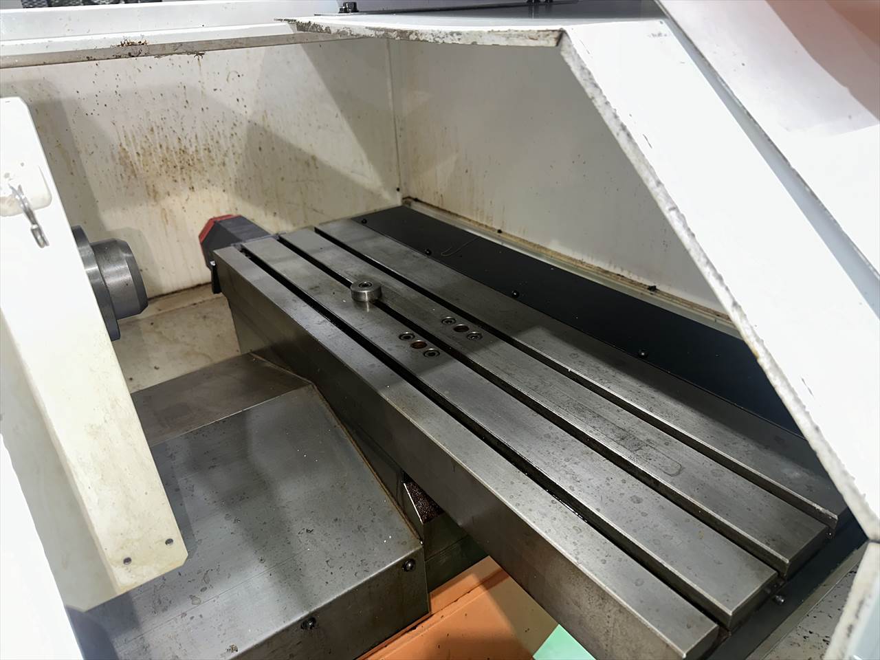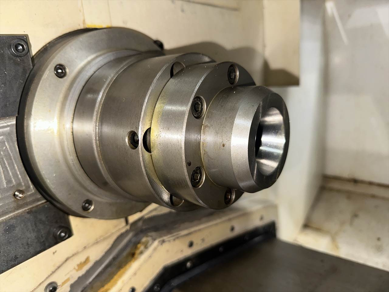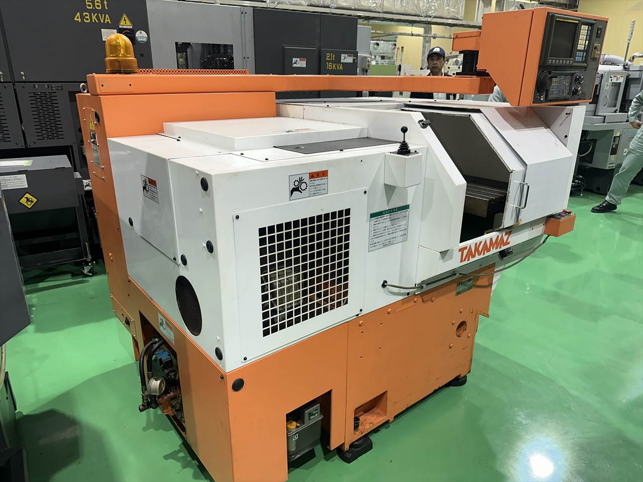 ○特徴  特大のクシ刃型NC旋盤 コレット多数とバイトホルダ付  稼働時間が少ないため程度良好 ○能力  最大振り:φ300 スライド上の振り:φ170  チャックサイズ:6インチ  (現在はコレットチャック) ○主軸  主軸端形状:フラットタイプ 主軸貫通穴径:φ36  主軸回転数:250~4500rpm ○刃物台(水平リニアタレット)  最大工具サイス゛:□20 φ25  最大移動量:X軸300 Z軸300mm  早送り速度:X軸12 Z軸18m/min ○モータ  主軸:AC3.7kw  送り:X軸AC0.6 Z軸AC0.6kw  油圧:AC0.75kw ○総電源容量  10KVA ○機械の大きさ  主軸芯高さ:1000mm  幅2065×奥行1590×高さ1615mm 重量:2000㎏