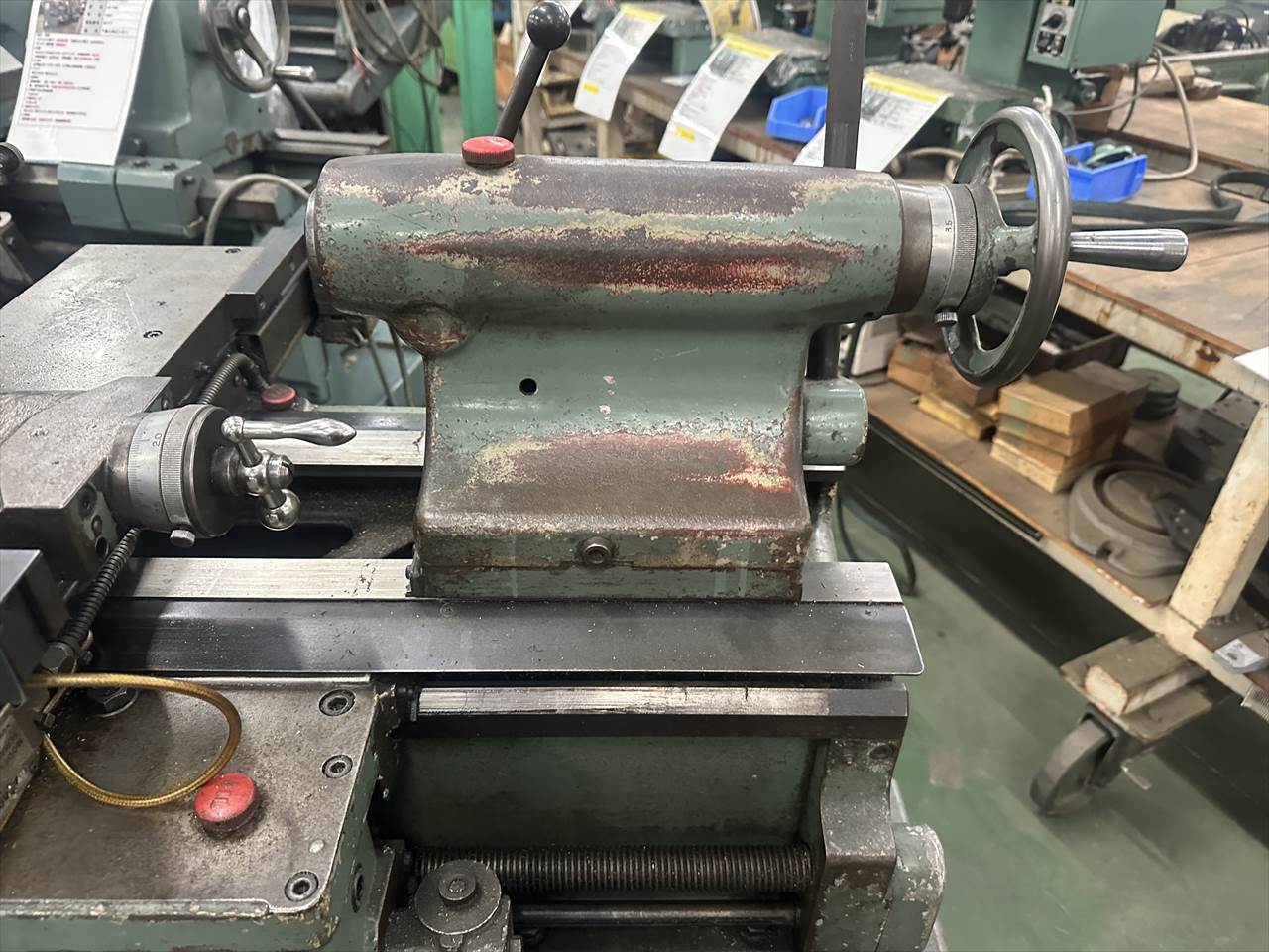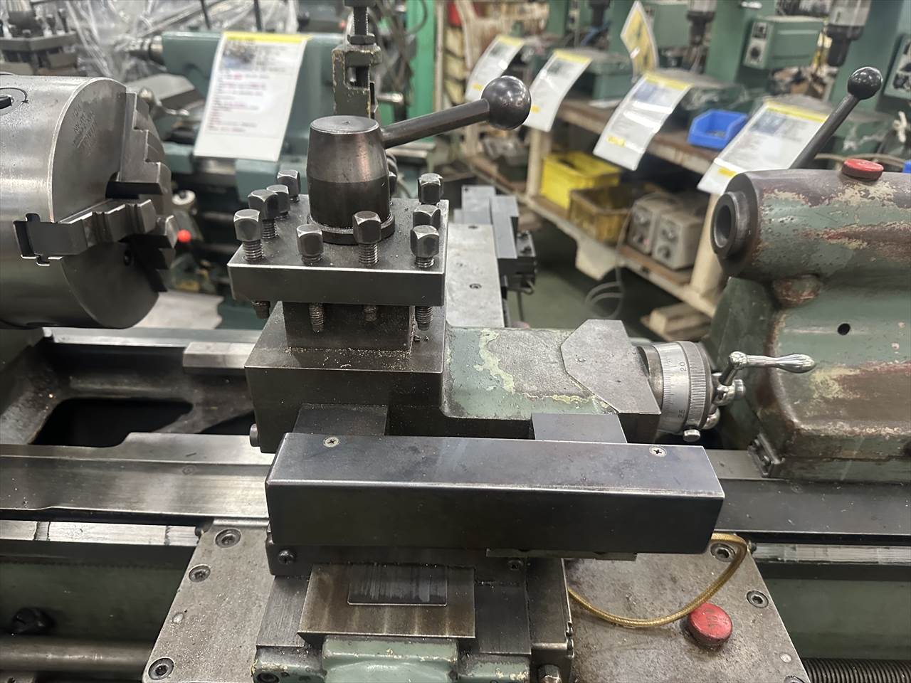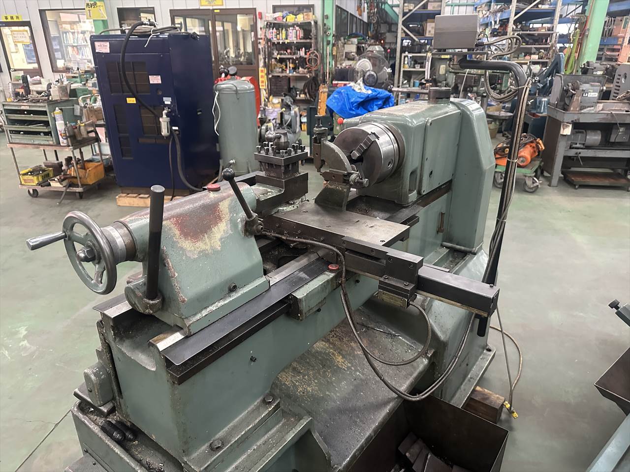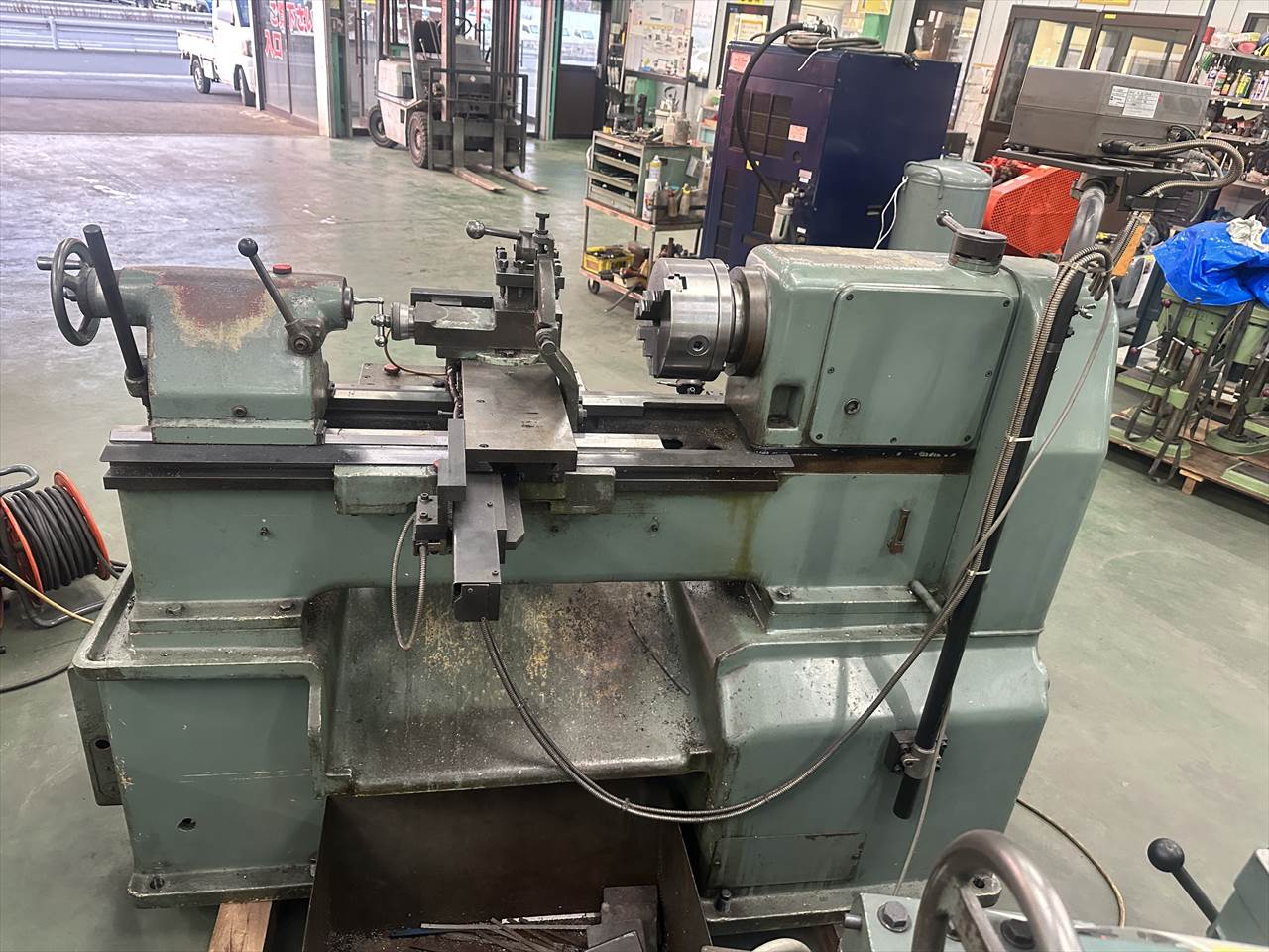 ○特徴  高速精密旋盤(56~2500rpm)  2軸デジタル(往復台左右と手送り刃物台) 移動振れ止め ○能力・容量  ベッド上の振り:φ360mm 往復台上の振り:φ180mm  センター間距離:500mm ○主軸  チャック直径:φ190mm 回転速度:56~2500rpm(12段変速)  主軸貫通穴:φ32mm 主軸端形状 A1-5 ○心押台  テーパ MT№4  心押軸の移動量:120mm ○ベッド  長さ1350×幅280mm ○往復台  往復台の移動量:480mm 横送り台の移動量:245mm  刃物送り台の移動量:100mm  送り変換数:40種 横送りハンドル目盛:0.025mm/1目  刃物台送りハンドル目盛り:0.02mm/1目 ○ねじ切  メートルねじ:0.25~7mm インチねじ:112~4山/インチ  親ねじ直径:φ28×P=4 ○モータ  3.7kw4P ○機械の大きさ  幅1700×奥行1080×高さ1190 重量1200㎏