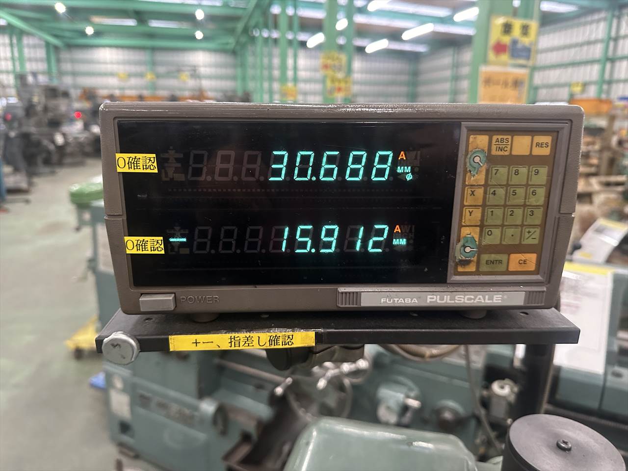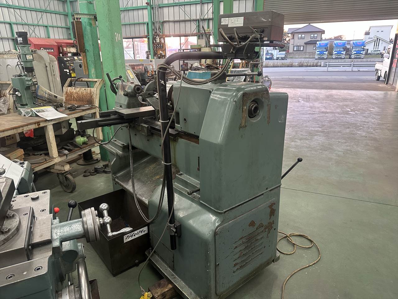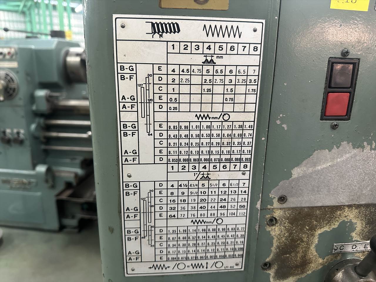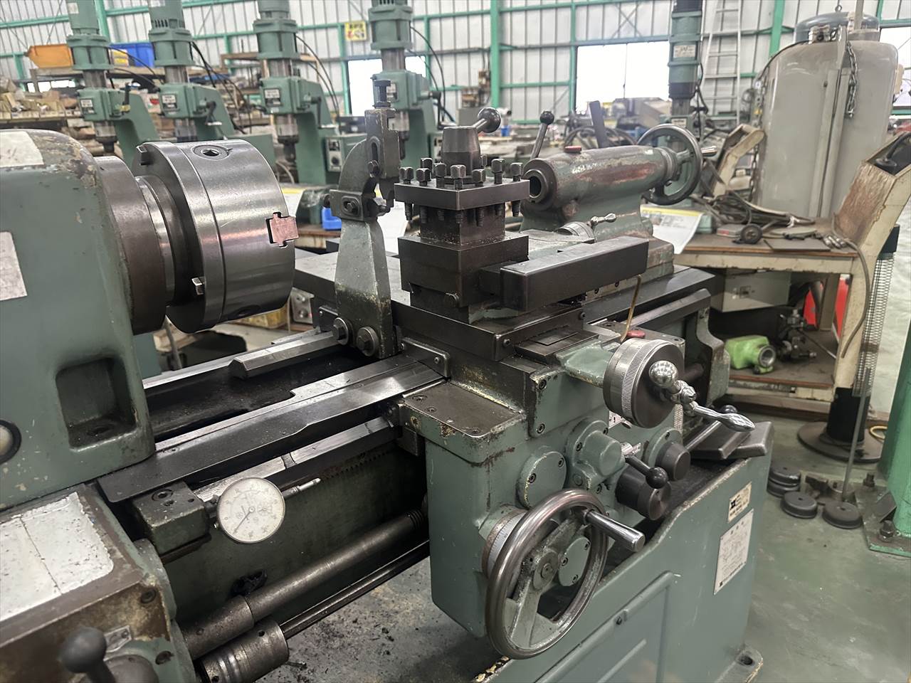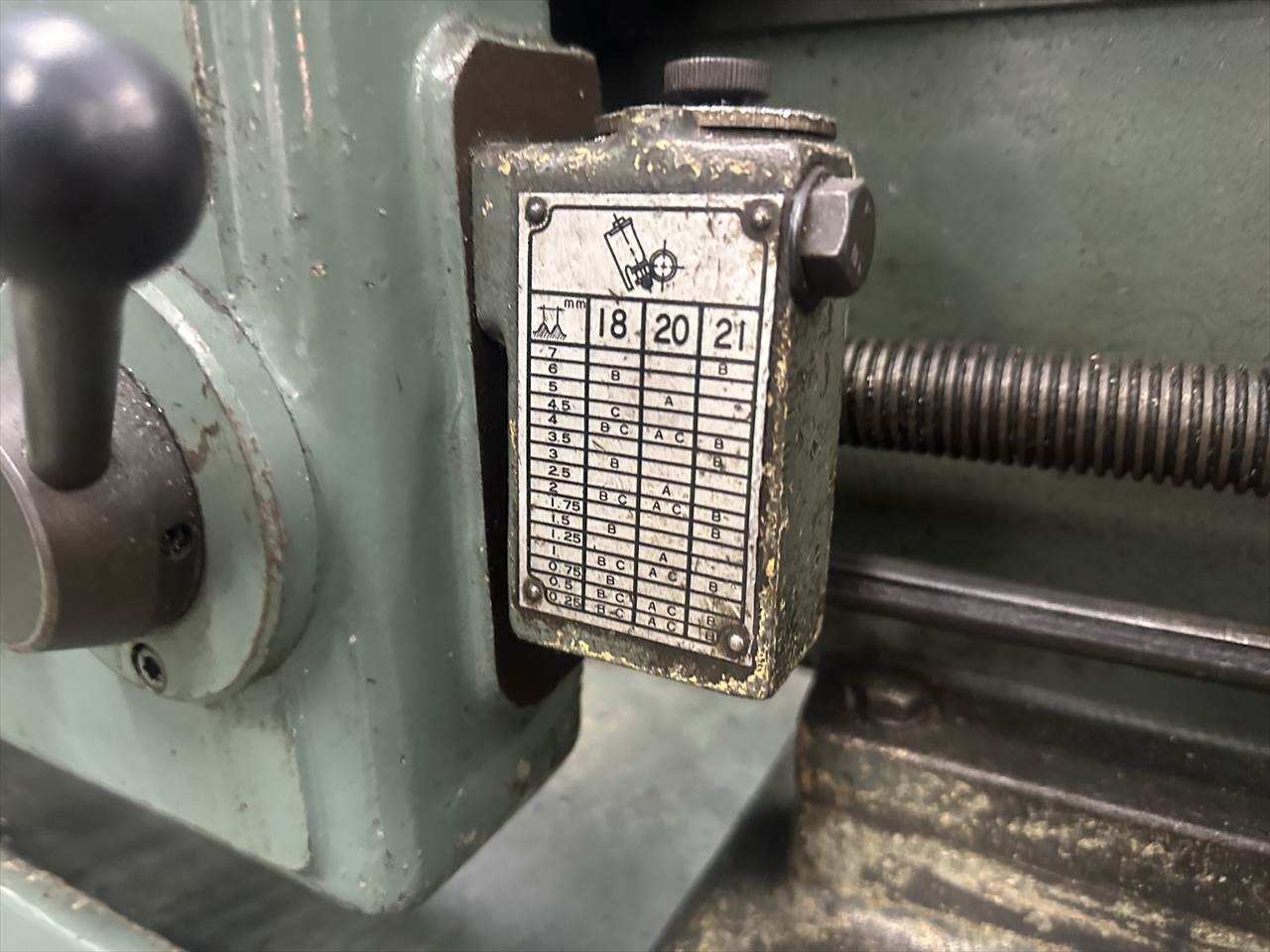 ○特徴  高速精密旋盤(56~2500rpm)  2軸デジタル(往復台左右と手送り刃物台) 移動振れ止め ○能力・容量  ベッド上の振り:φ360mm 往復台上の振り:φ180mm  センター間距離:500mm ○主軸  チャック直径:φ190mm 回転速度:56~2500rpm(12段変速)  主軸貫通穴:φ32mm 主軸端形状 A1-5 ○心押台  テーパ MT№4  心押軸の移動量:120mm ○ベッド  長さ1350×幅280mm ○往復台  往復台の移動量:480mm 横送り台の移動量:245mm  刃物送り台の移動量:100mm  送り変換数:40種 横送りハンドル目盛:0.025mm/1目  刃物台送りハンドル目盛り:0.02mm/1目 ○ねじ切  メートルねじ:0.25~7mm インチねじ:112~4山/インチ  親ねじ直径:φ28×P=4 ○モータ  3.7kw4P ○機械の大きさ  幅1700×奥行1080×高さ1190 重量1200㎏