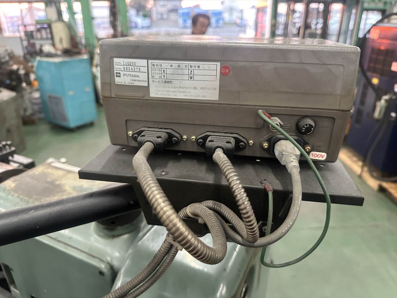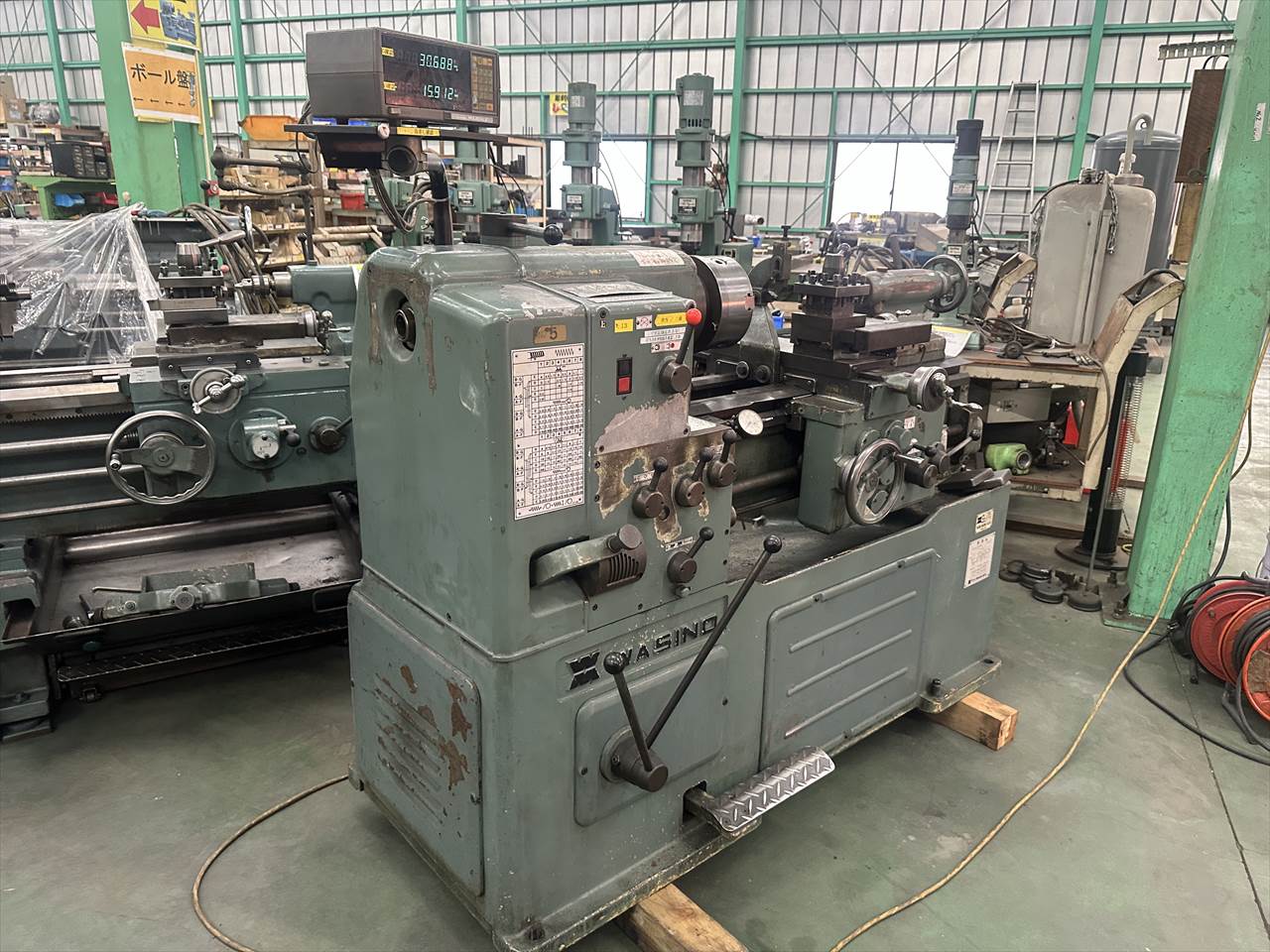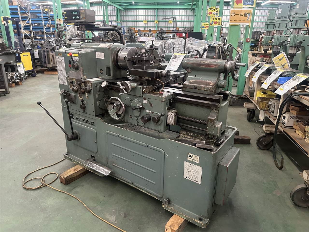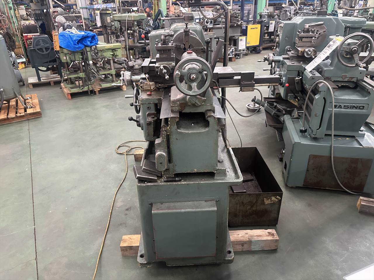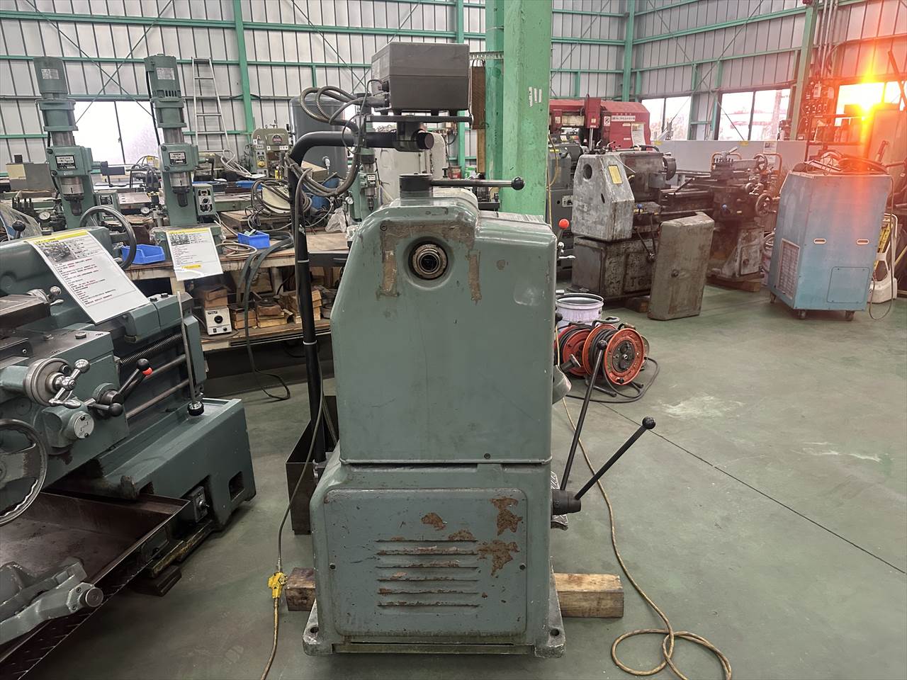 ○特徴  高速精密旋盤(56~2500rpm)  2軸デジタル(往復台左右と手送り刃物台) 移動振れ止め ○能力・容量  ベッド上の振り:φ360mm 往復台上の振り:φ180mm  センター間距離:500mm ○主軸  チャック直径:φ190mm 回転速度:56~2500rpm(12段変速)  主軸貫通穴:φ32mm 主軸端形状 A1-5 ○心押台  テーパ MT№4  心押軸の移動量:120mm ○ベッド  長さ1350×幅280mm ○往復台  往復台の移動量:480mm 横送り台の移動量:245mm  刃物送り台の移動量:100mm  送り変換数:40種 横送りハンドル目盛:0.025mm/1目  刃物台送りハンドル目盛り:0.02mm/1目 ○ねじ切  メートルねじ:0.25~7mm インチねじ:112~4山/インチ  親ねじ直径:φ28×P=4 ○モータ  3.7kw4P ○機械の大きさ  幅1700×奥行1080×高さ1190 重量1200㎏