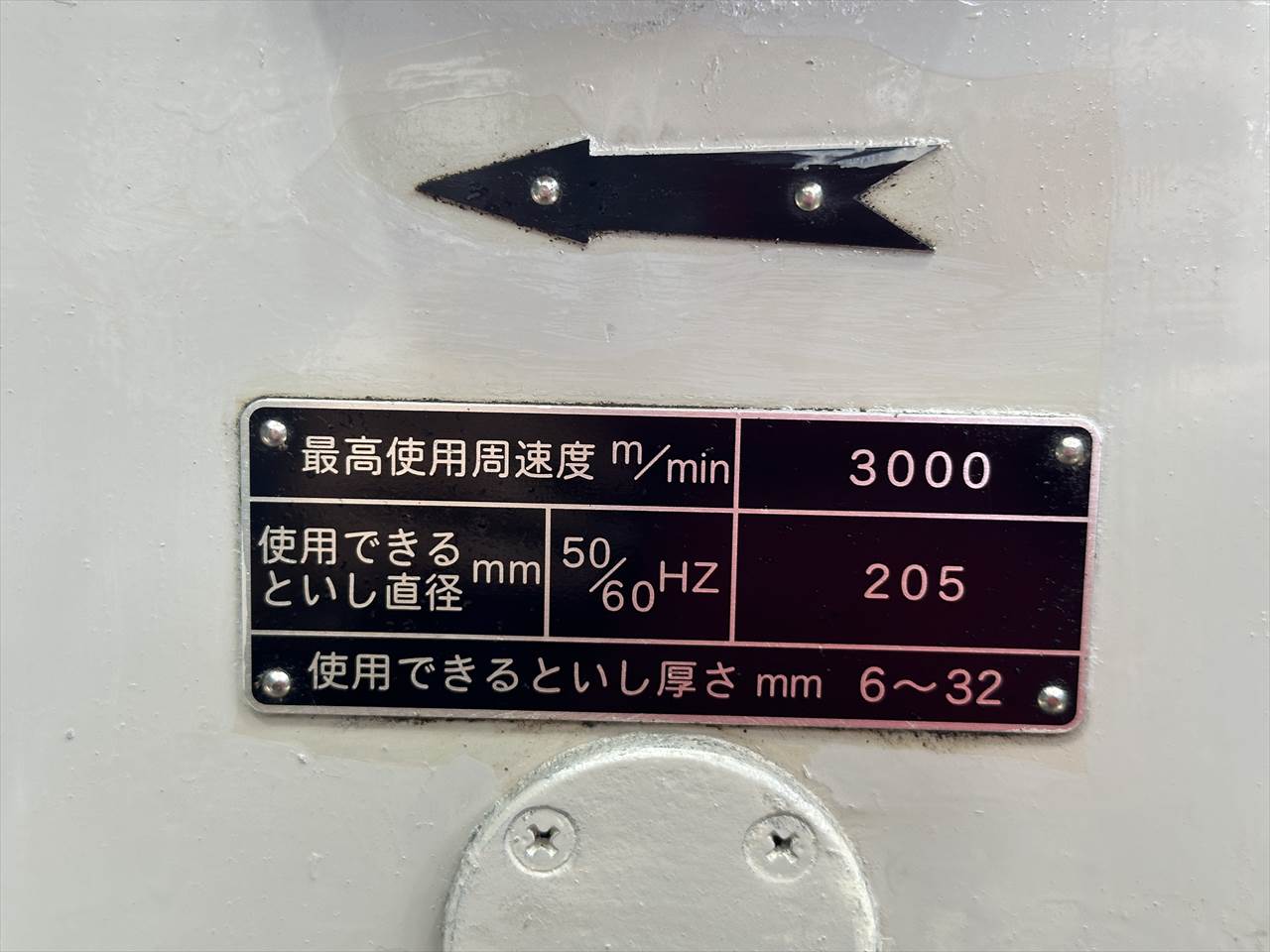 砥石軸回転数(無負荷):3000rpm(50Hz)/3600rpm(60Hz)