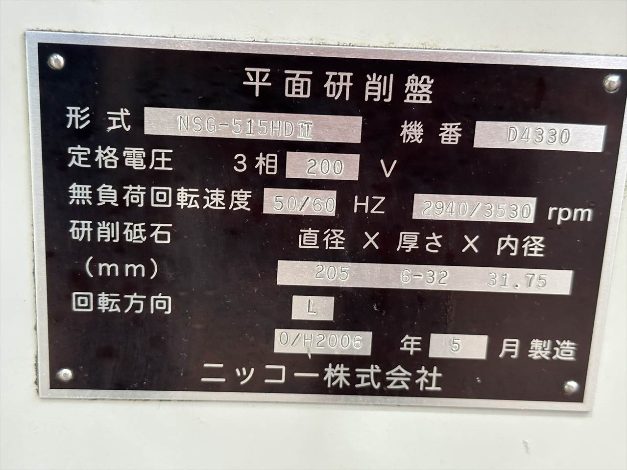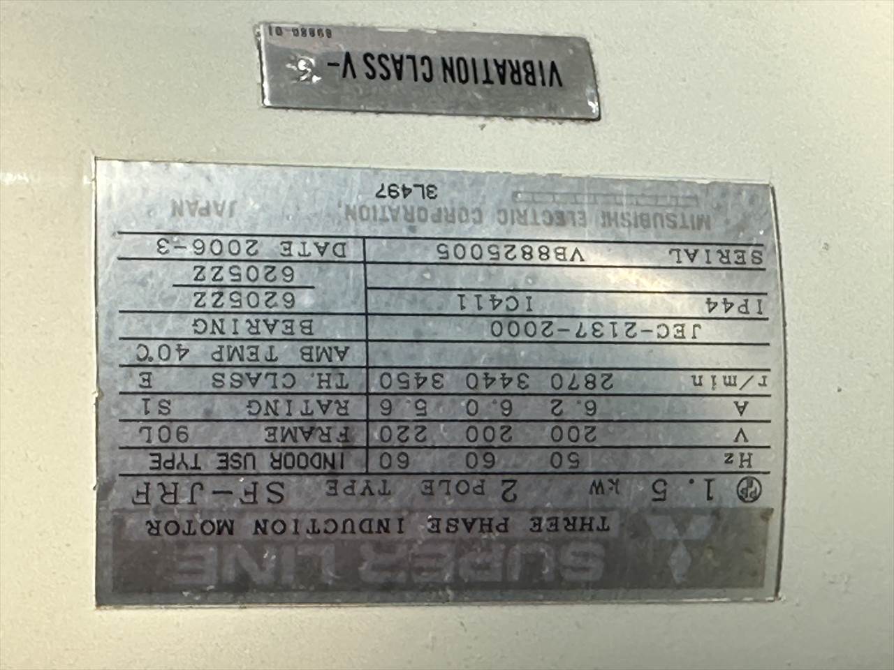 砥石軸:1.5kw2P 上下早送り:0.1kw4P 油圧ポンプ:0.75kw4P