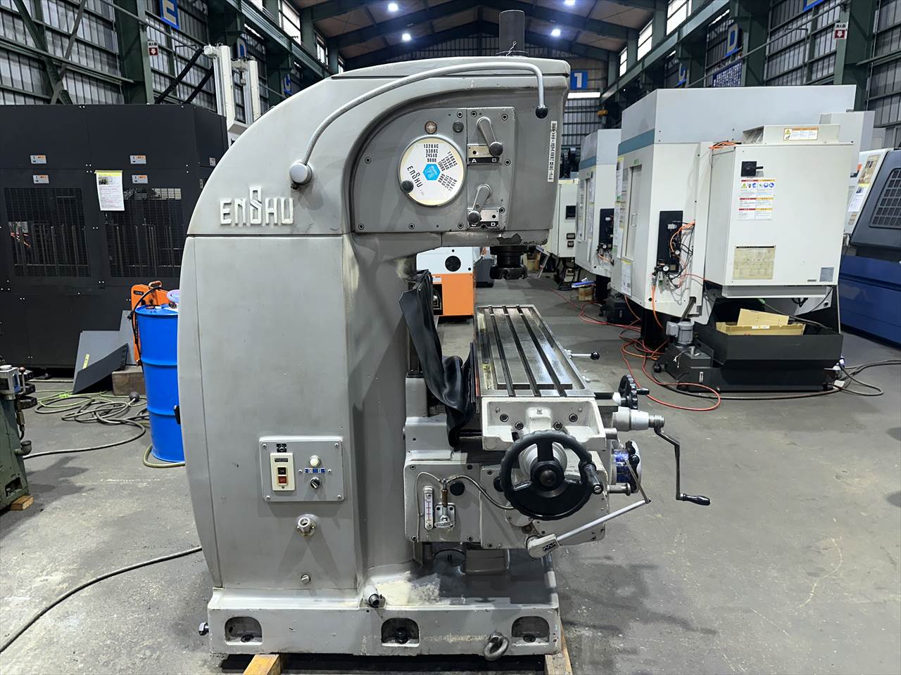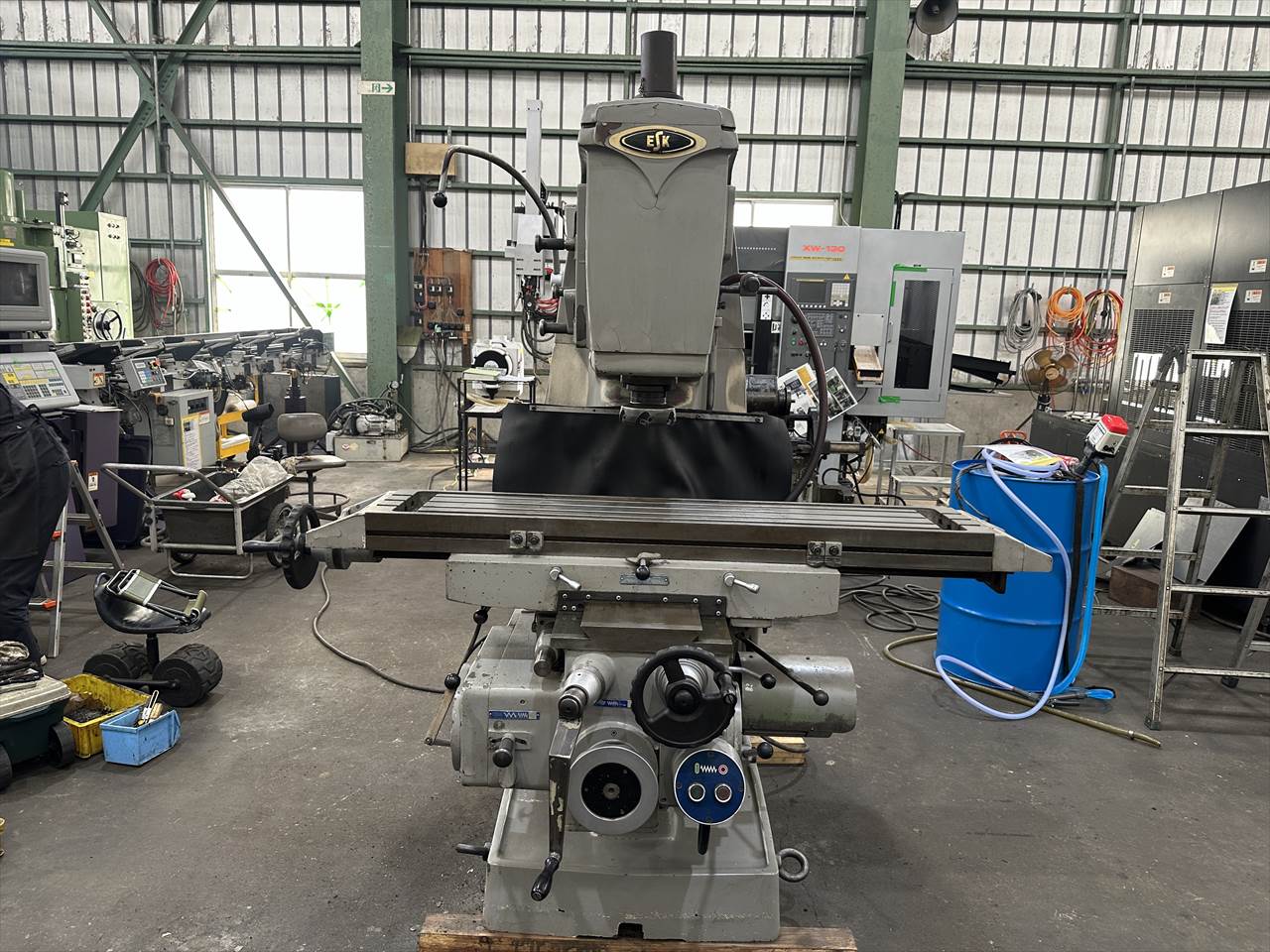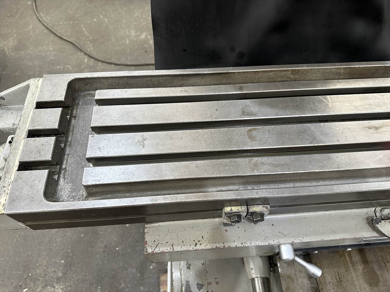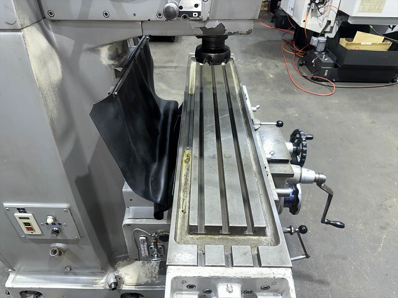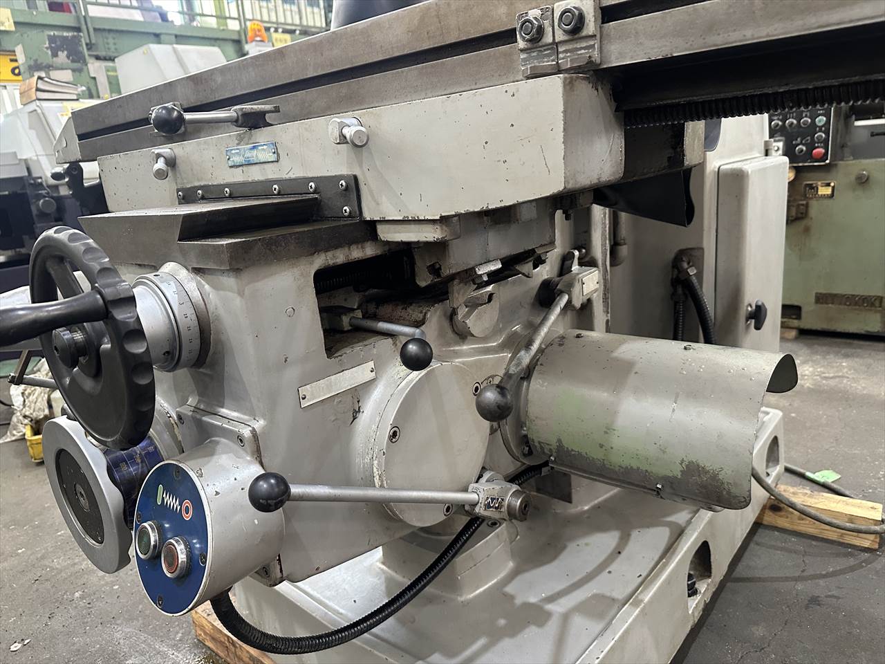 ○テーブル  1350×270mm ○XYZ軸ストローク  750×270×400mm ○主軸  テーパ穴:NT50 主軸回転:68~1760rpm(8段) モータ:3.7kw ○主軸端面からテーブル上面まで  450mm ○主軸中心からコラム表面まで  300mm ○送り速度  切削送り:左右20~1000mm/min 前後9~455mm/min        上下3.6- 180mm/min  早送り:左右3000mm/min 前後1400mm/min 上下560mm/min ○機械の大きさ  幅2515×奥行2240×高さ1930mm 機械重量2450kg