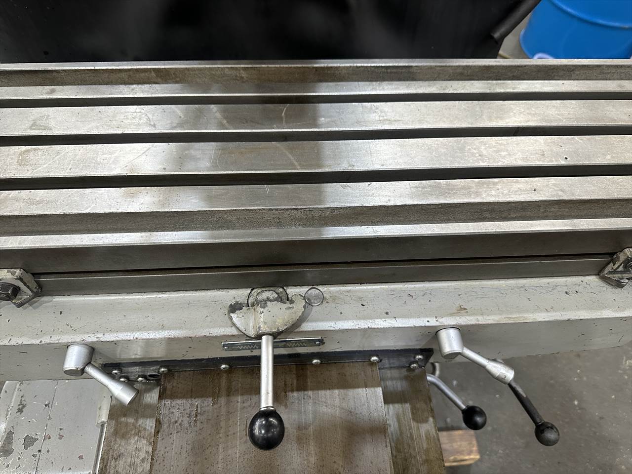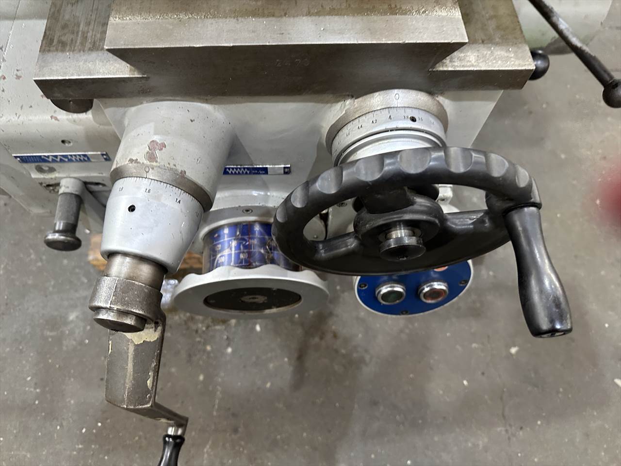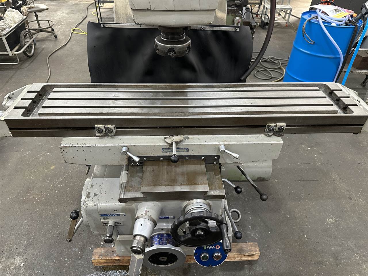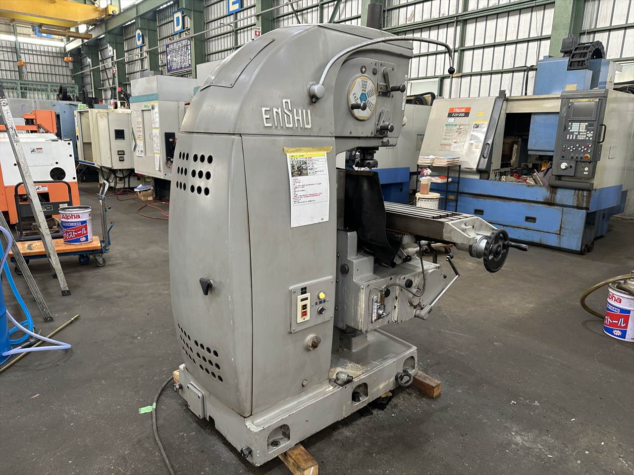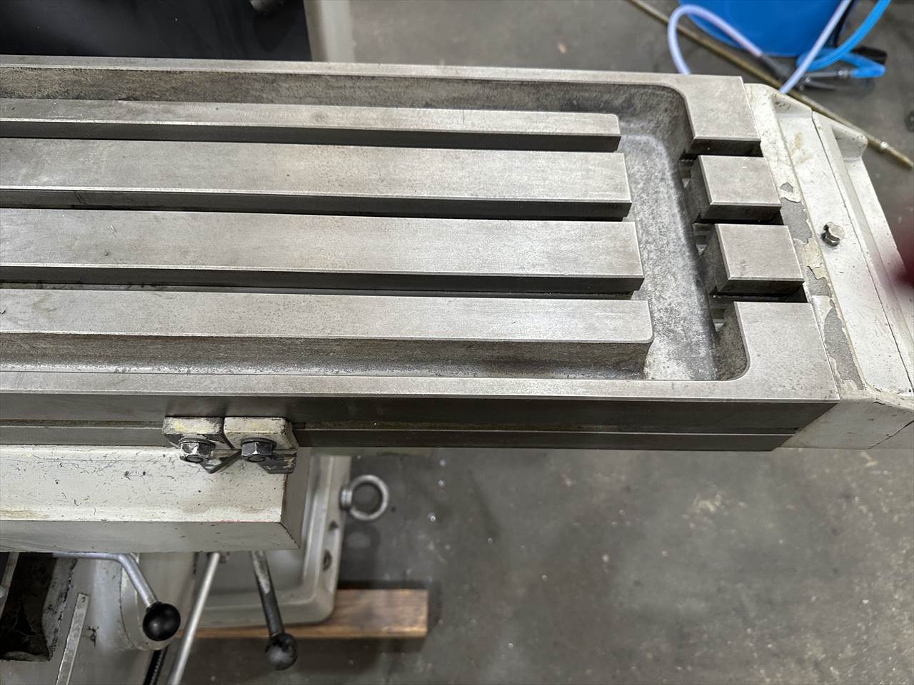 ○テーブル  1350×270mm ○XYZ軸ストローク  750×270×400mm ○主軸  テーパ穴:NT50 主軸回転:68~1760rpm(8段) モータ:3.7kw ○主軸端面からテーブル上面まで  450mm ○主軸中心からコラム表面まで  300mm ○送り速度  切削送り:左右20~1000mm/min 前後9~455mm/min        上下3.6- 180mm/min  早送り:左右3000mm/min 前後1400mm/min 上下560mm/min ○機械の大きさ  幅2515×奥行2240×高さ1930mm 機械重量2450kg
