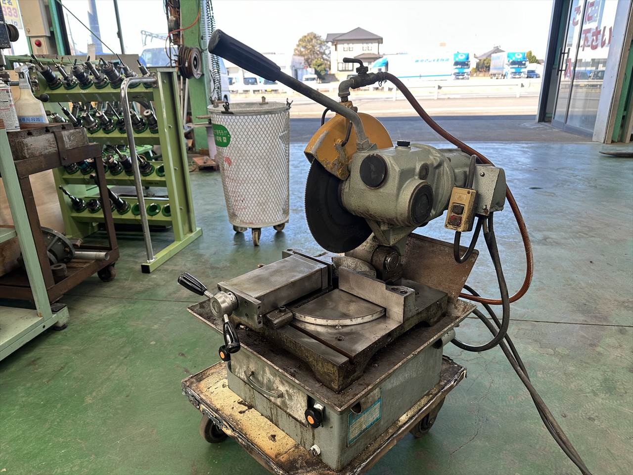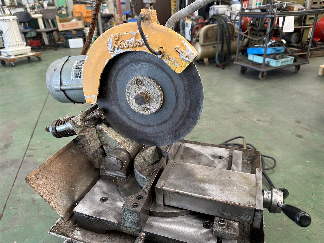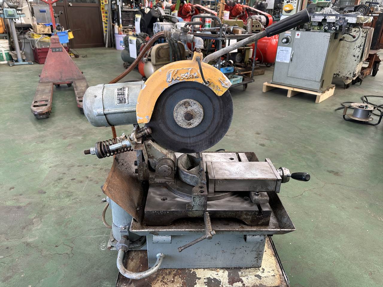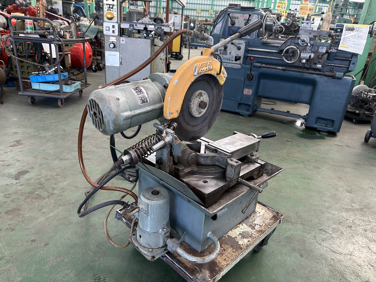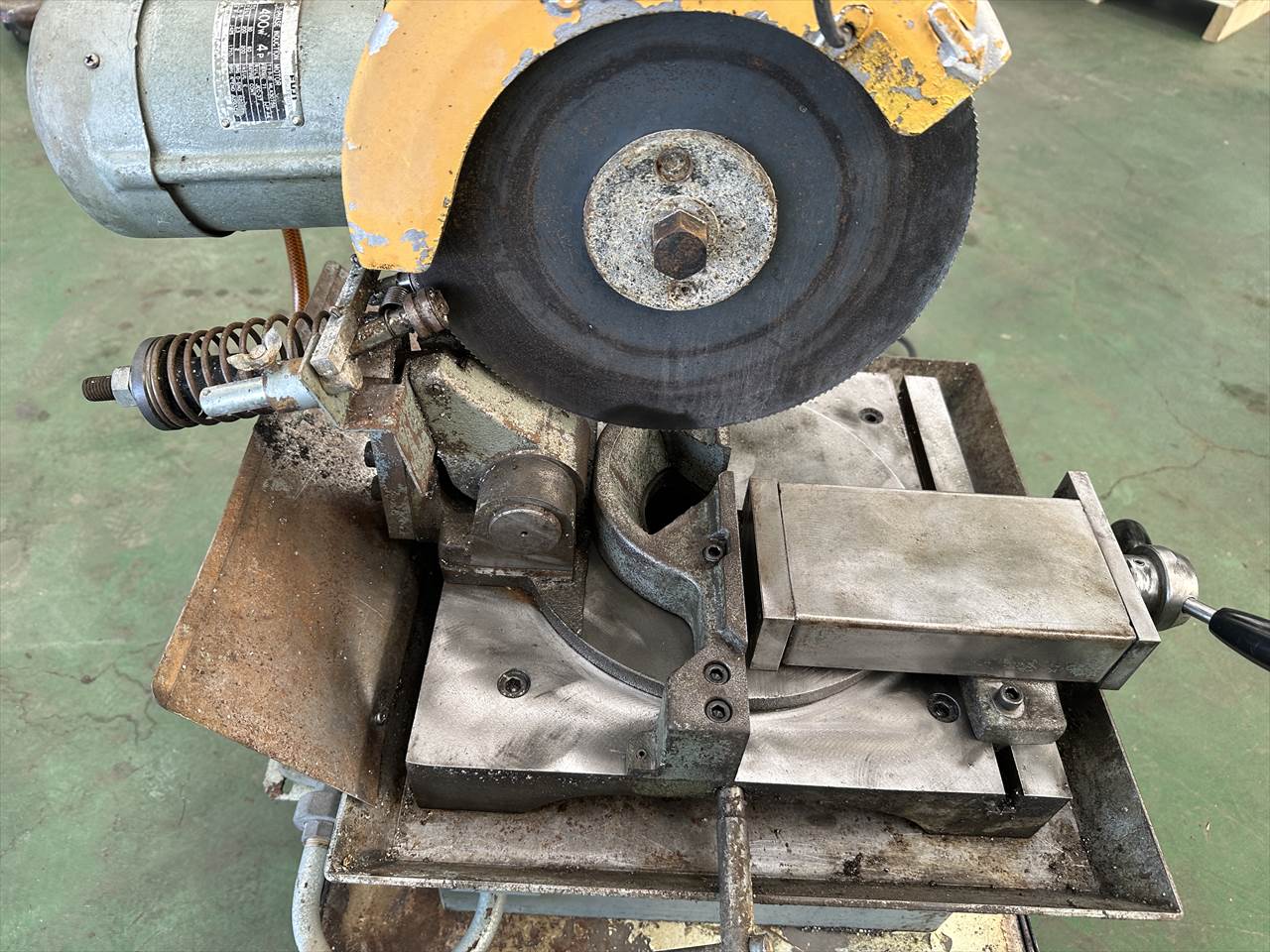 ○特徴  バリ、焼けの無い精密切断機です。  後加工が不要です。  左右-0~45°の角度切断ができます。 ○切断能力  直角切:50×50mm炭素鋼 45°切り:40×40mm炭素鋼  パイプ:φ89mm アングル:80×80mm ○モータ  200V3相 50/60Hz 0.4kw 2.3/2.0A ○鋸刃  寸法:φ275mm 回転速度:36/44rpm ○機械の大きさ  幅485×奥行670×高さ720mm 質量:95㎏